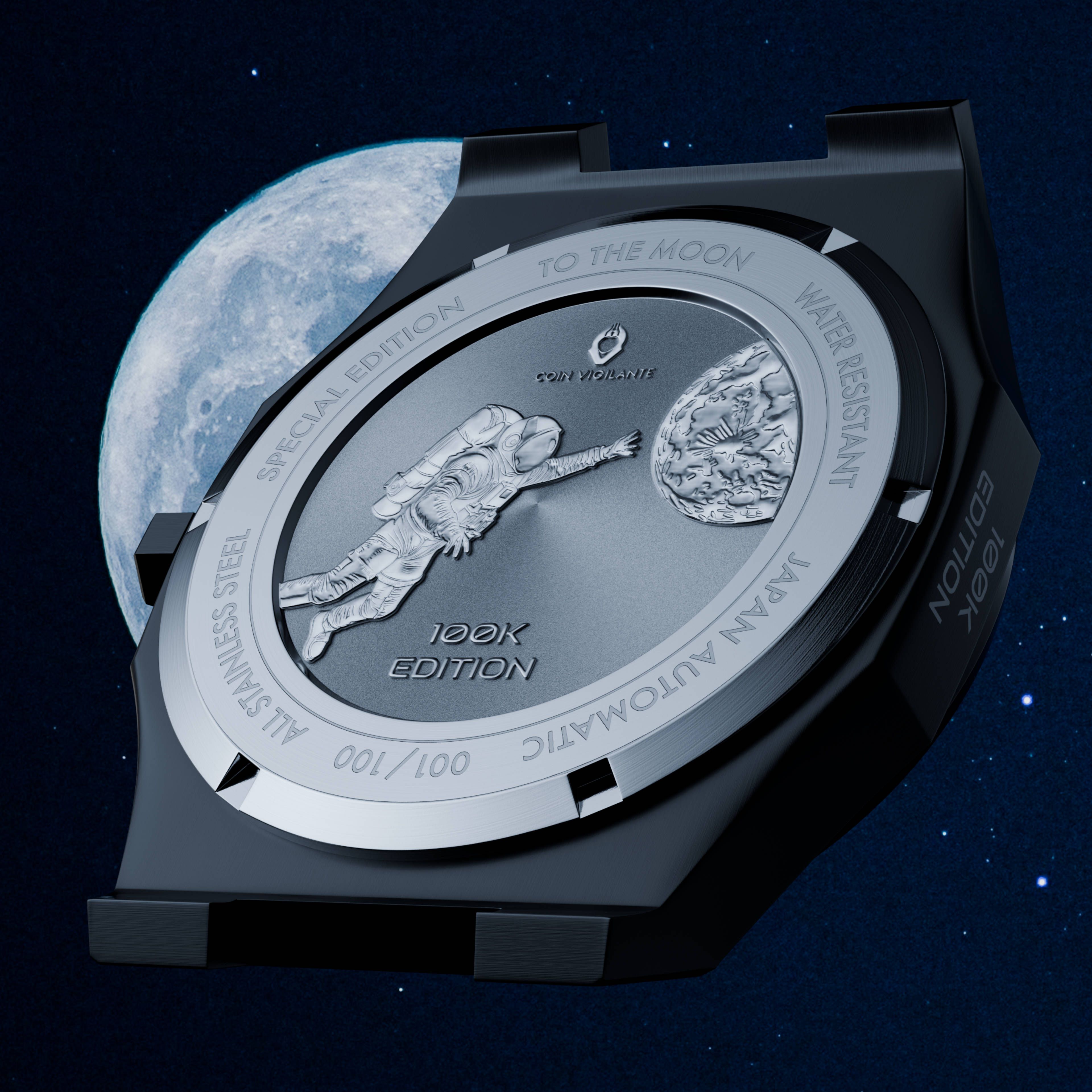 The TO THE MOON - 100K Edition Watch is a masterclass in design and symbolism, featuring: