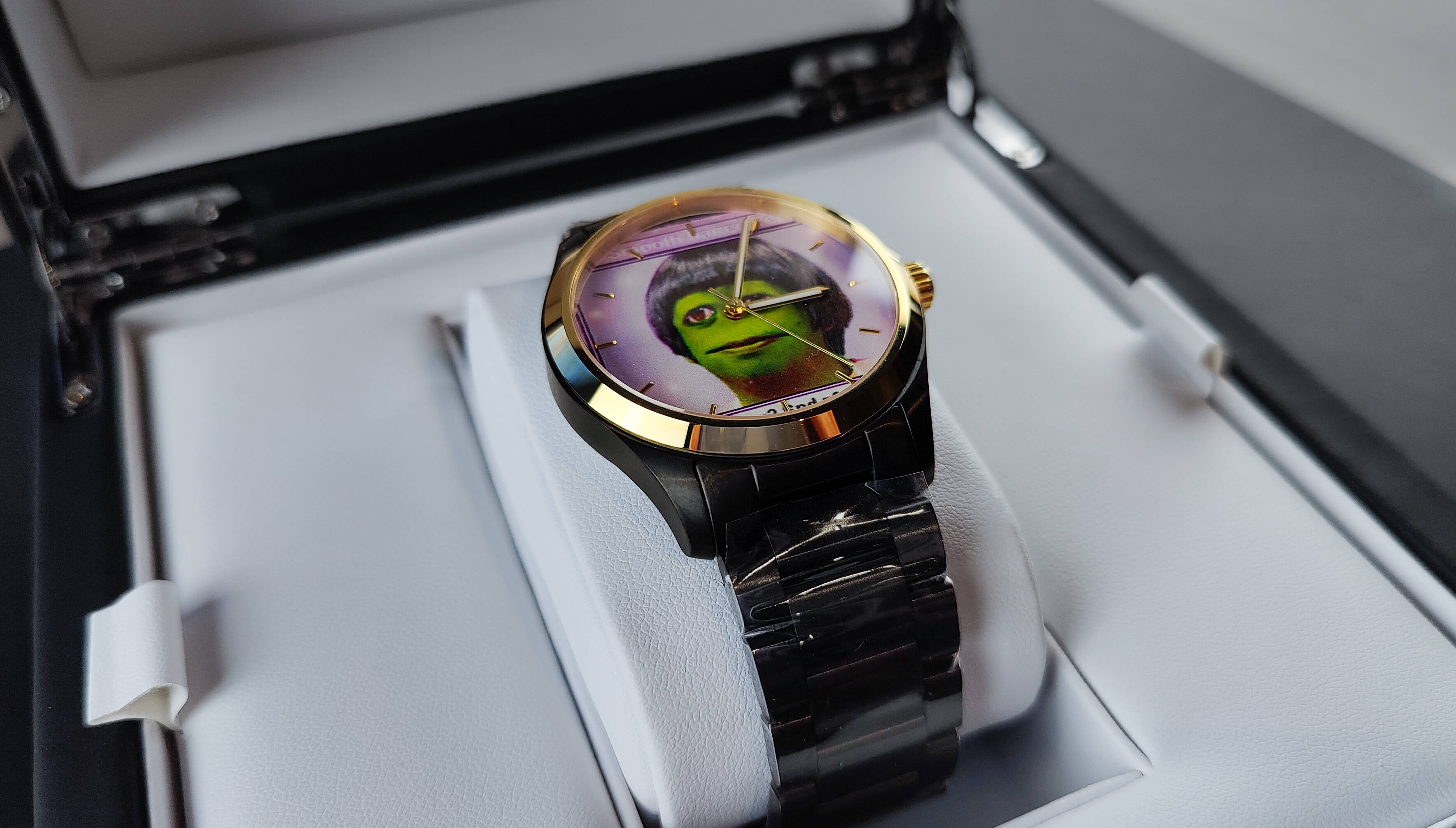Designed by Aya + Mr Crypto Watches, and precision crafted by Mr Crypto Watches in the Netherlands. This watch includes a HAIRPEPE loaded on an OPENDIME, and a signed message from Aya.
