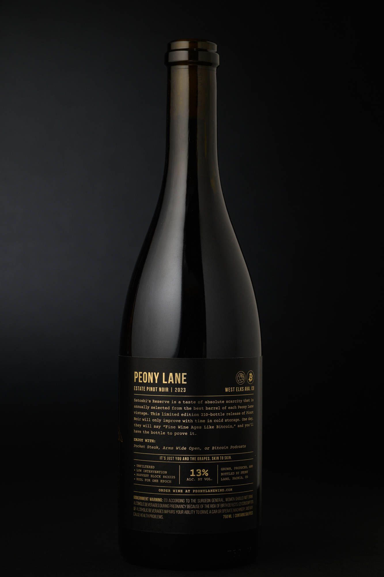 The 2023 Satoshi’s Reserve is Estate Pinot Noir, grown by Ben Justman in Paonia, Colorado, within the highest elevation wine region in North America. High elevation lends itself to a light and bright Pinot Noir, with elegant fruit and acidity that holds it together. It drinks clean and refreshing either on its own or with lighter meals.
