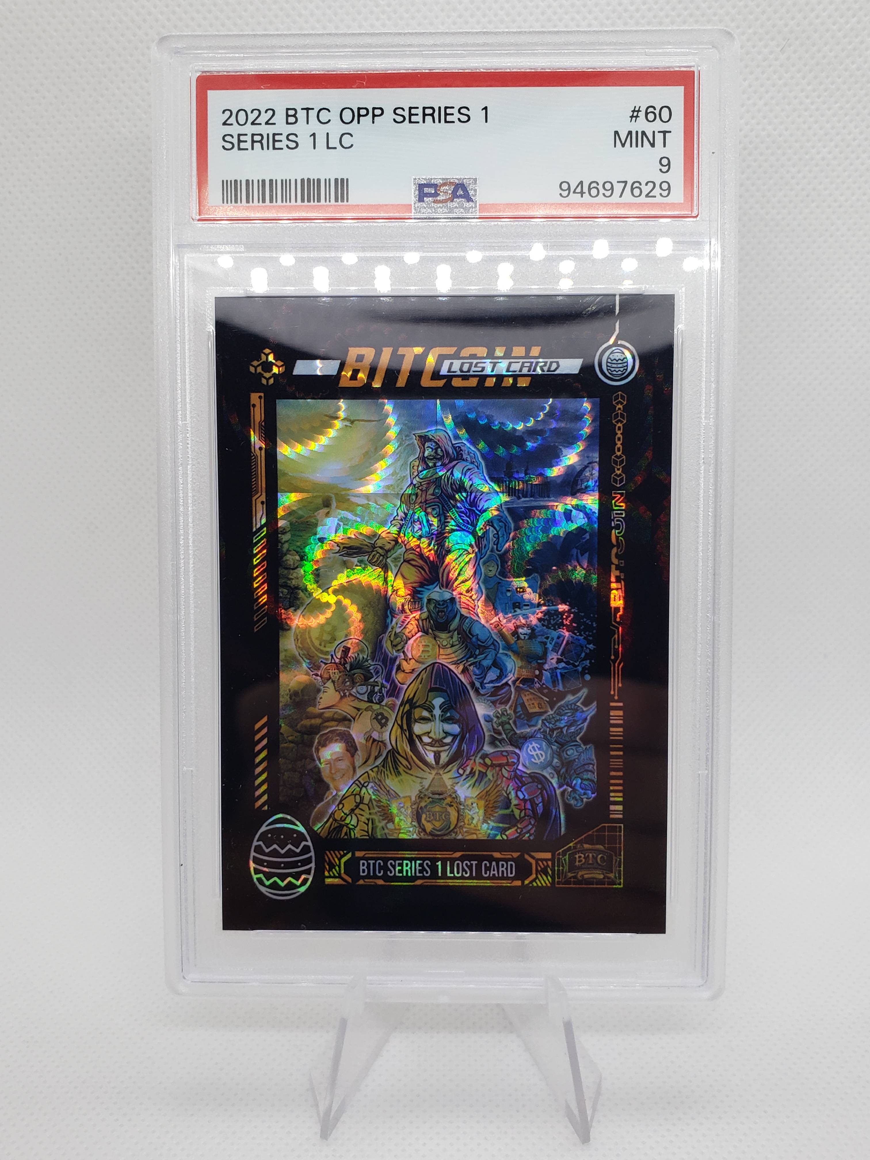 2022 Bitcoin Trading Cards Series 1, Card 60. Only 21 in existence, 3 of which have been submitted for grading at PSA. This is the only lost card which has been graded a 9. None have been graded higher.