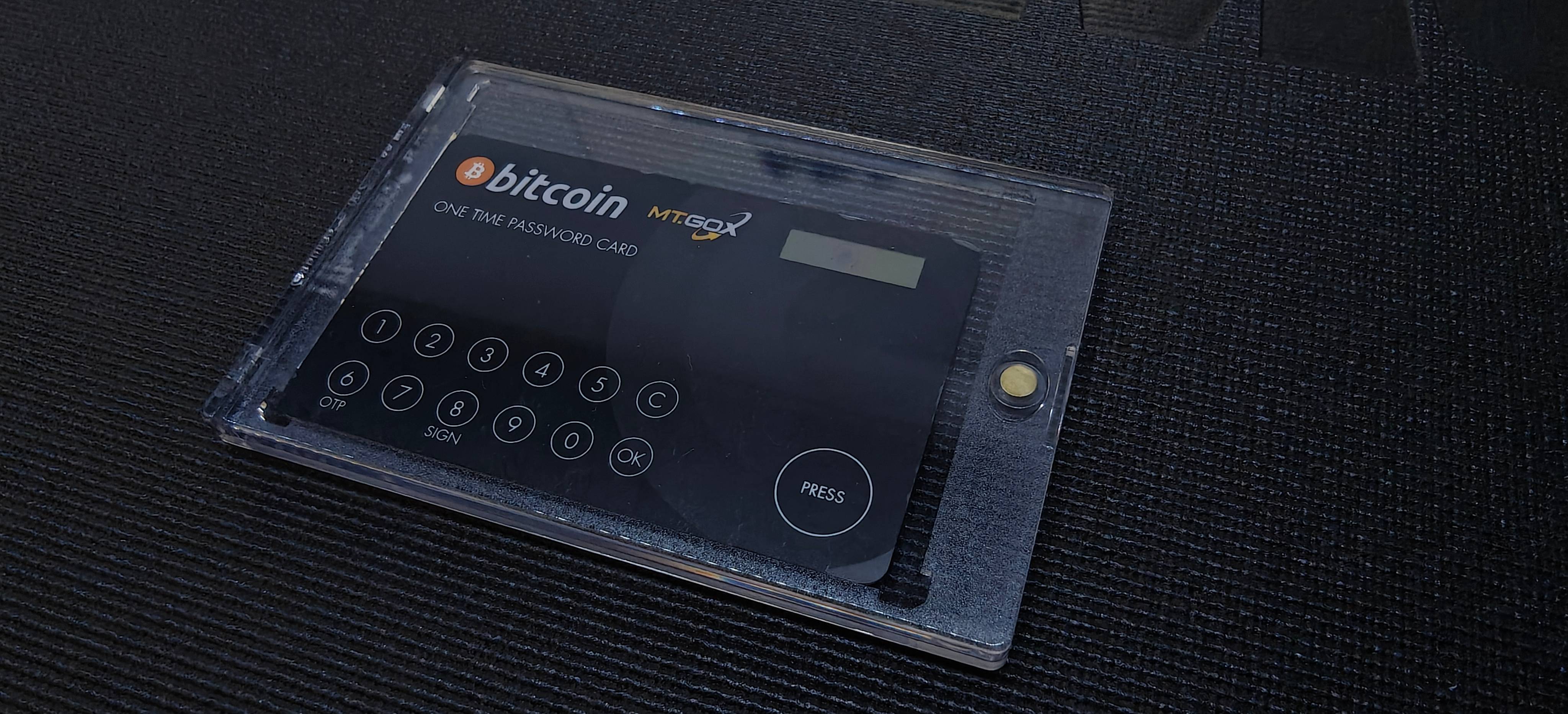 Launched around Fall of 2013, the Mt. Gox OTP card was a device to authenticate when logging in or initiating withdrawals on the Mt. Gox platform. A collector's item from the history books. The card is no longer functional, as the card battery has died, though I've seen it very briefly flash a few times when pressing the button when lucky.