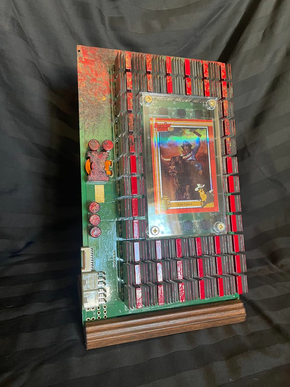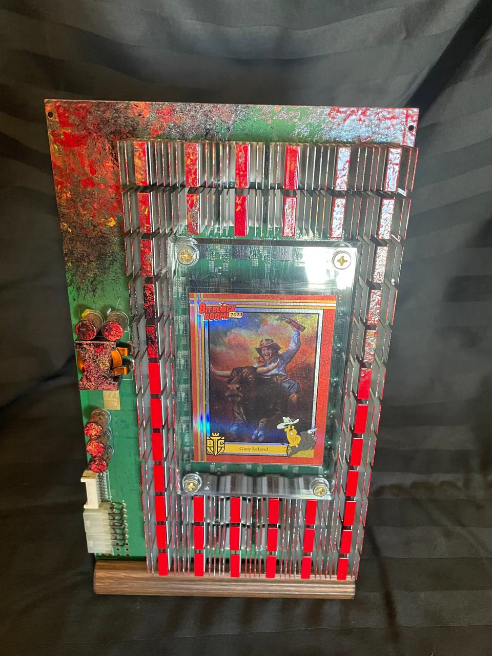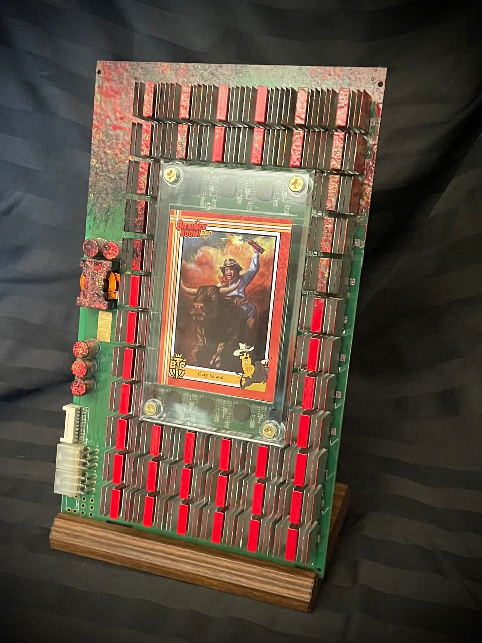 Centered in the frame you will receive a 2024 BitBlockBoom BTCTC, Gary Leland foil card. #208/500 Signed by Gary.