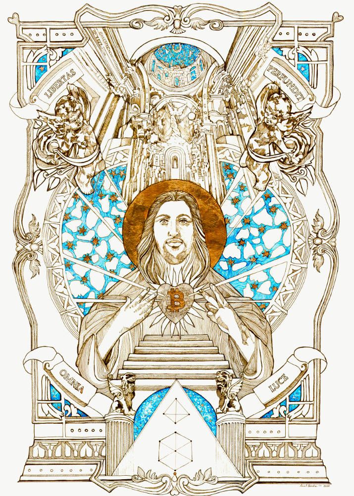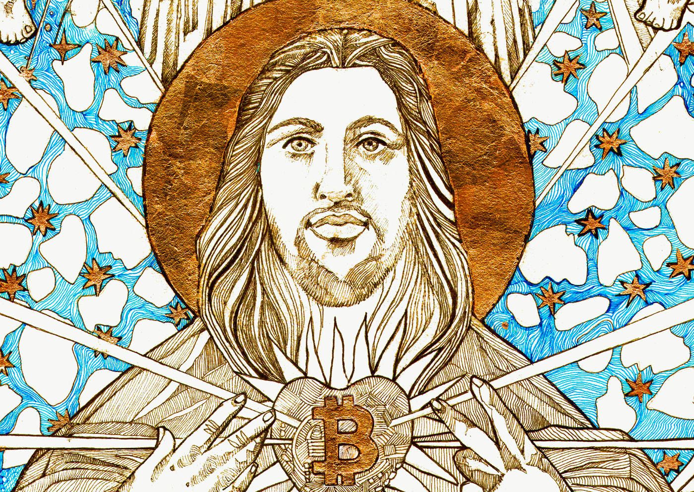 Bitcoin Jesus is OG Bitcoin Art from the series "Gods of Bitcoin" started by Ariel Birdie in 2020. The Original Bitcoin Jesus by Ariel Birdie currently resides in Nashville, TN in the Bitcoin Museum.