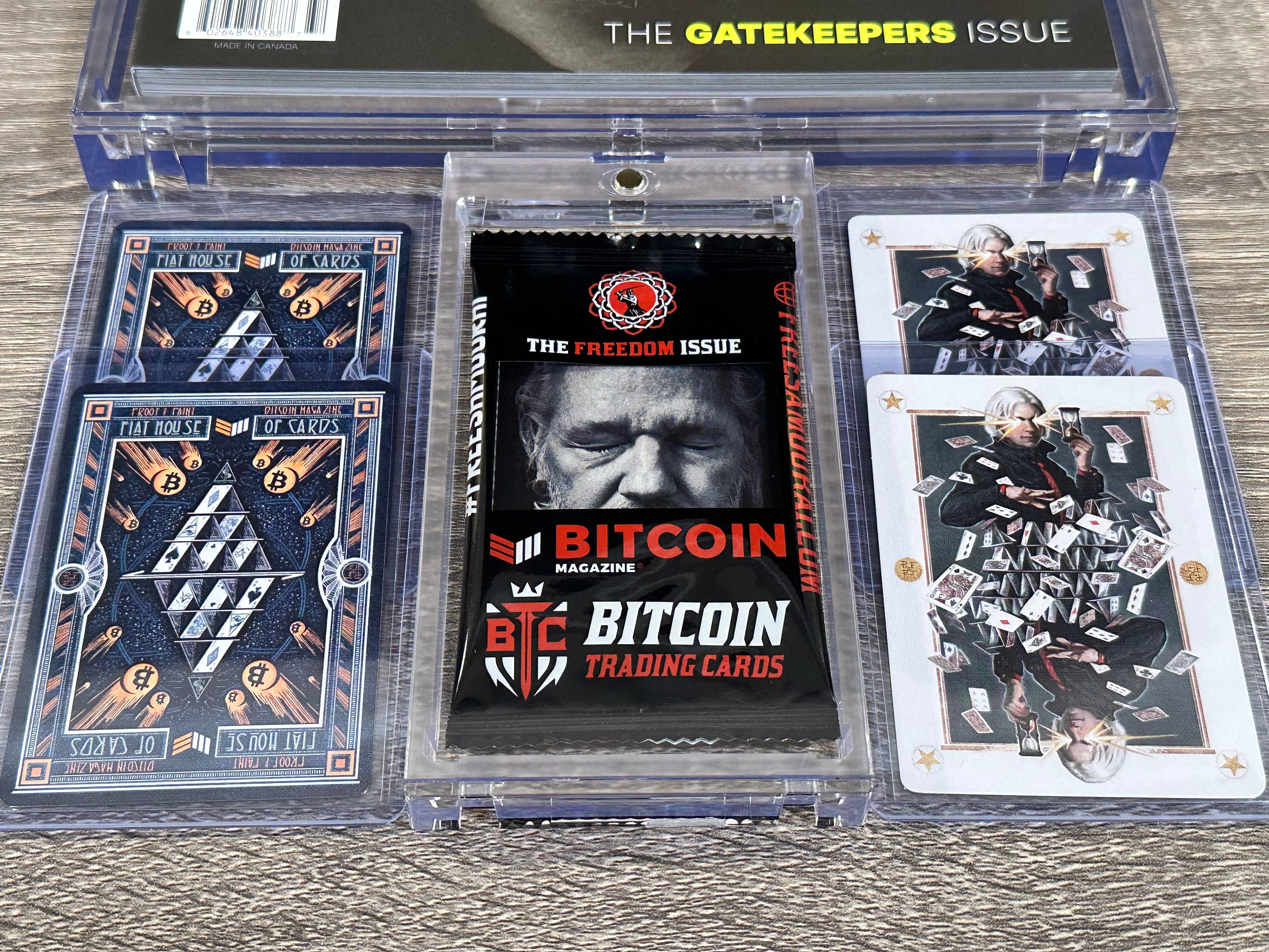 Bitcoin Magazine THE GATEKEEPERS ISSUE #29 and Bitcoin Trading Cards Sealed Pack Bitcoin Magazine: One Bitcoin Magazine The Gatekeepers Issue #29 in a Premium Magnetic Holder Four "Fiat House of Cards" Collectible Playing Cards (Magazine Inserts) The Bitcoin Magazine Issue #29 was Printed in August 2023 Bitcoin Trading Cards: One Bitcoin Trading Cards & Bitcoin Magazine Collaboration Issue #29 Sealed Pack Card The Bitcoin Trading Cards Sealed Pack Cards are Limited Edition (Rarity /963) Shipping Notes: Items Will be Shipped with Protective Packaging to Arrive in Excellent Condition