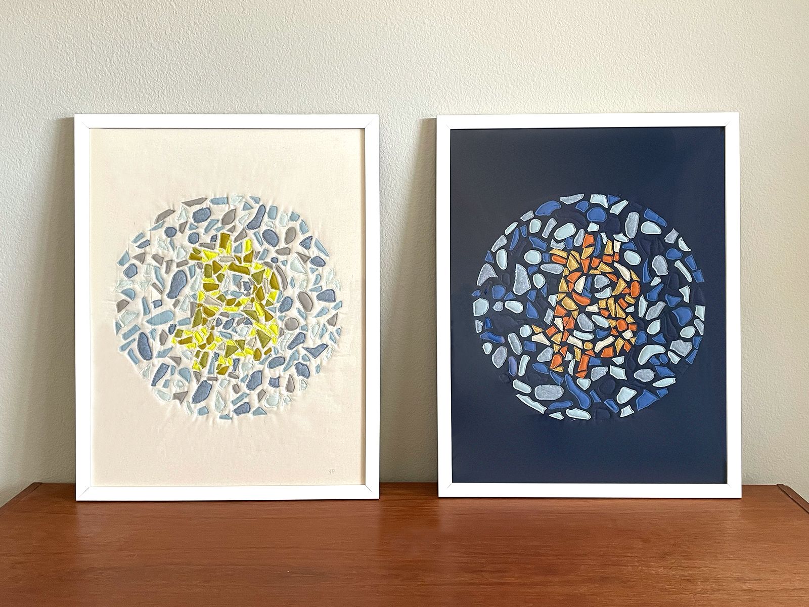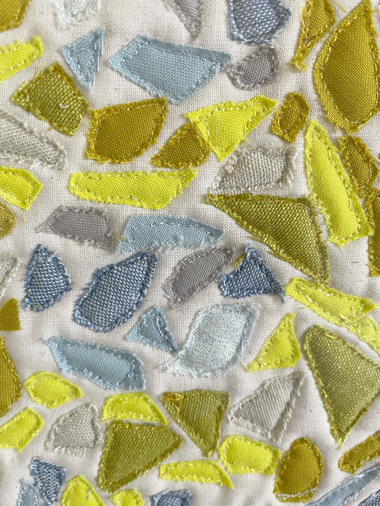A set of light and dark bitcoin mosaics is motion quilted on fabric. They are inspired by the color blind test. Those who can see, can see them clearly. Once you see it, it’s hard to unsee it.