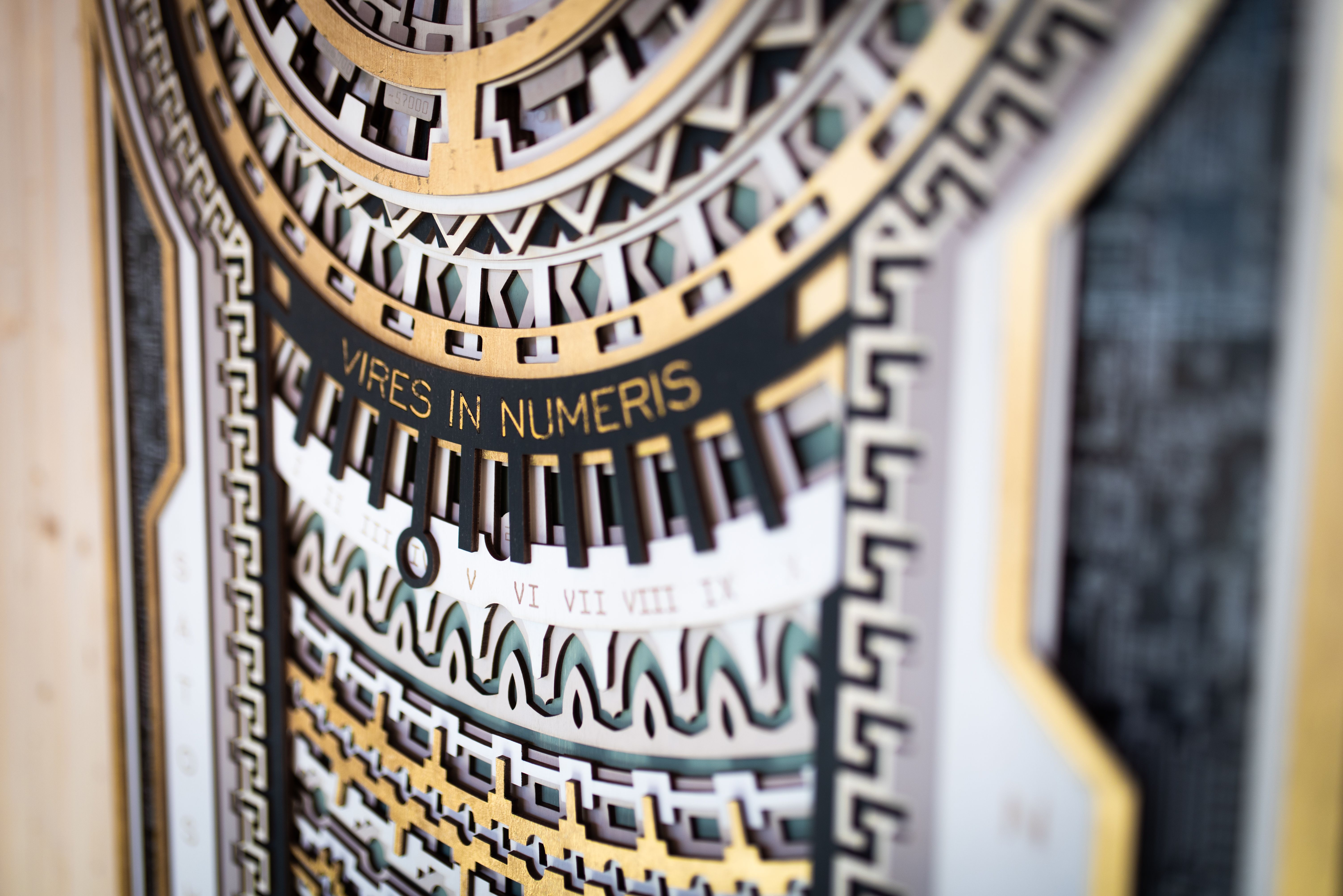 The Bitcoin symbol and the text “Vires in Numeris” are gilded with 23 carat gold.