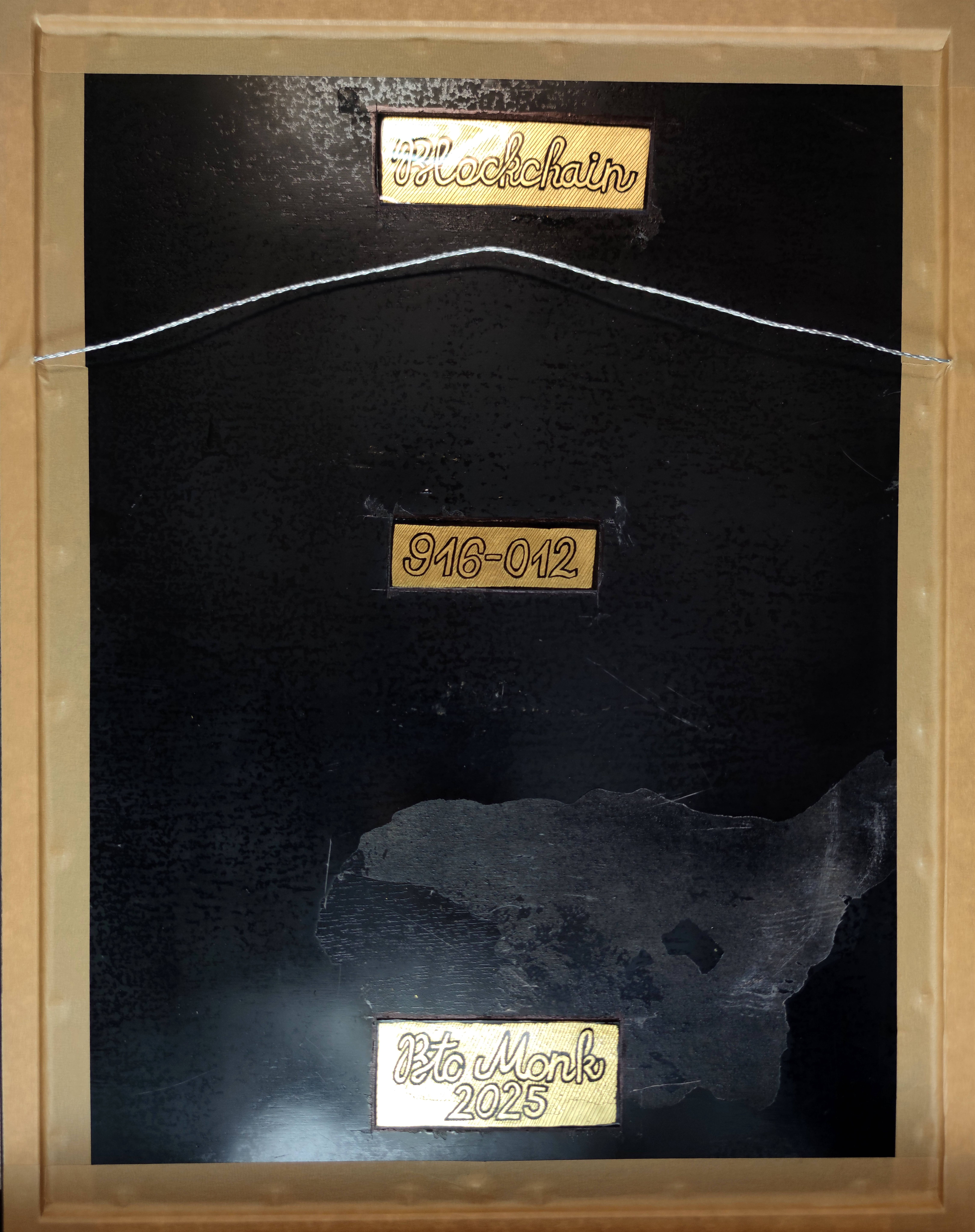 Block number 916,012 was gilded in gold on the back of the artwork to mark the date and time when the art piece was finished.