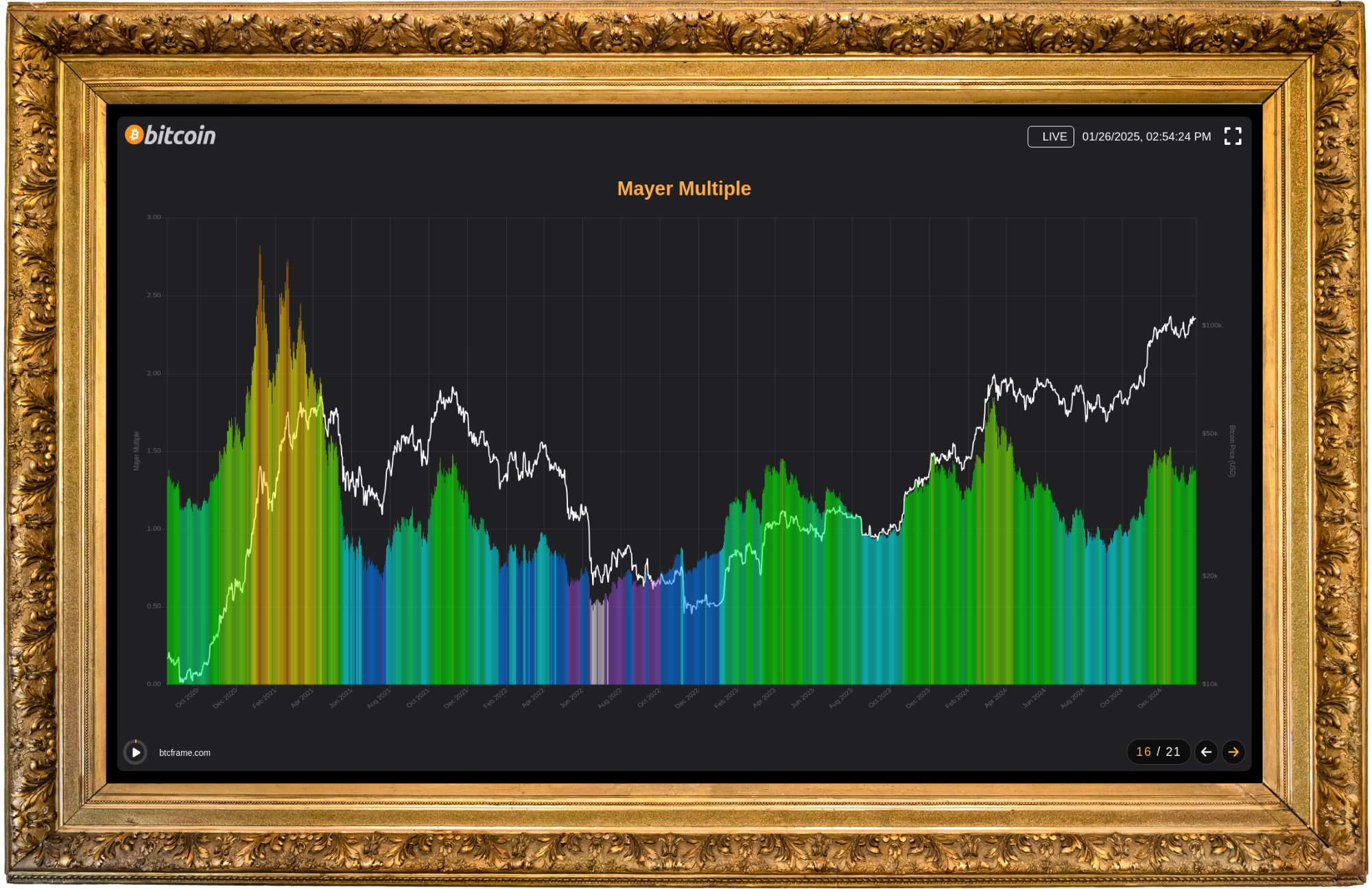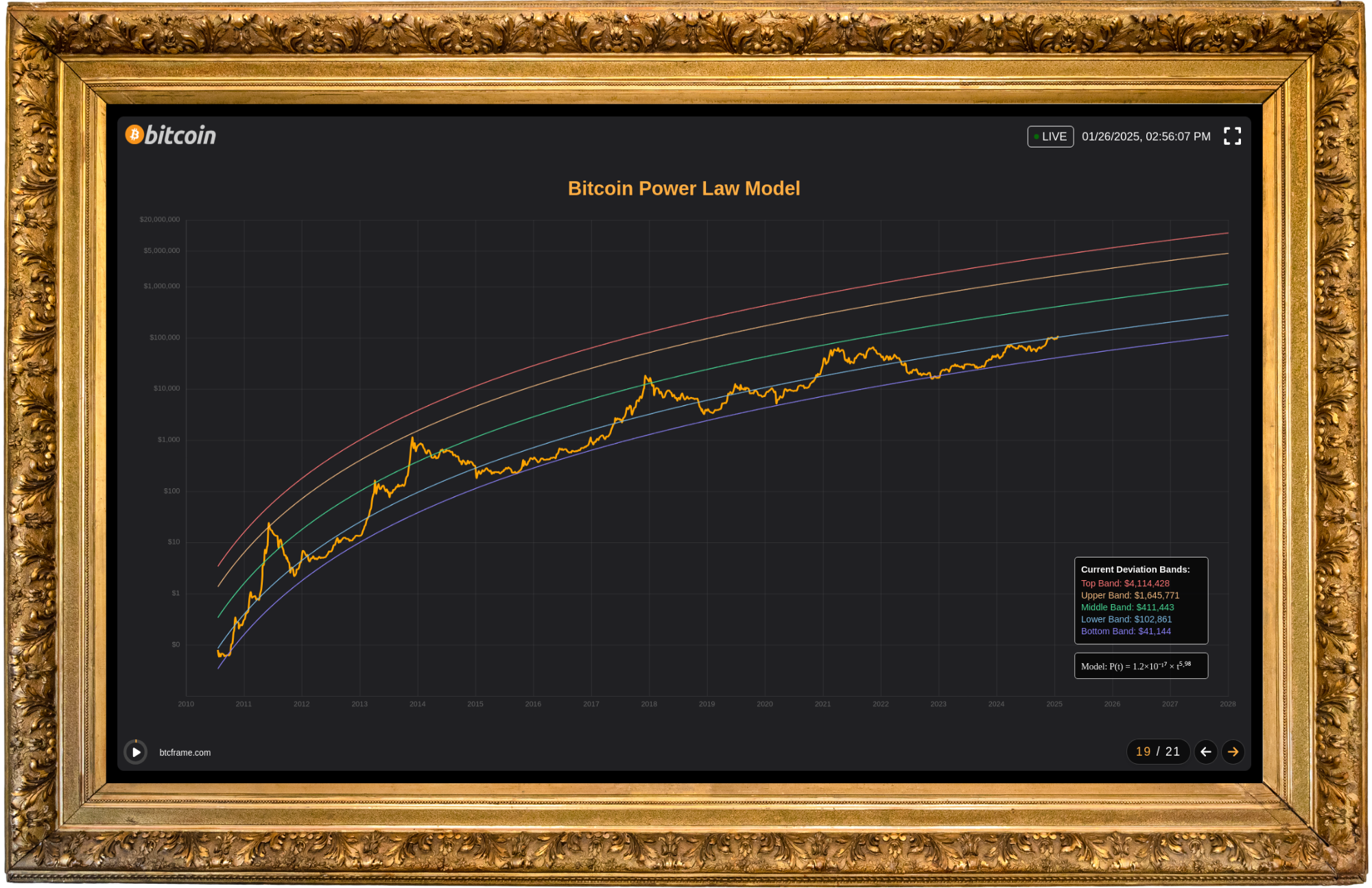 The BTC Frame’s 21st dashboard is a special dedication to the enigmatic creator of Bitcoin, Satoshi Nakamoto. This exclusive feature adds a deeply symbolic and heartfelt touch to the experience.