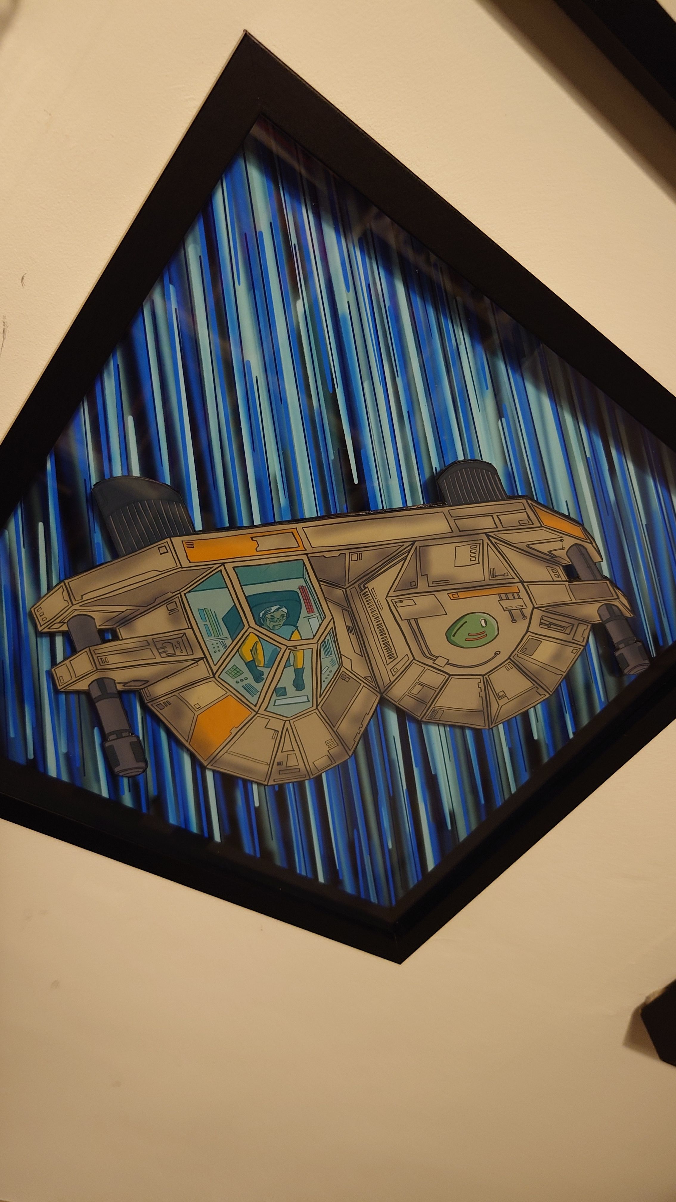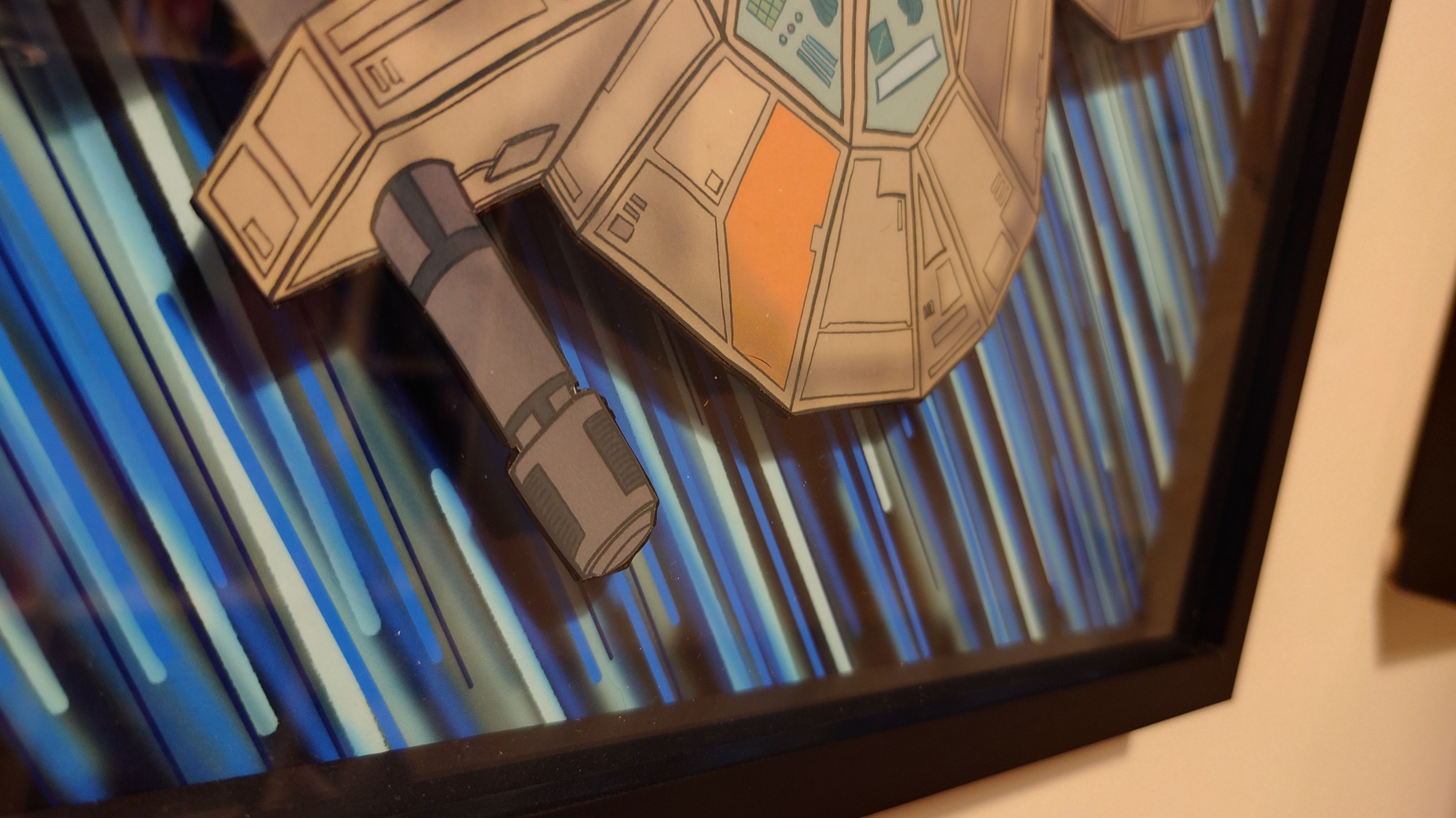 Blasting through hyperspace General Nakamoto flies his BTC-Wing with his droid P3-P3 navigating his way.