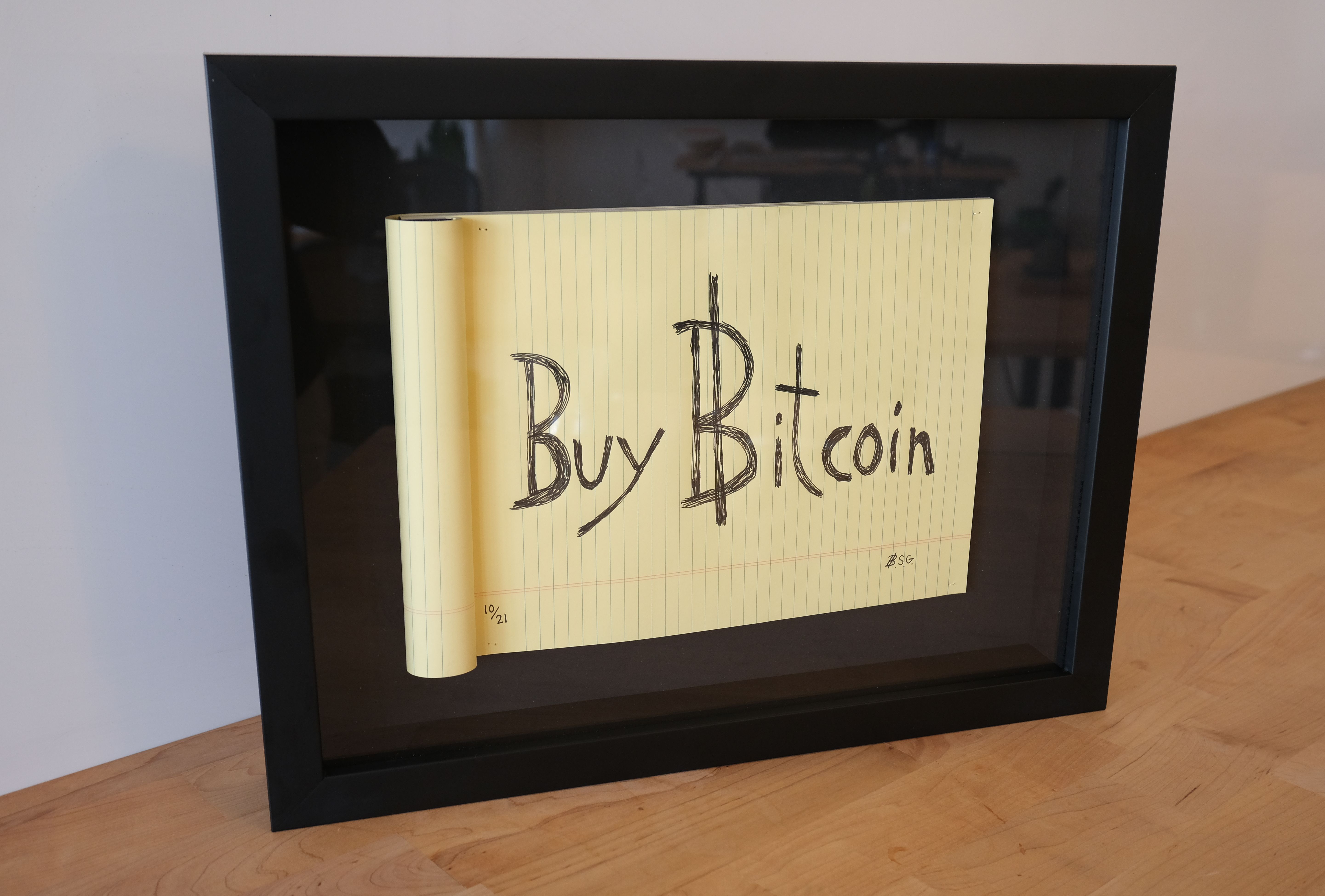 Own the meme. Hand-drawn replica of the original Buy Bitcoin sign, by Bitcoin Sign Guy.