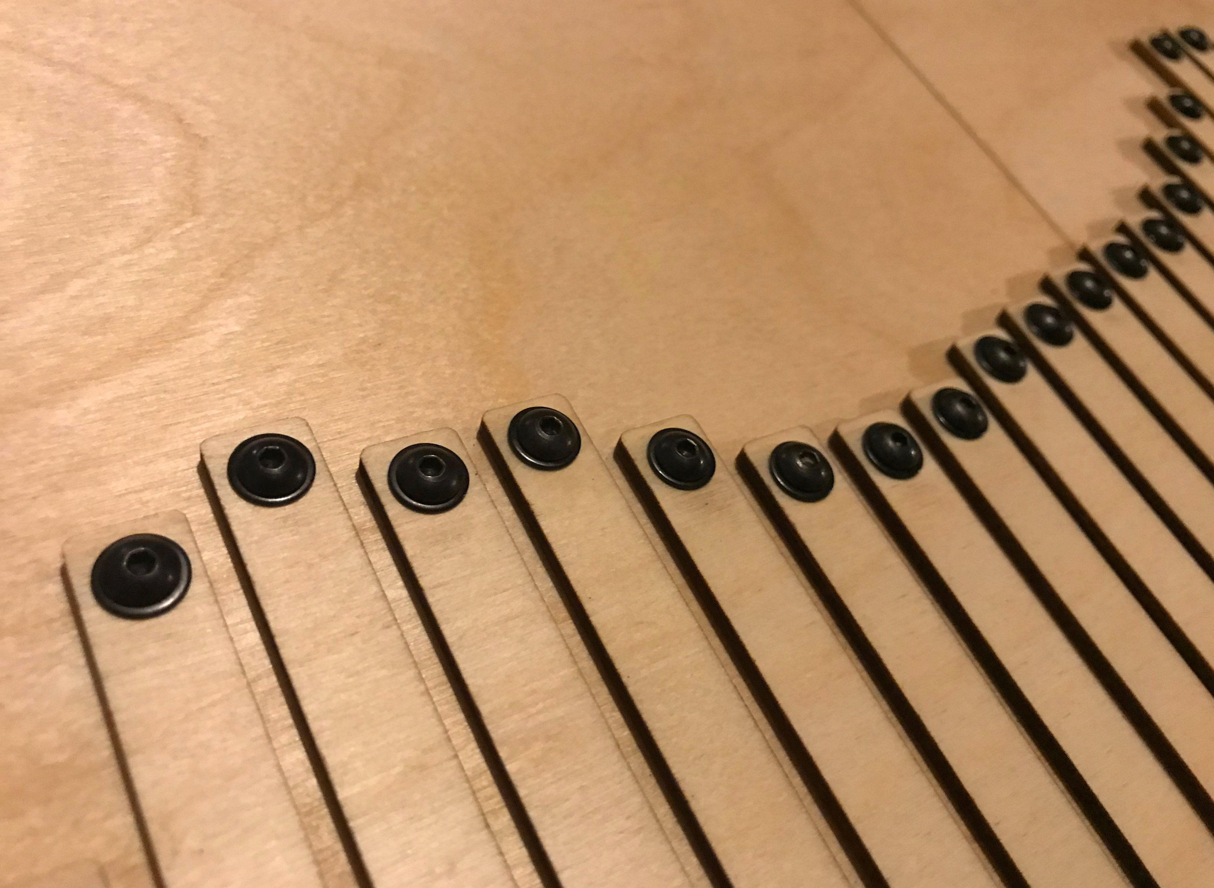 Materials: Laser cut birch plywood, laser cut matte black acrylic, black oxide