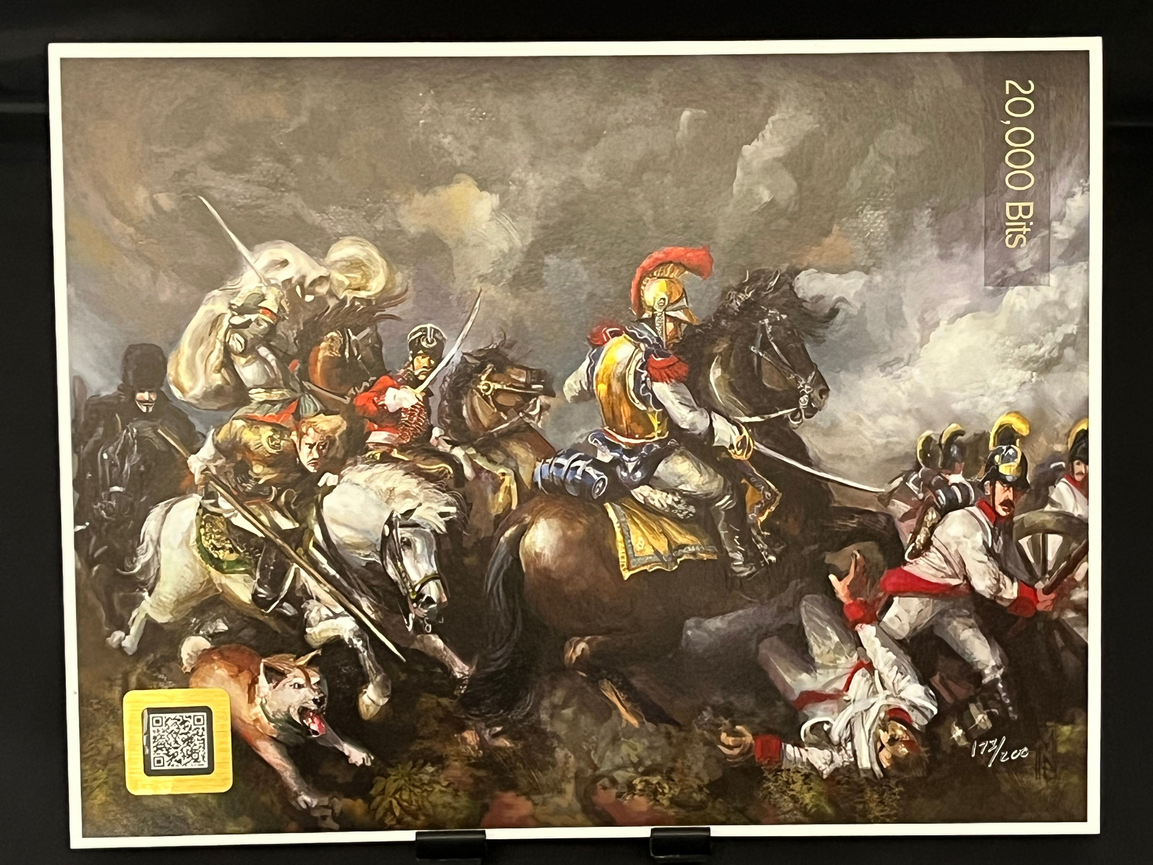 Art is not loaded but can be and is denominated with 20,000 bits or 2,000,000 sats. Size: 8.5" x 11"