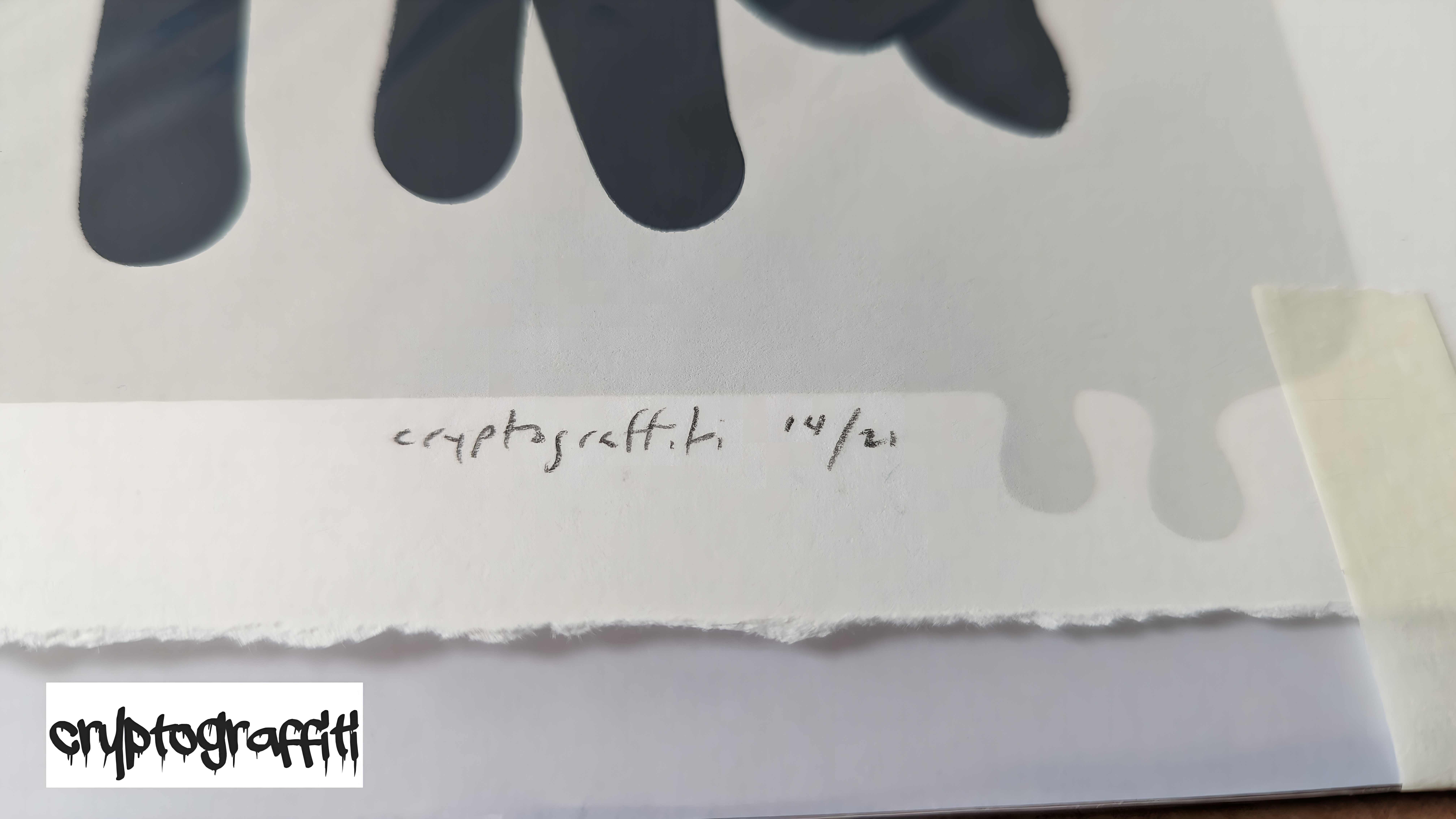 This auction is for the blue+gray version. Signed, limited edition of 21. cryptograffiti collabed with artist Kim Hui to make this version AR-enabled.
