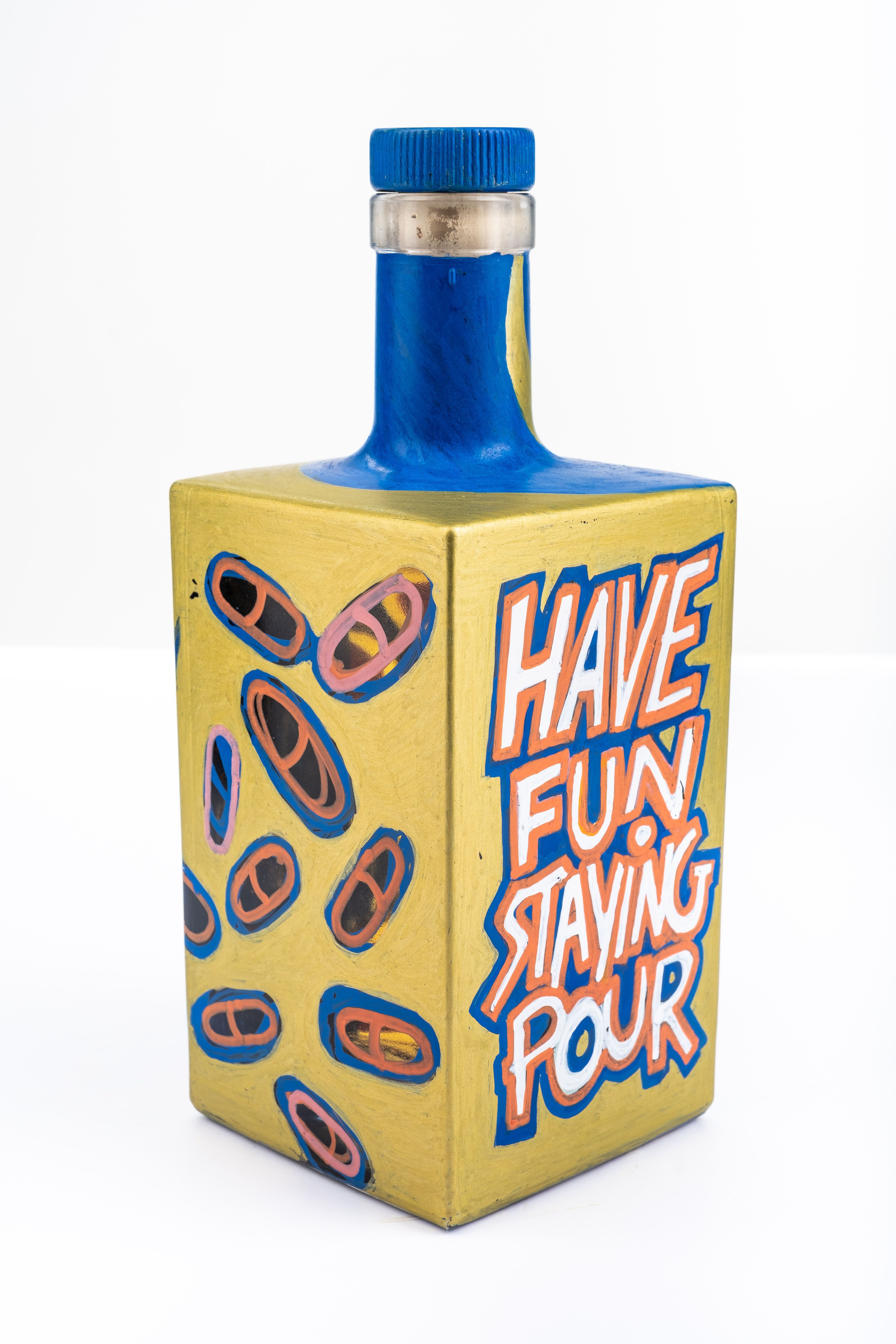 Of those 256 bottles, 7 Bitcoin artists have created 3 unique limited editions each giving a total set of 21. This round of auctions is for the second limited edition from each artist with this specific auction being for the second of three different and unique hand painted bottles.