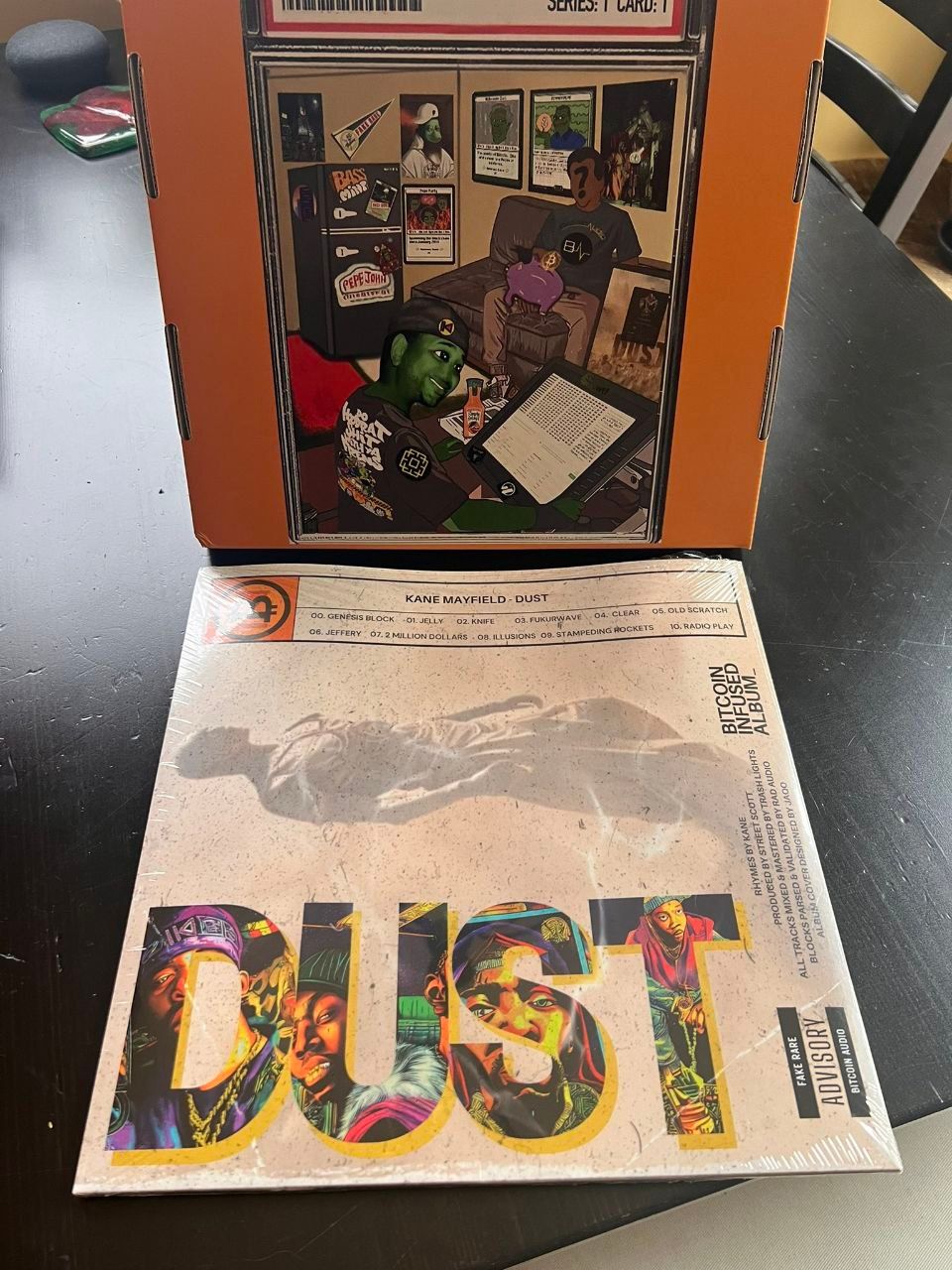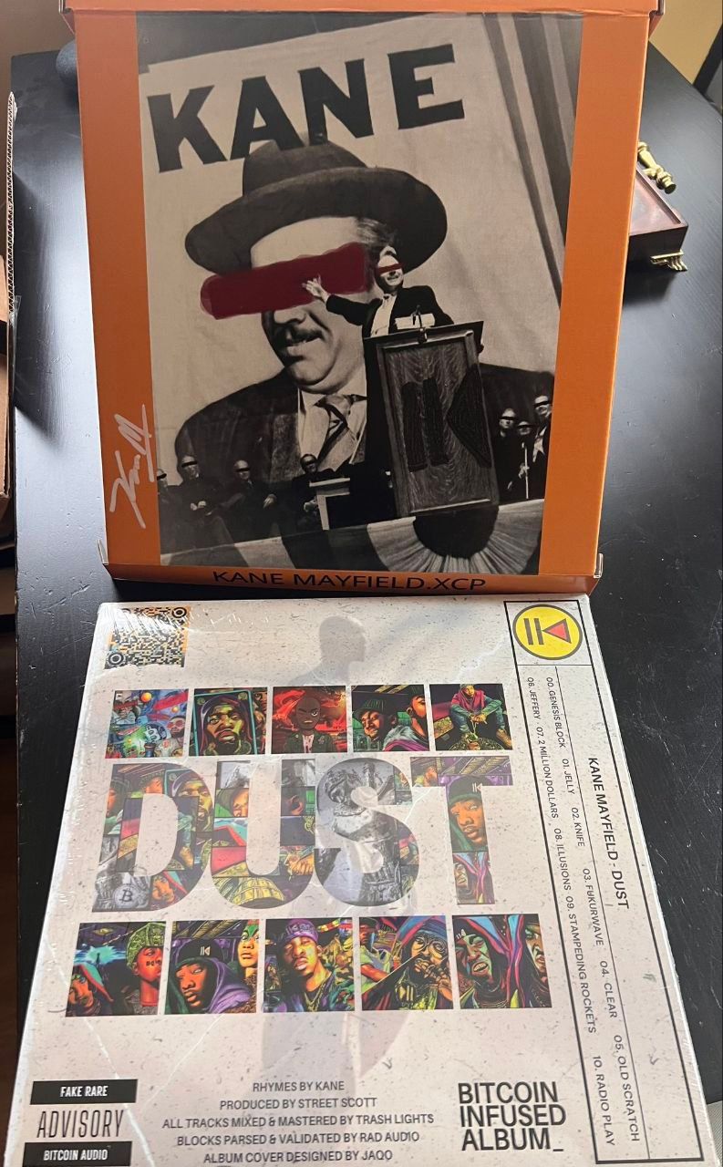 The album dust is literally infused with the SOUND of the Bitcoin Blockchain. Rad Audio created a device that converts the Bitcoin transaction hash into sound. We have sampled that sound and laced it through 10 songs. This album will never be available on streaming dsps. It is on bitcoin for bitcoin enjoyoors