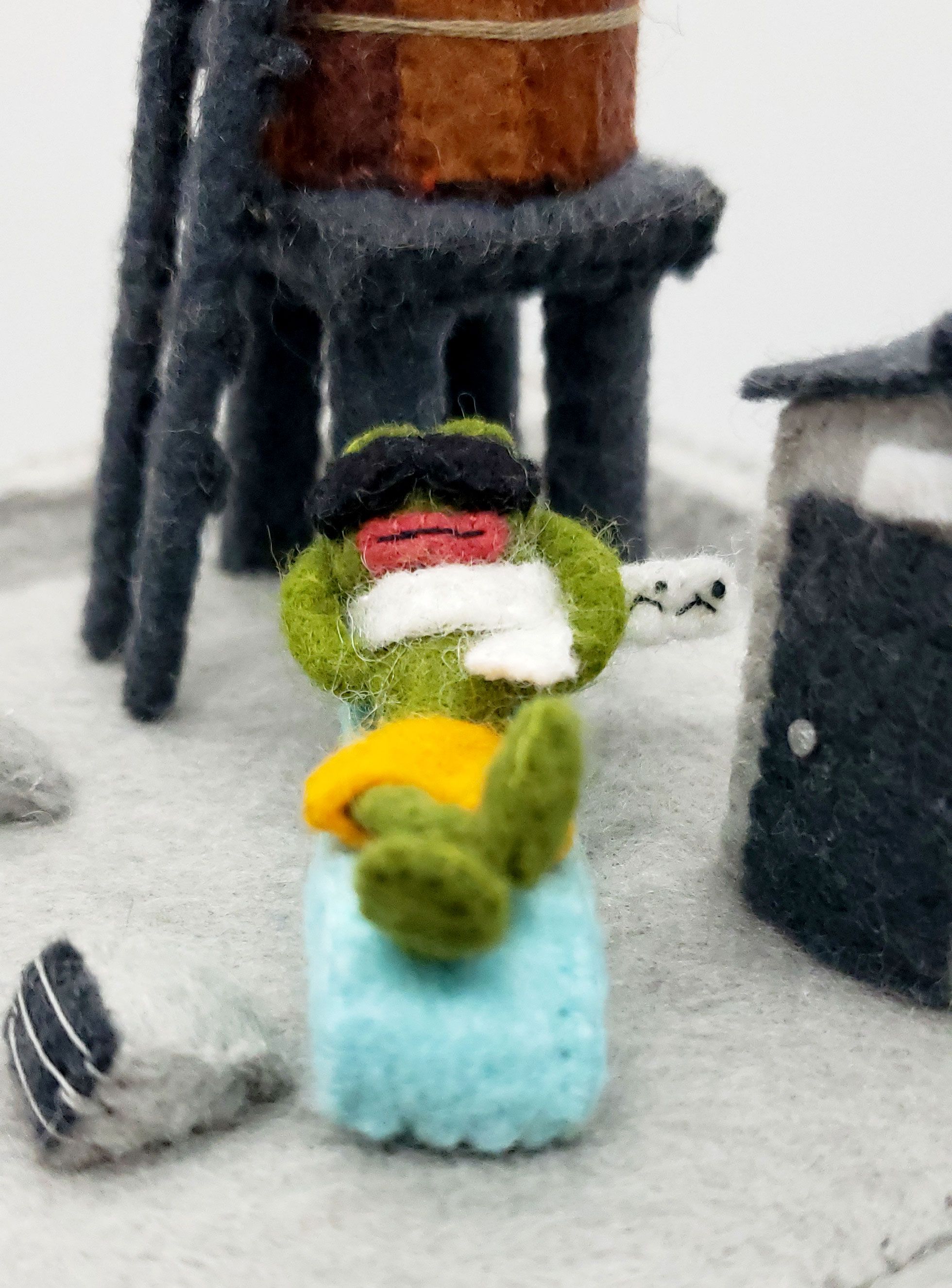 Pepe art gallery throws out fiat trash. Felt sculpture 13H"x 6W" x 5D" inches
