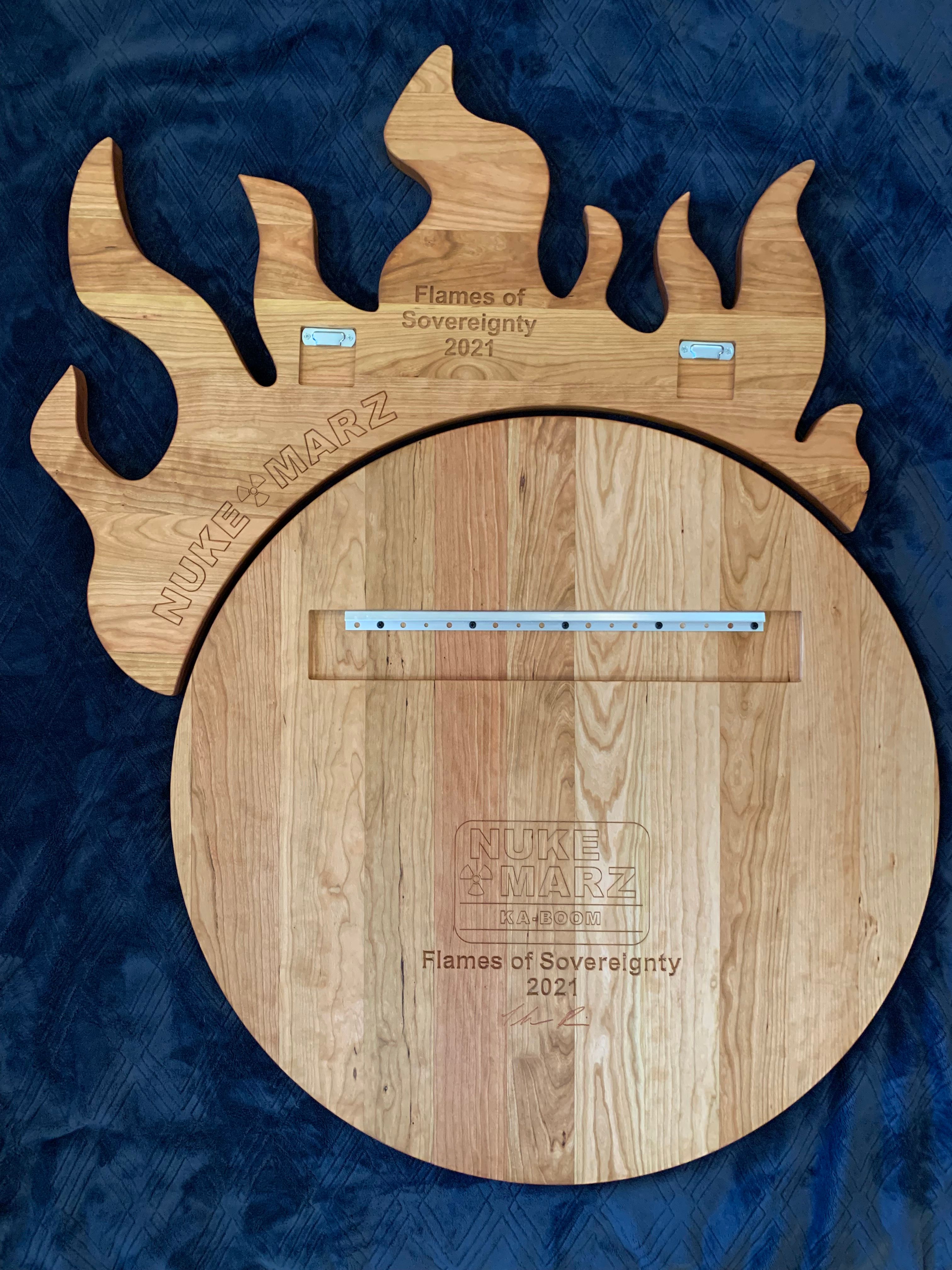 Flames of Sovereignty is a large, heirloom quality piece crafted with the highest quality materials in tribute to hope and freedom. While I am tempted to HODL the piece as tightly as Bitcoin, I have decided to offer it for sale as my contribution to the ascendance of Bitcoin.