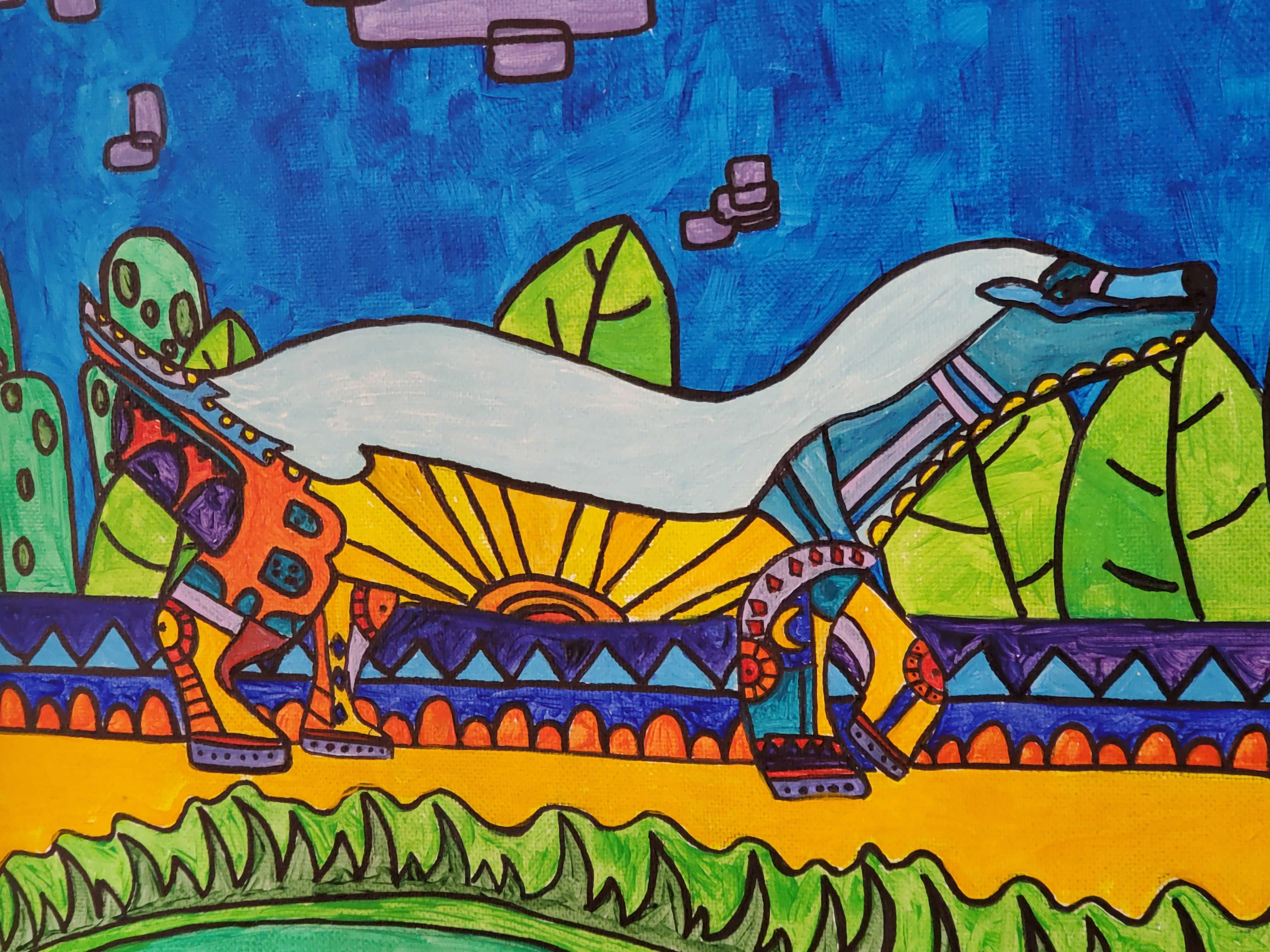 This is a framed acrylic painting on a 11”x14” canvas.