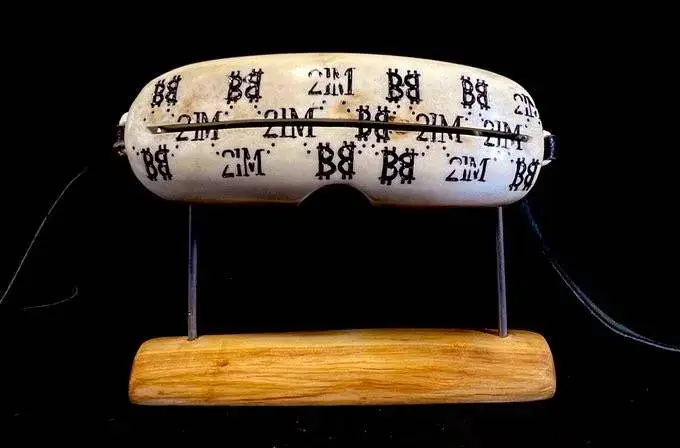 Hand-carved Inuit goggles made from real elc antlers - a statement between tradition, health, Bitcoin & fashion