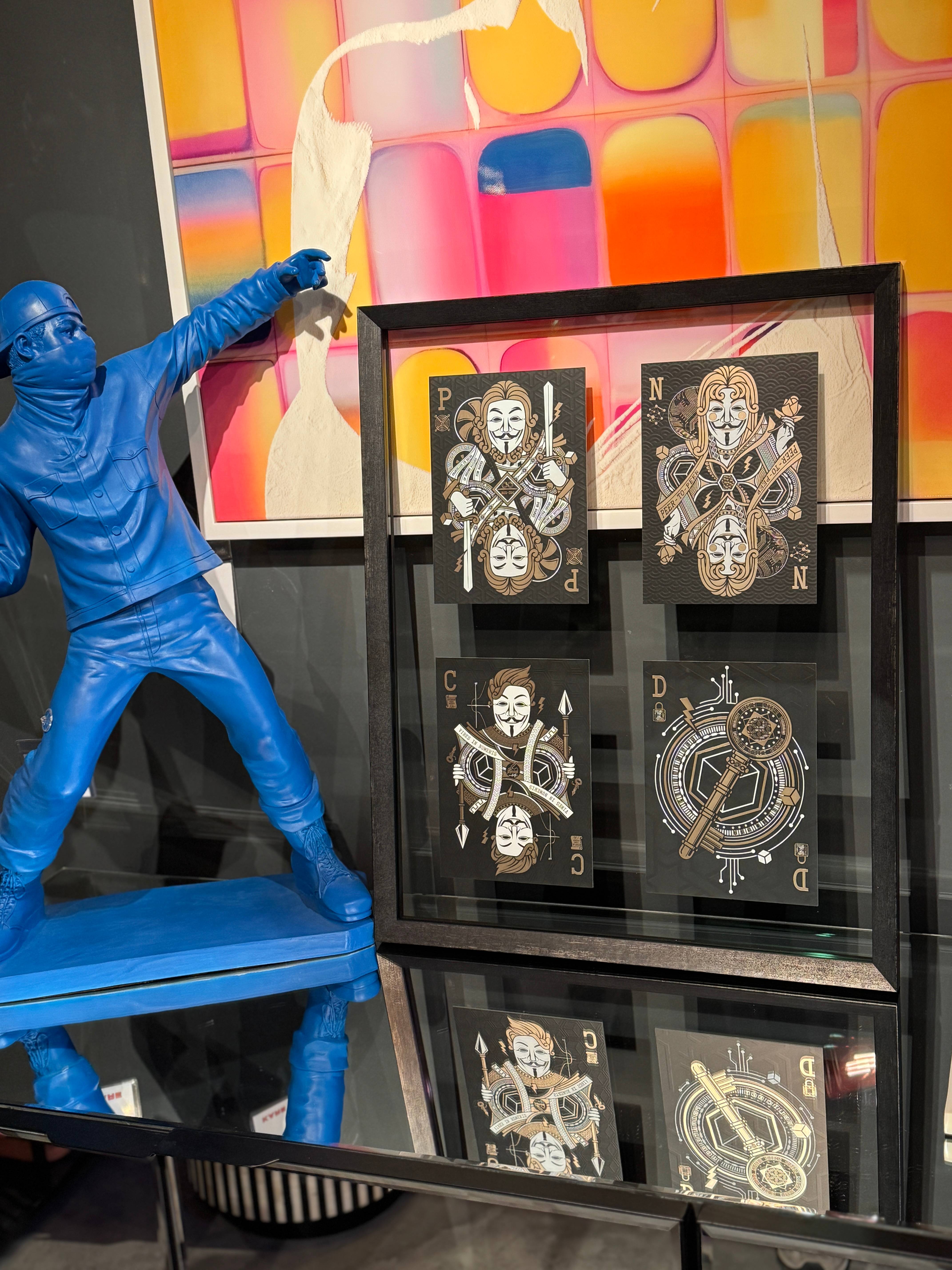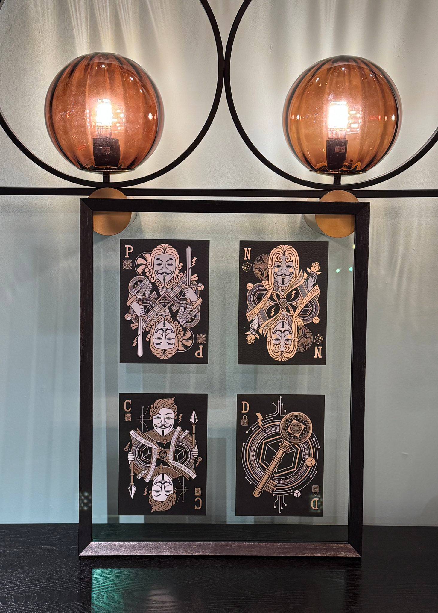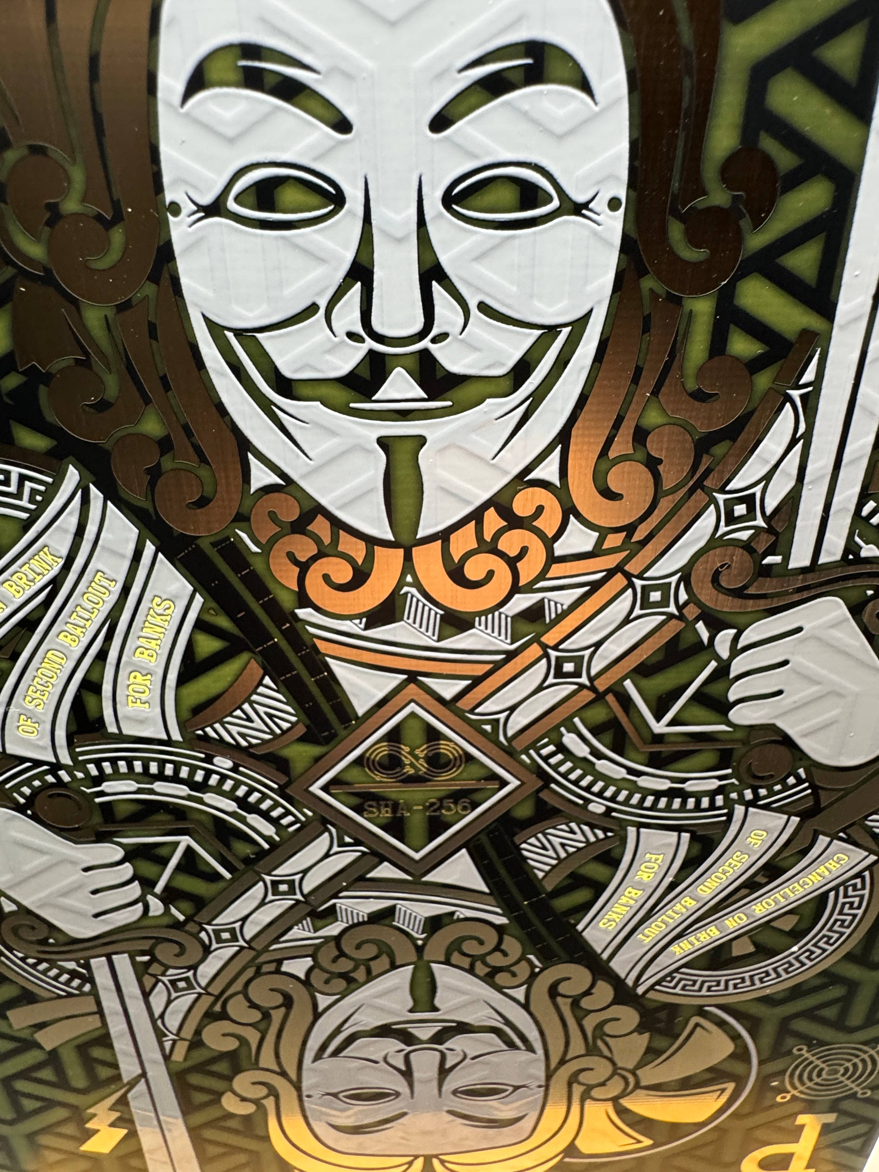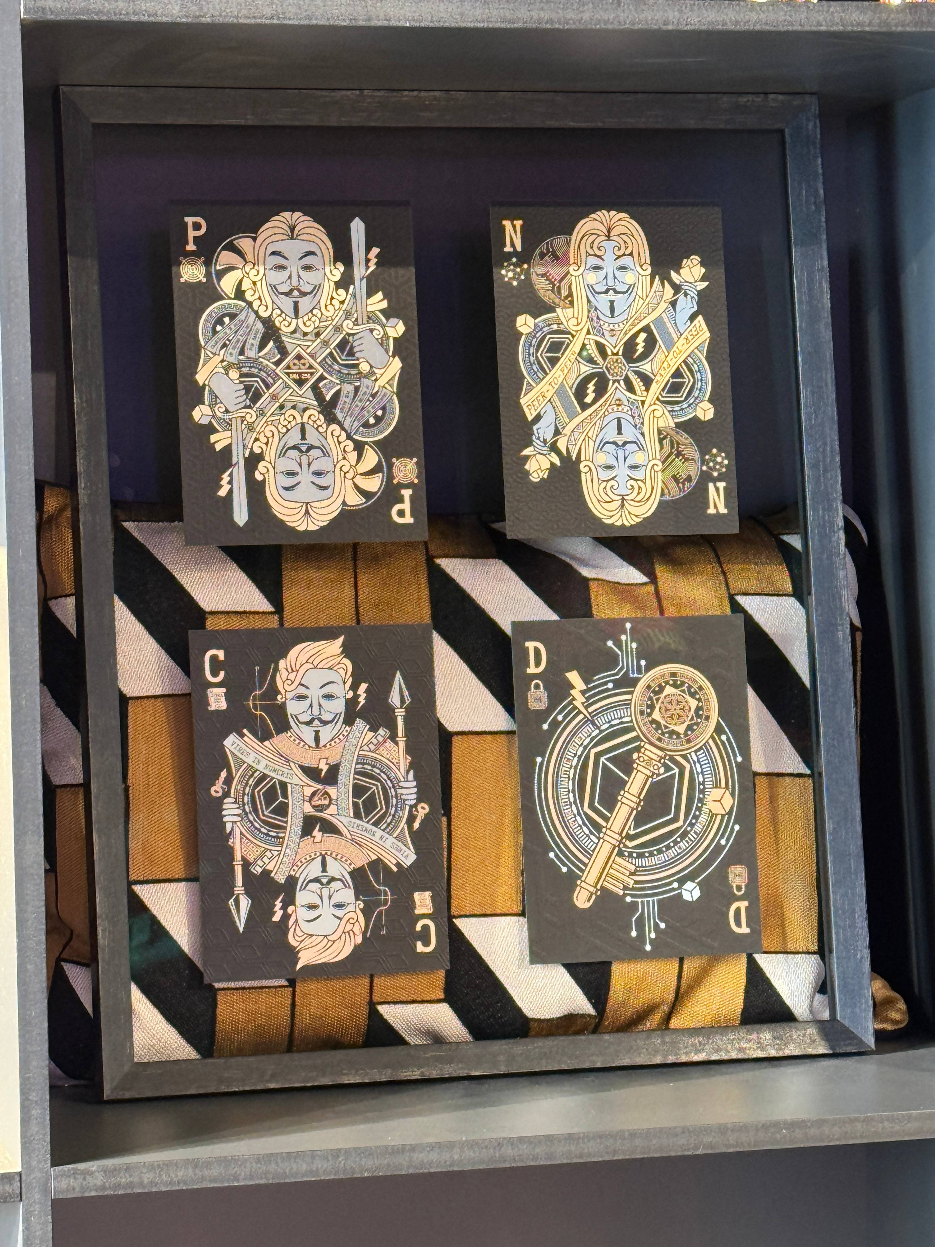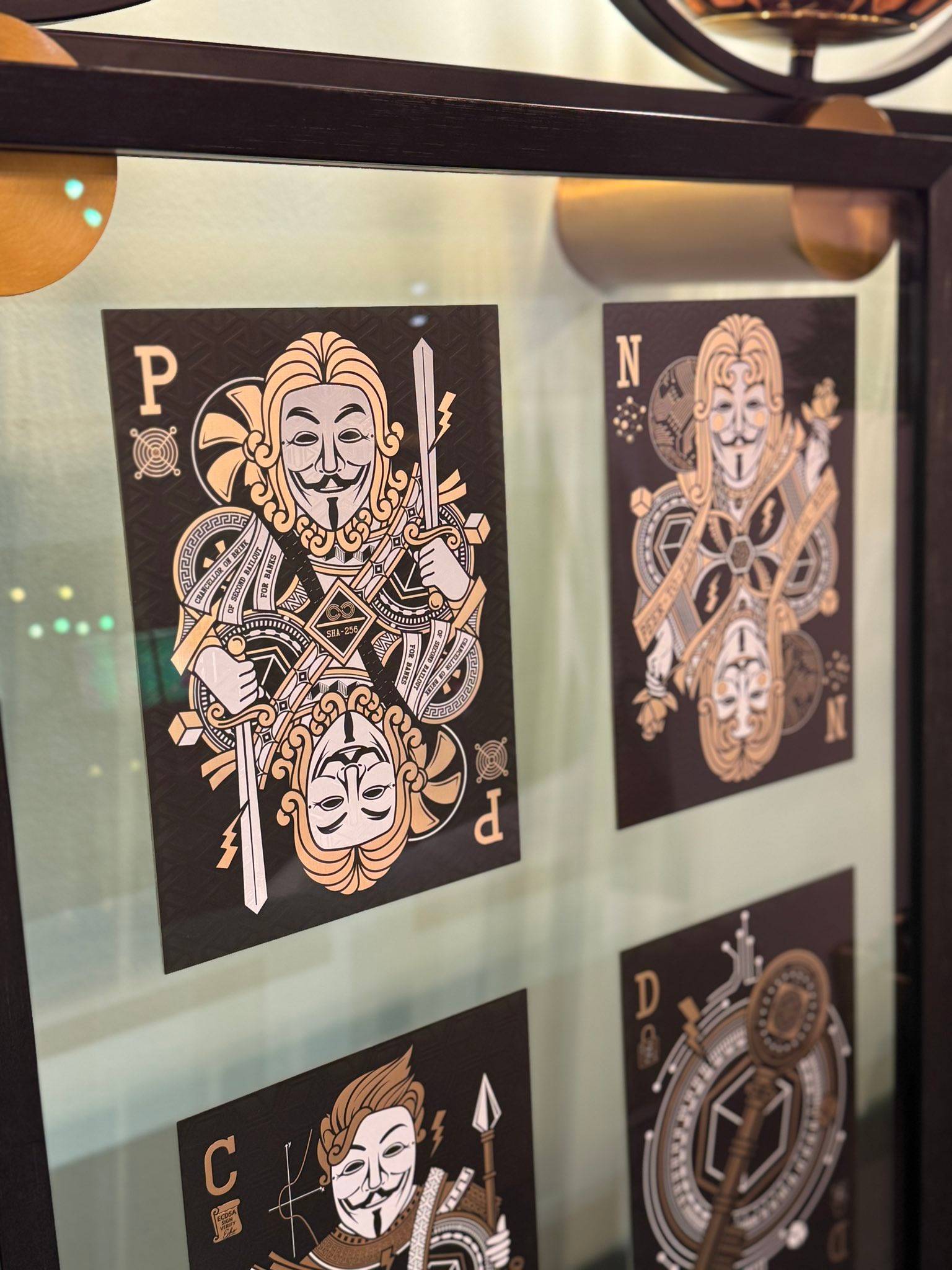 "Guardians Of The Protocol" Four playing cards with Bitcoin related themes.