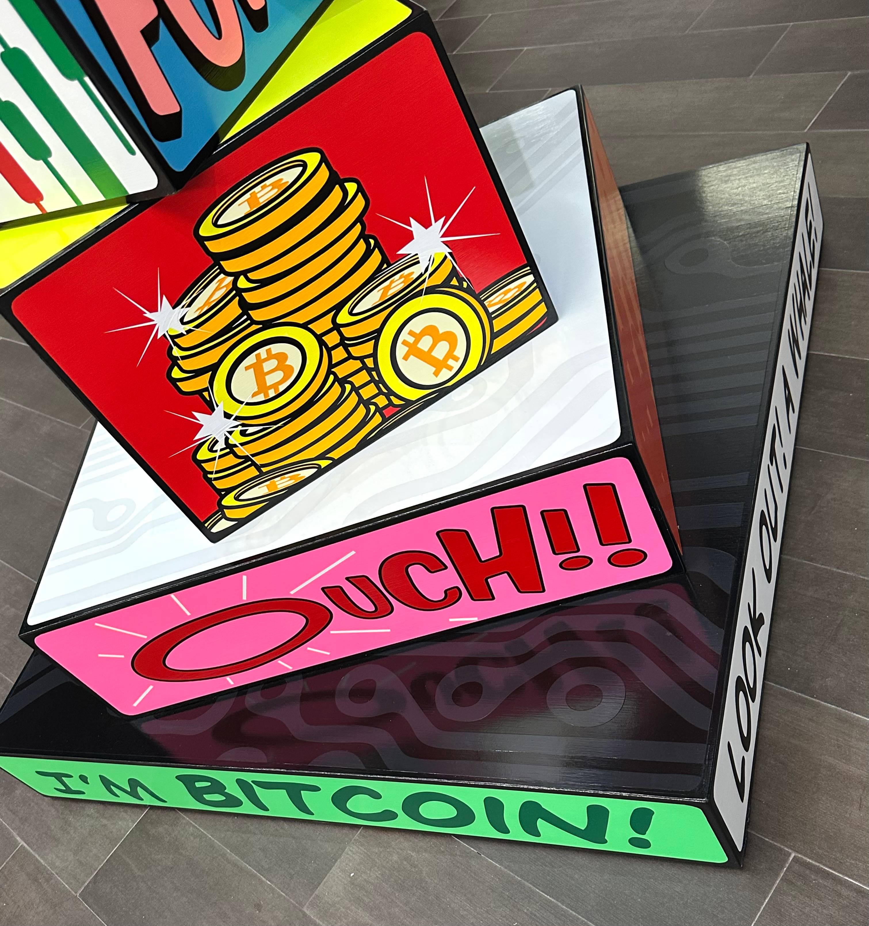 Batman (old school) inspired bitcoin tower. Painted primarily in fluorescents to give it the ultimate powerful punch and visibility. Gallery retail value of $26000.