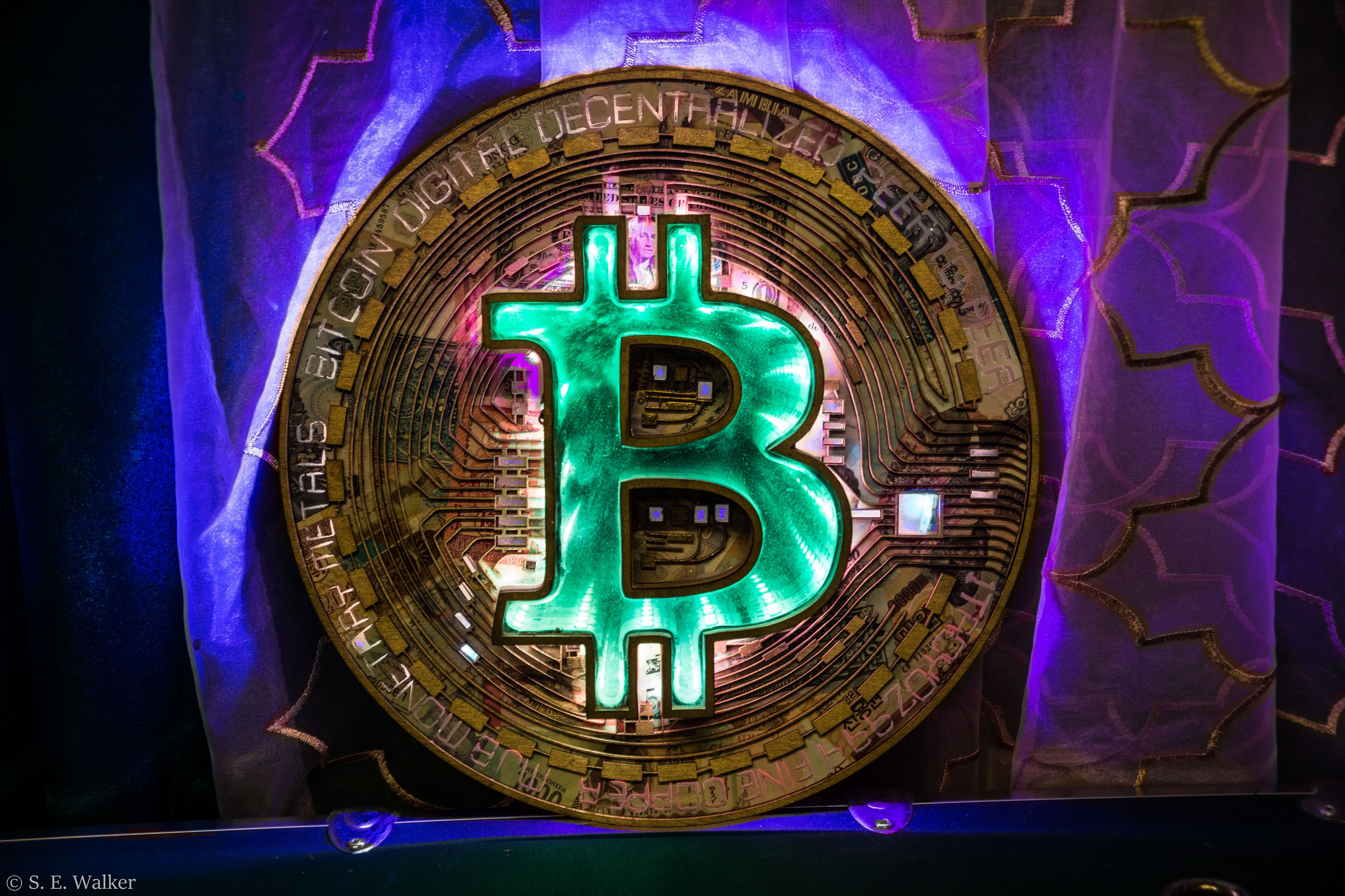 Materials: Baltic Birch, 12v WS2811 individually addressable LEDs, Fiat Currency, Mirrored Acrylic, One Way Mirrored Acrylic