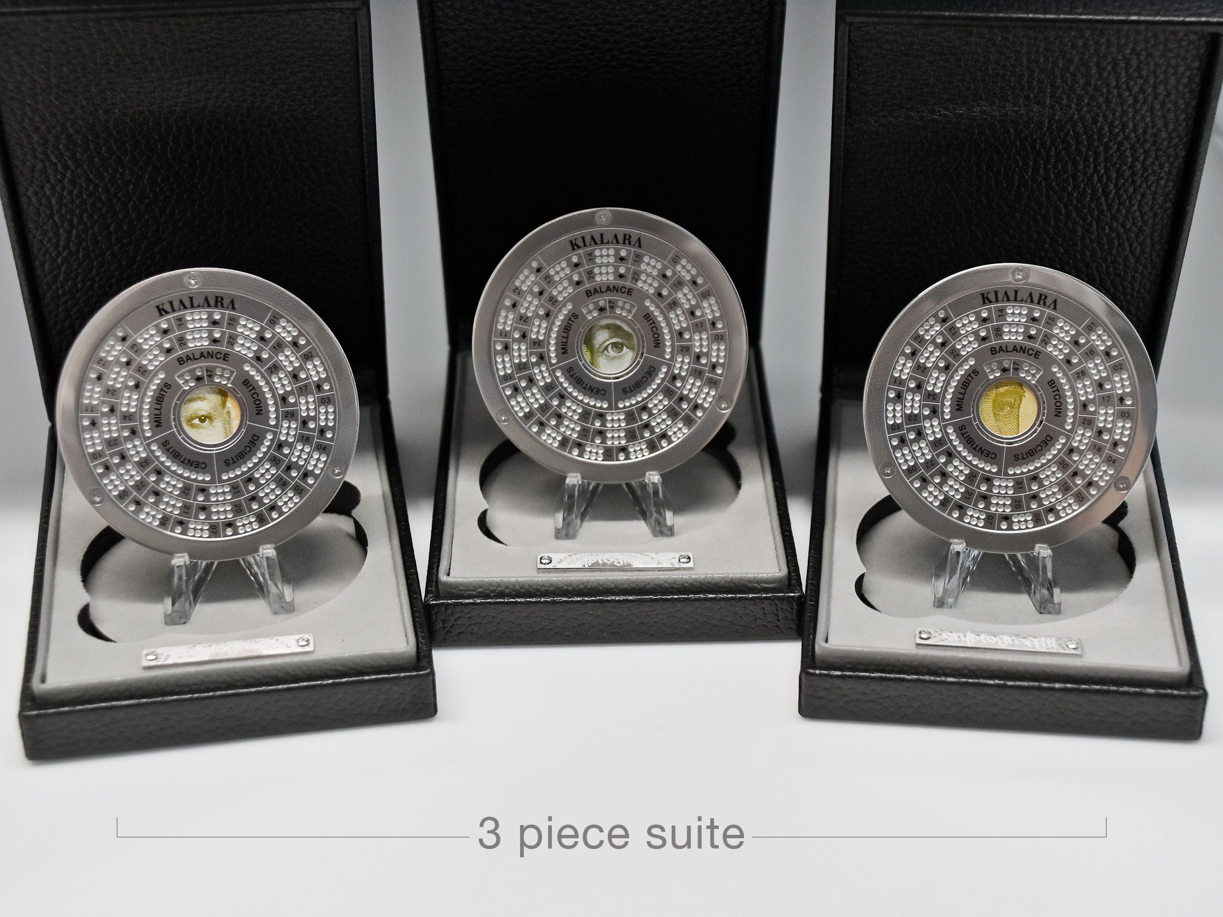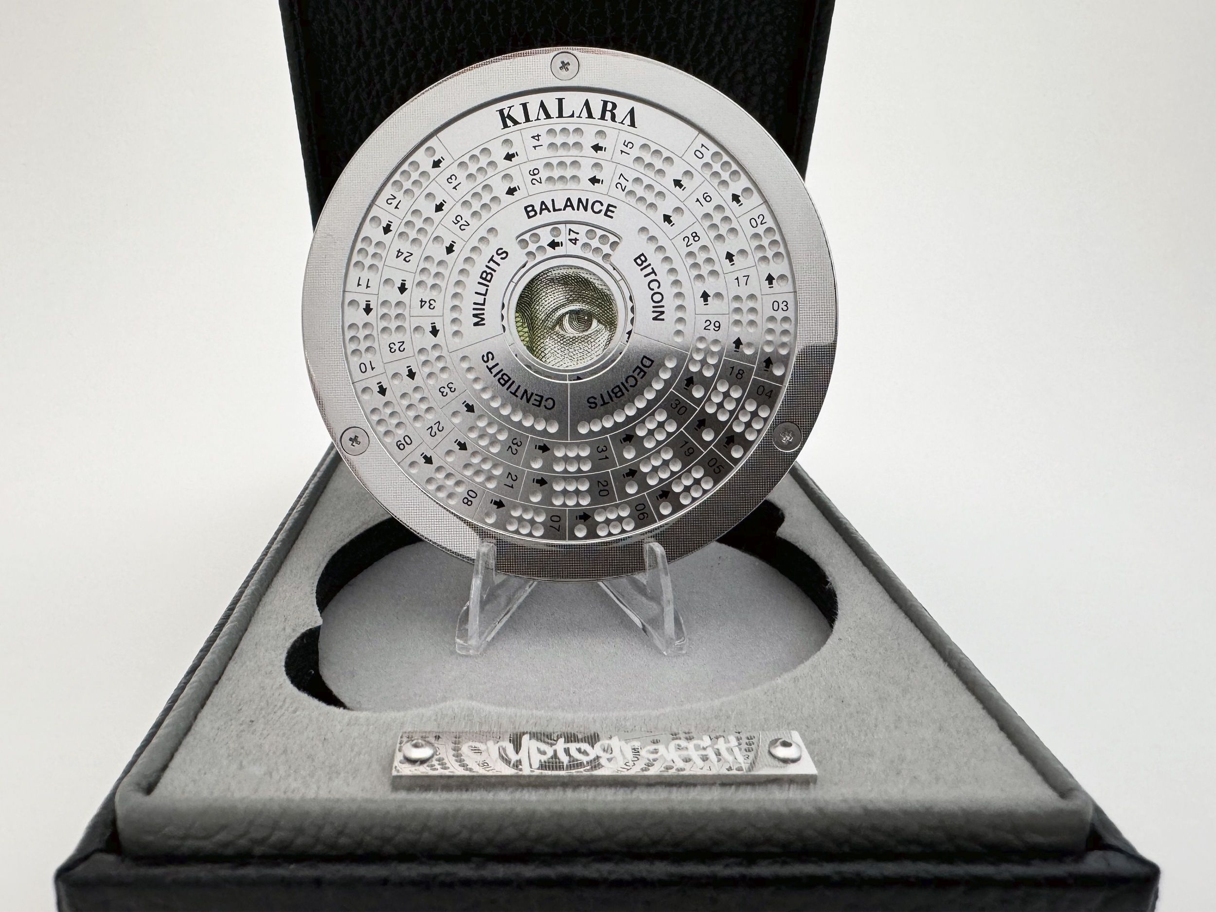 The act of cutting up money, traditionally seen as nearly blasphemous, here represents the artist's empowerment with an act that underscores everything that needs to be torn apart and rearranged towards the creation of a new financial paradigm.The Kialara design incorporates the eye at its center, unmistakably reminiscent of the Eye of Providence on the iconic one-dollar bill—a symbol often associated with surveillance and control. In this context, the eye on a self-custodial Kialara piece signifies the return of control to the individual, away from the central banks' issued currencies.This collaboration between two pivotal artists in the early Bitcoin art scene fulfills a long-standing community request, celebrating a deep friendship and mutual admiration. Their work, including pieces like The Builders and Minedala, paying homage to the mining devices underpinning Bitcoin, and Thug Life and United Nodes of Bitcoin, trifling with the dollar bill showcases unconscious yet significant thematic parallels.Limited to just 99 units produced in total (33 suites), these are a must-have for enthusiasts and collectors alike. Secure your piece of Bitcoin history now.