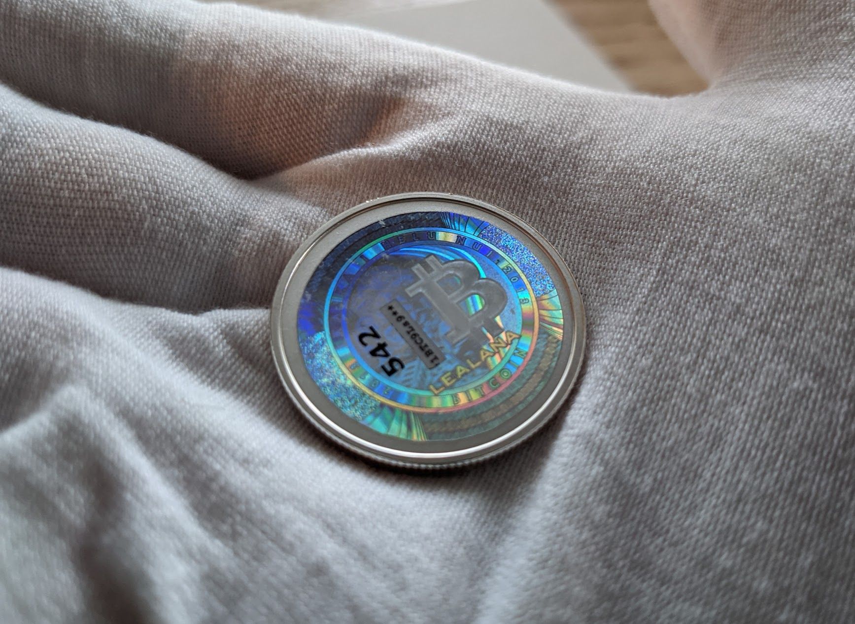 The private key to access the Bitcoin is secured behind a tamper-evident hologram.