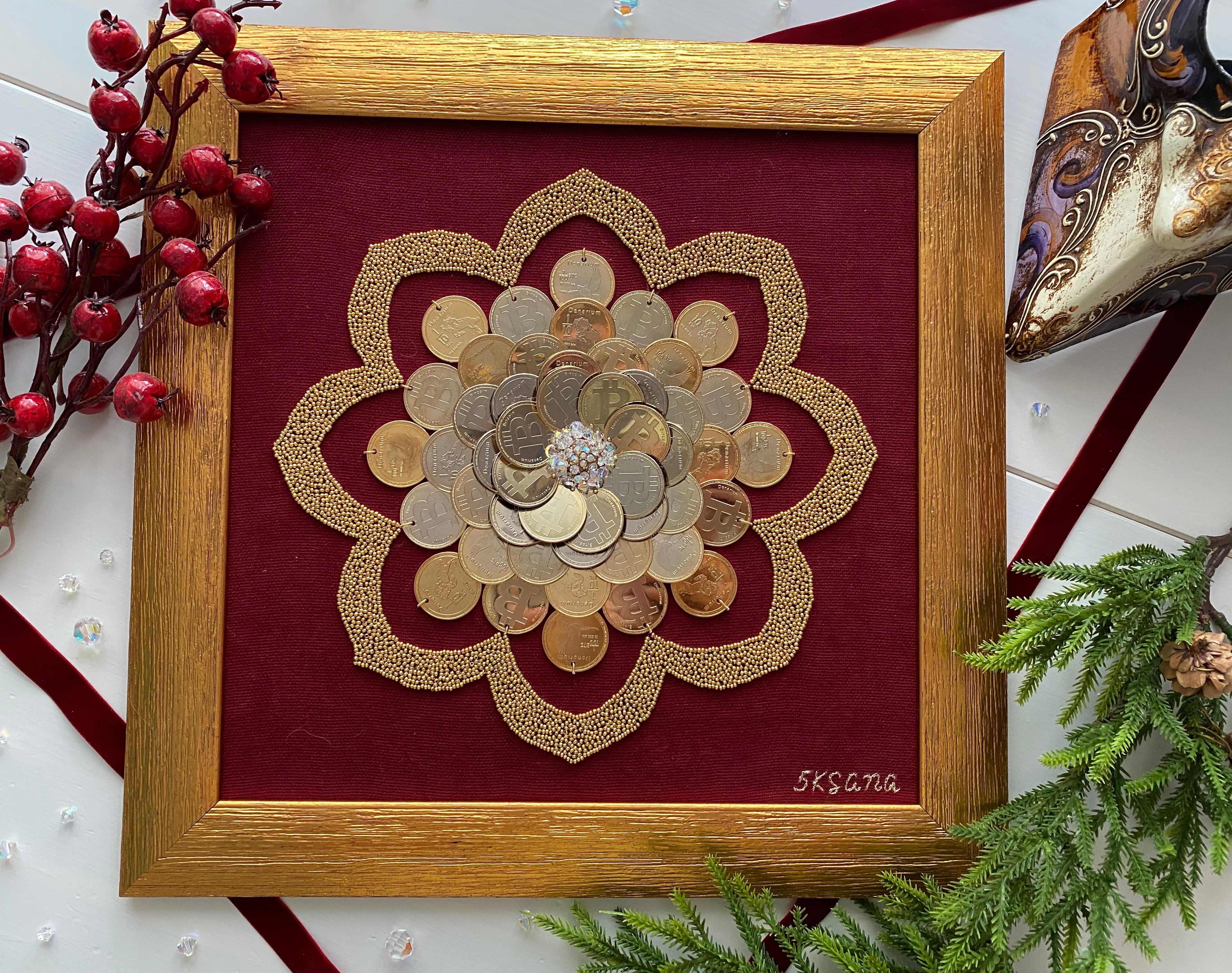 My painting «Lotus of Bitcoin» is a symbol of spiritual growth and a person's ability to achieve perfection and freedom! A blossoming flower in the form of physical coins Bitcoin symbolizes the present, and the «pearl in the lotus» means rebirth and the achievement of well-being!