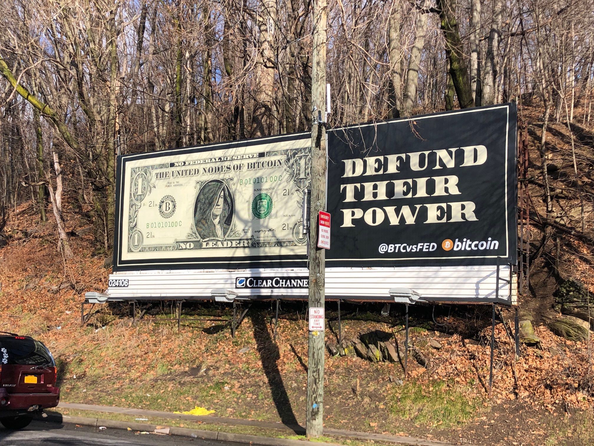 Another example is the San Francisco location. During the campaign I held a treasure hunt to bring attention to @BTCvsFED. Dozens of people attempted to uncover a private key via provided clues. A portion of said key was visible on the billboard itself after I climbed up and wrote it on the vinyl with a mop pen. This is reflected in the miniature version as well.