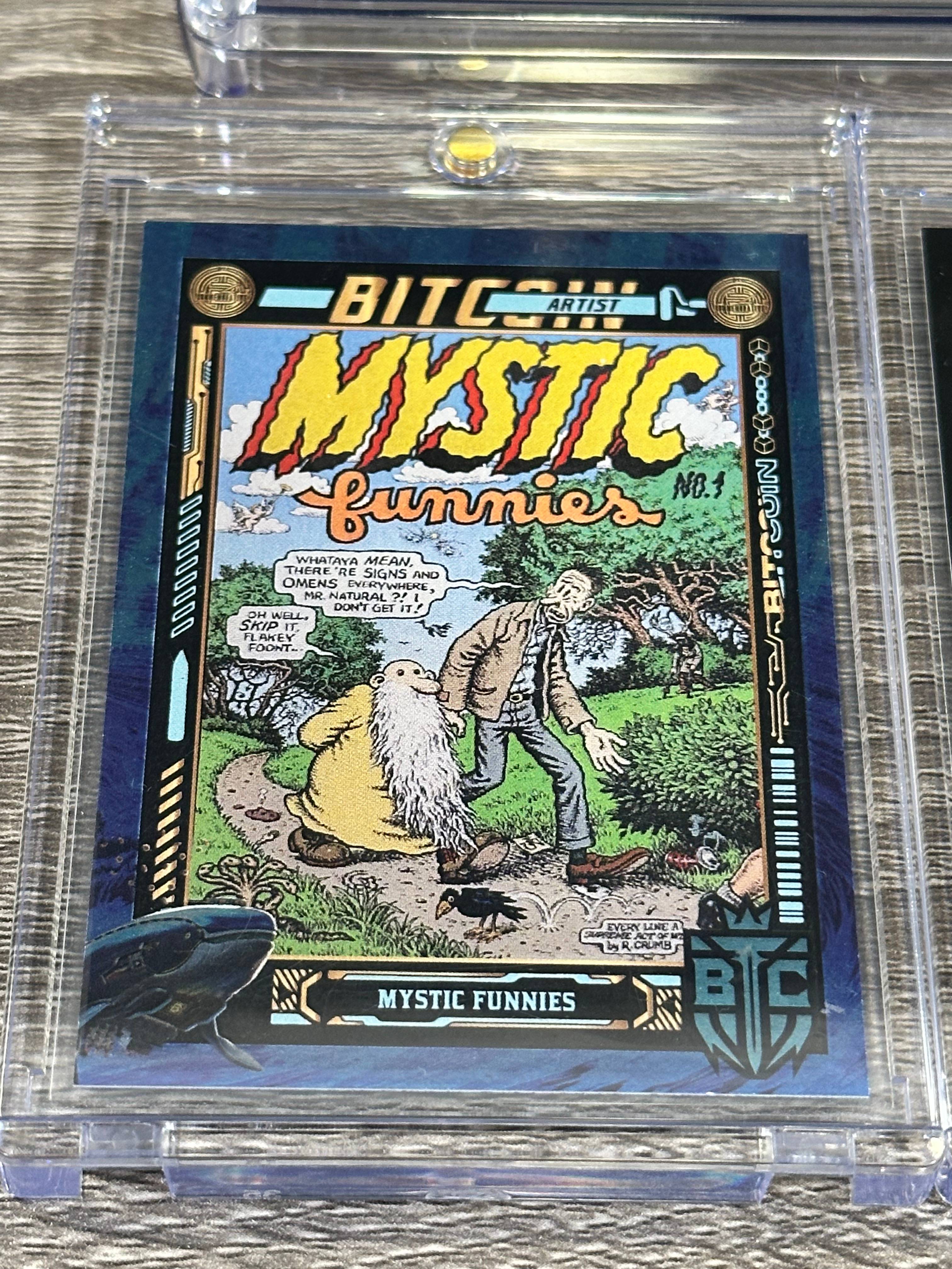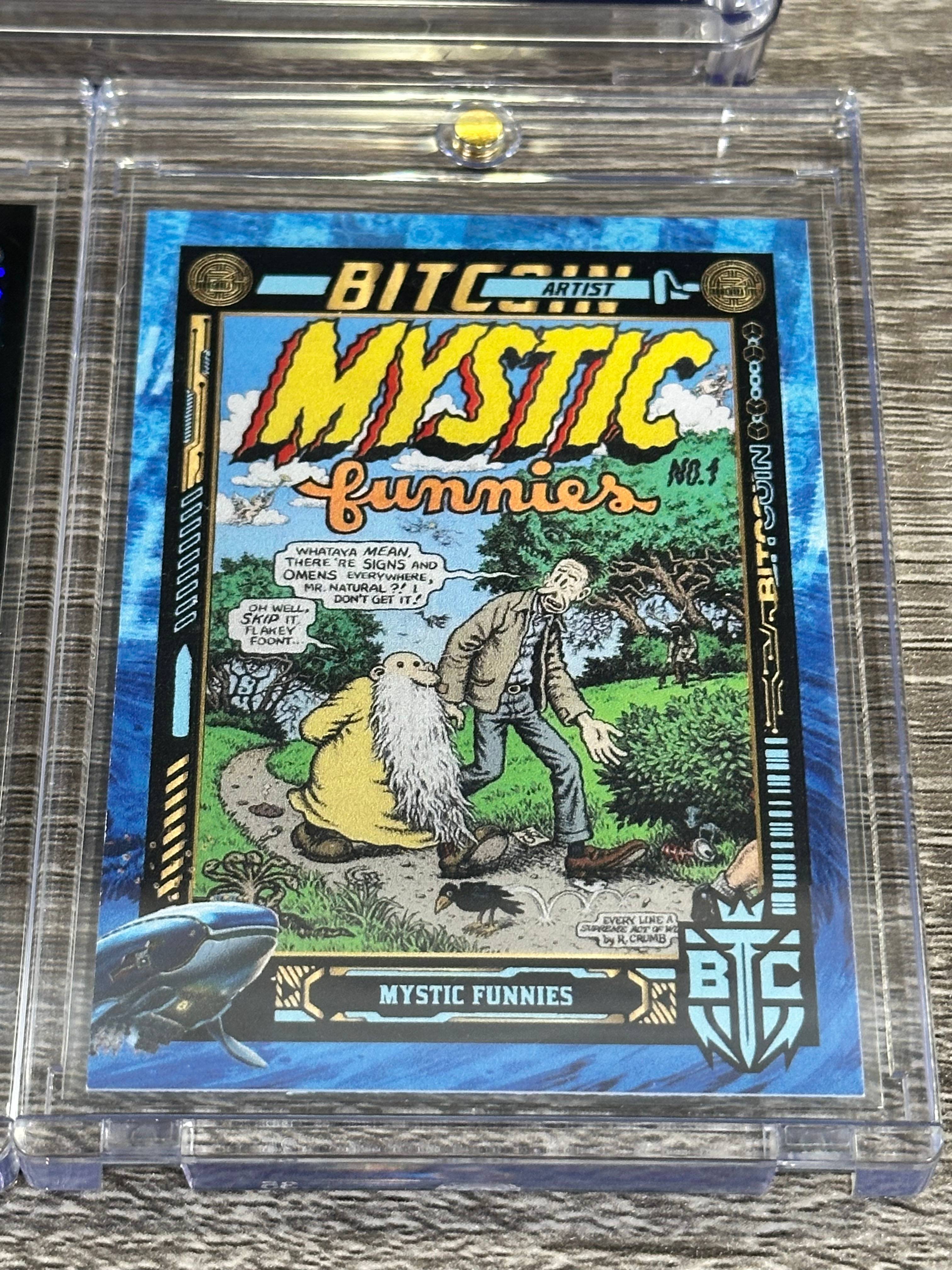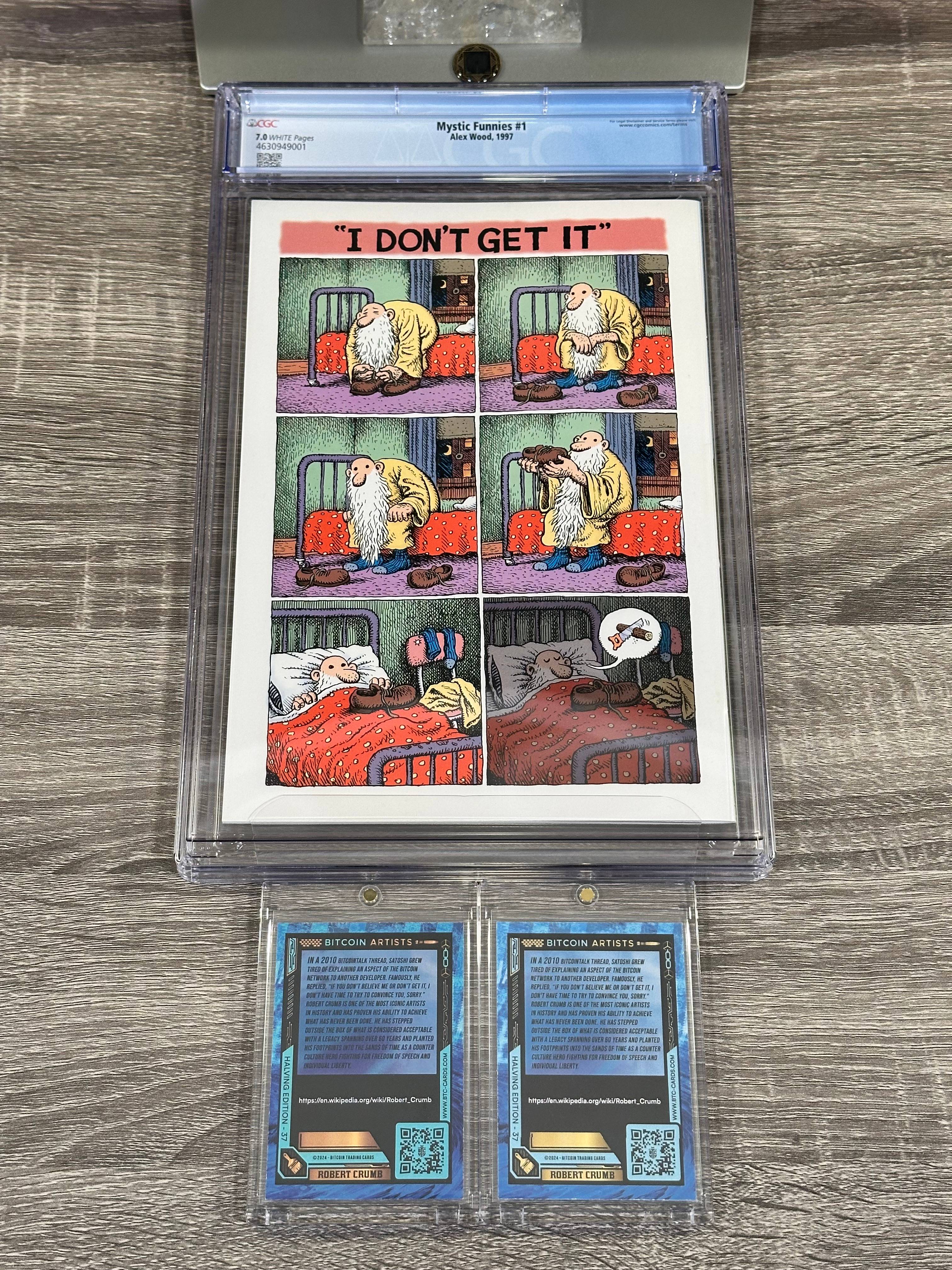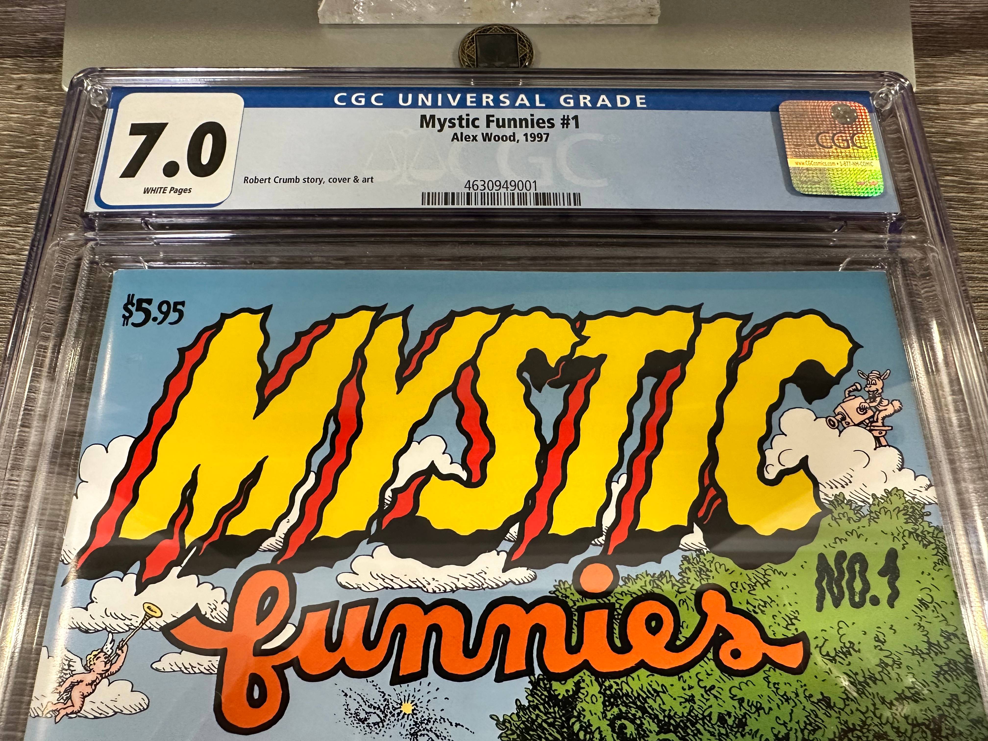 MYSTIC FUNNIES #1 by Robert Crumb GRADED 7.0 and 2 HEWP Bitcoin Trading Cards Comic Book: One Mystic Funnies Issue 1 by Robert Crumb that is a CGC Graded 7.0 Comic Slab The Mystic Funnies Issue 1 Comic was Printed by Alex Wood in 1997 Bitcoin Trading Cards: One 2024 Halving Edition Whale Pack (HEWP) Holo Foil Card #37 (Rarity /278) One 2024 Halving Edition Whale Pack (HEWP) Base Card #37 (Rarity /347) Shipping Notes: Items Will be Shipped with Protective Packaging to Arrive in Excellent Condition
