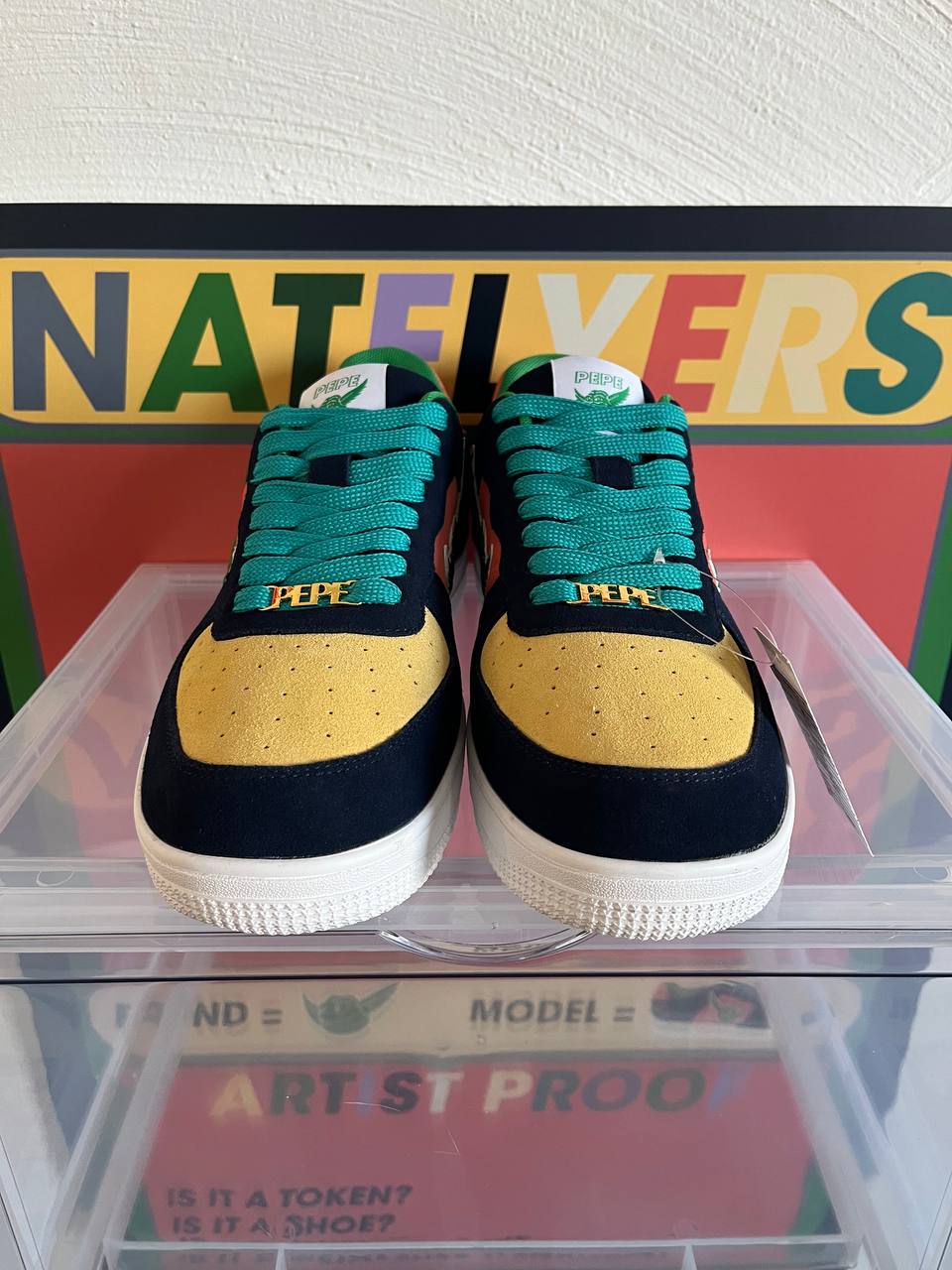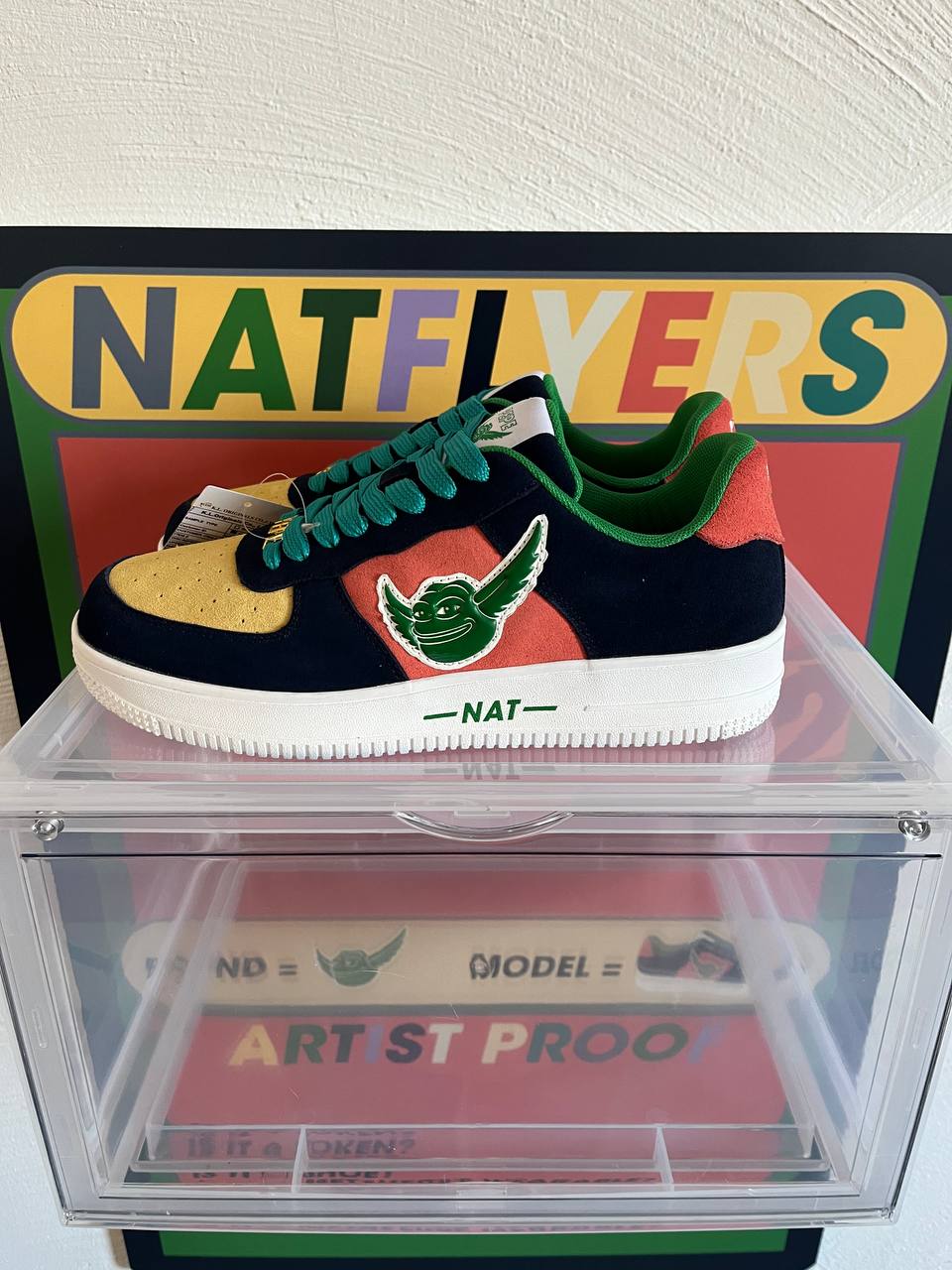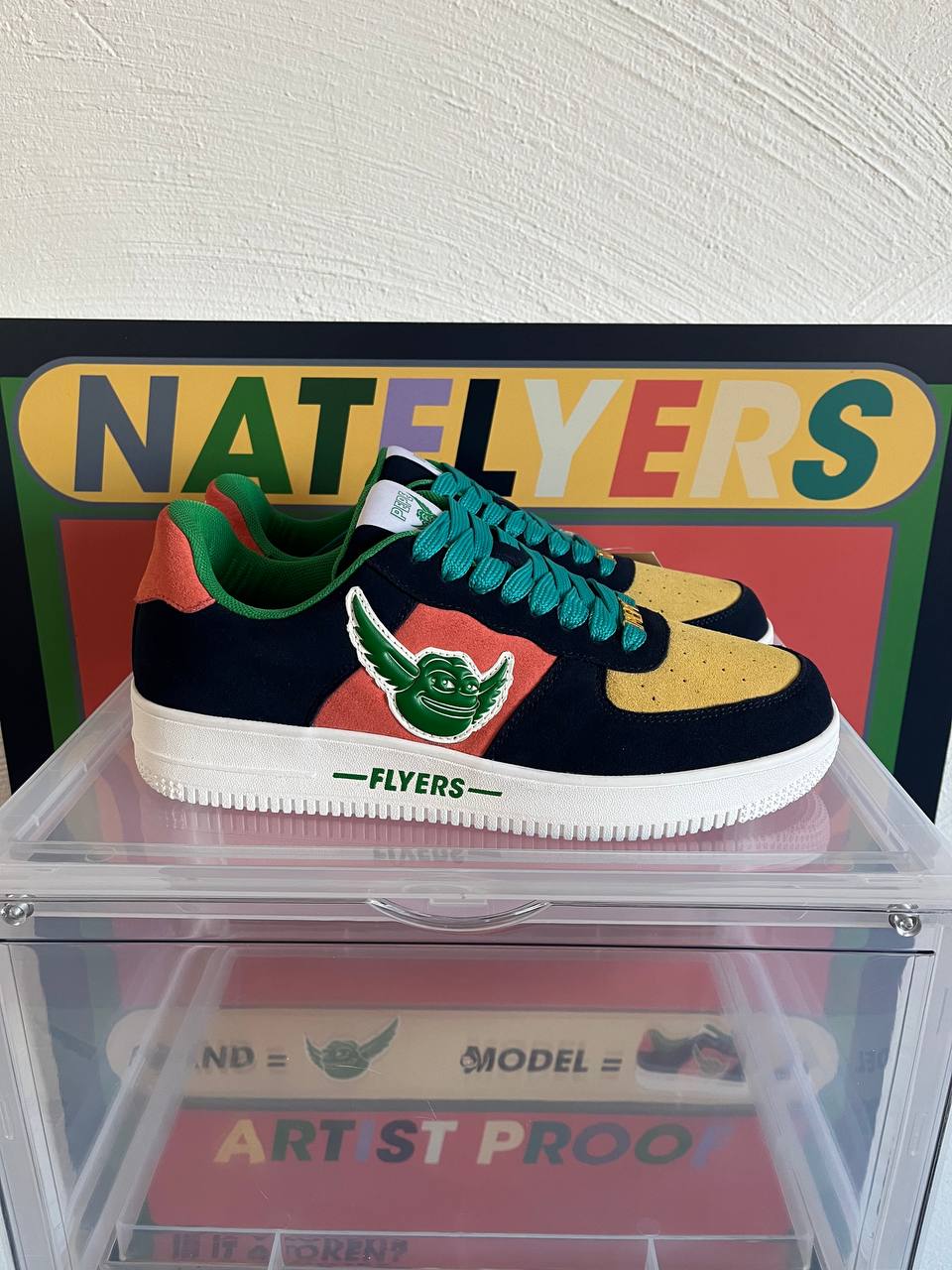 Wonder no more. The sneaker is the NATFLYERS by Pepe Flyers and this is the 1st physical (artist-proof) up for grabs.