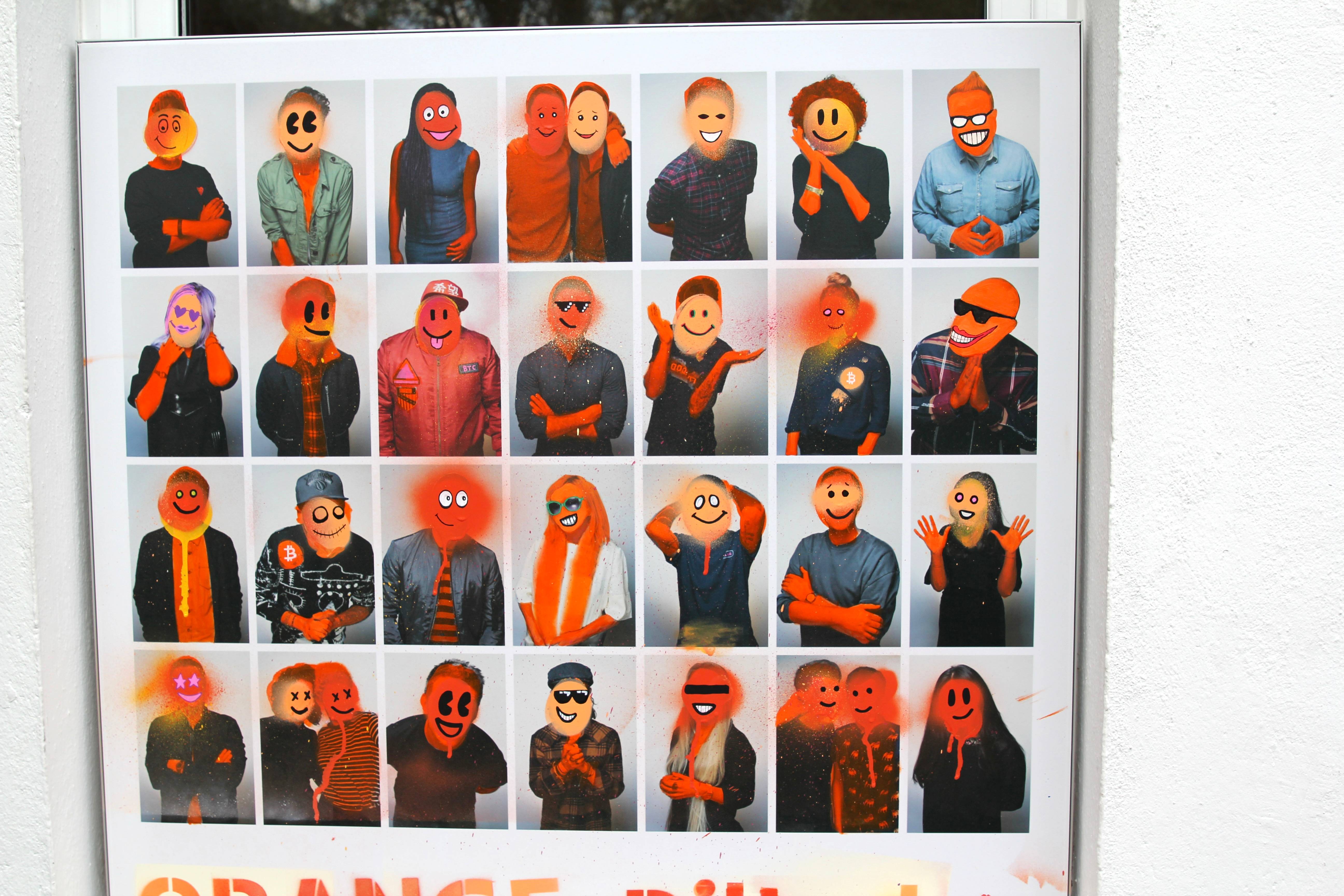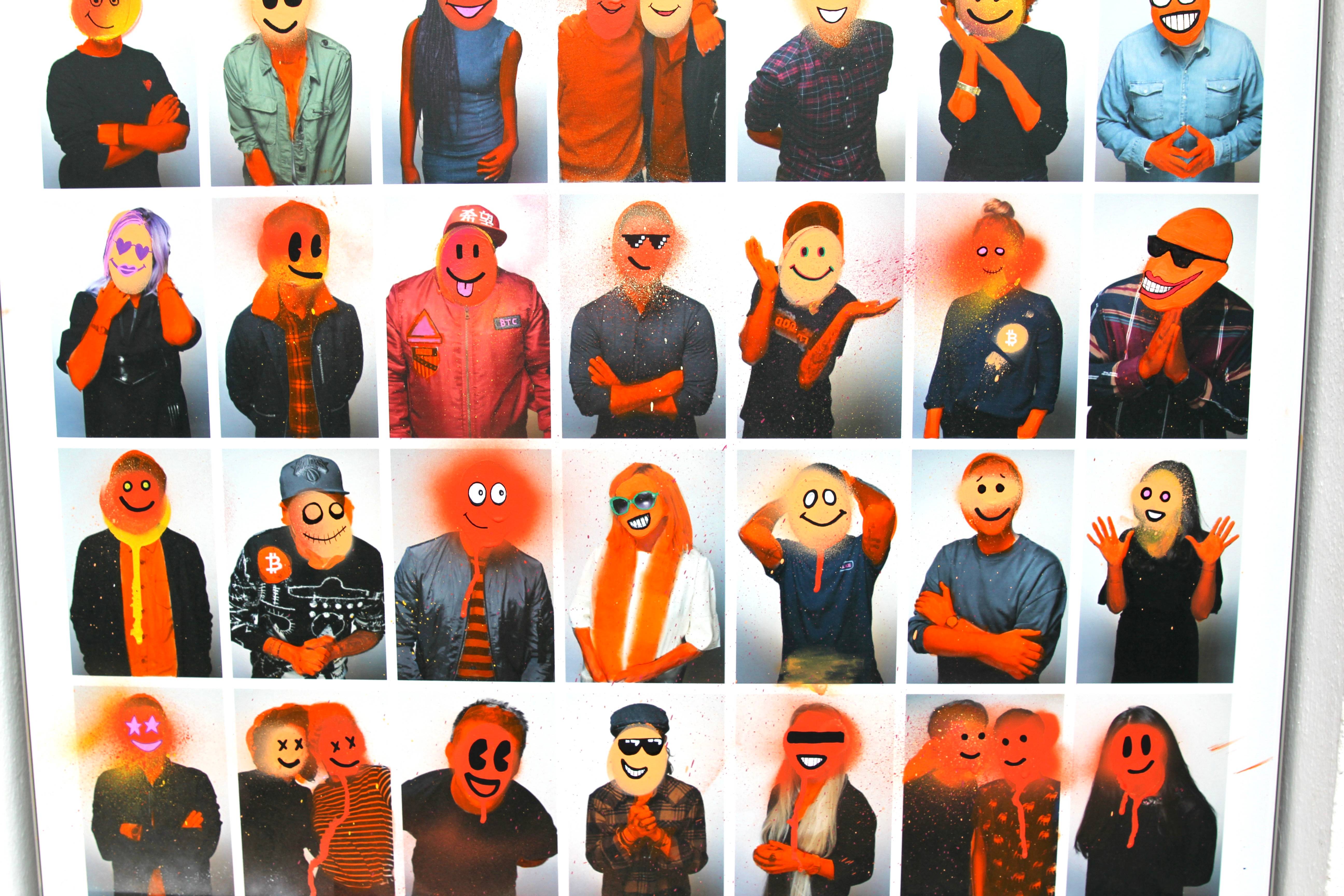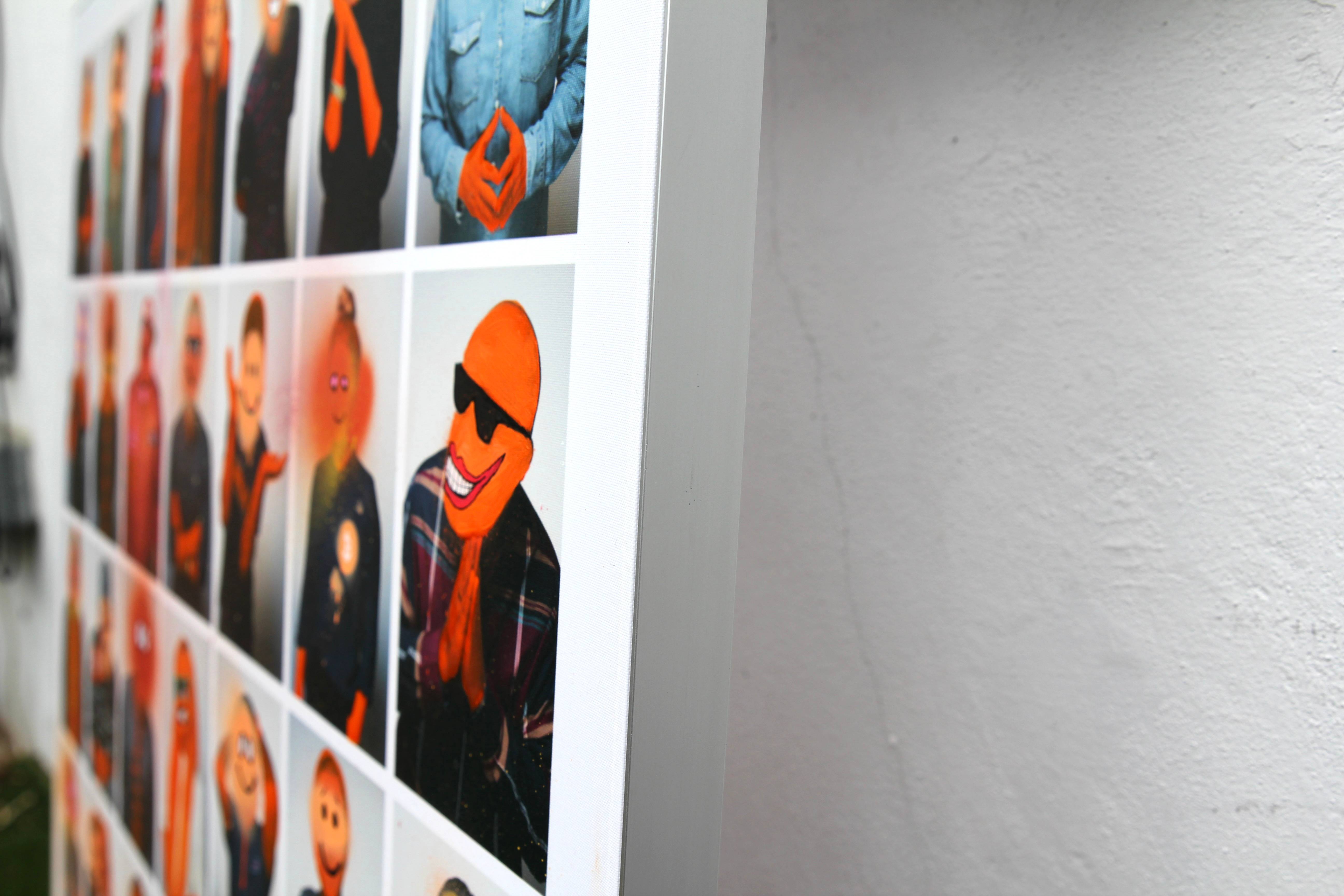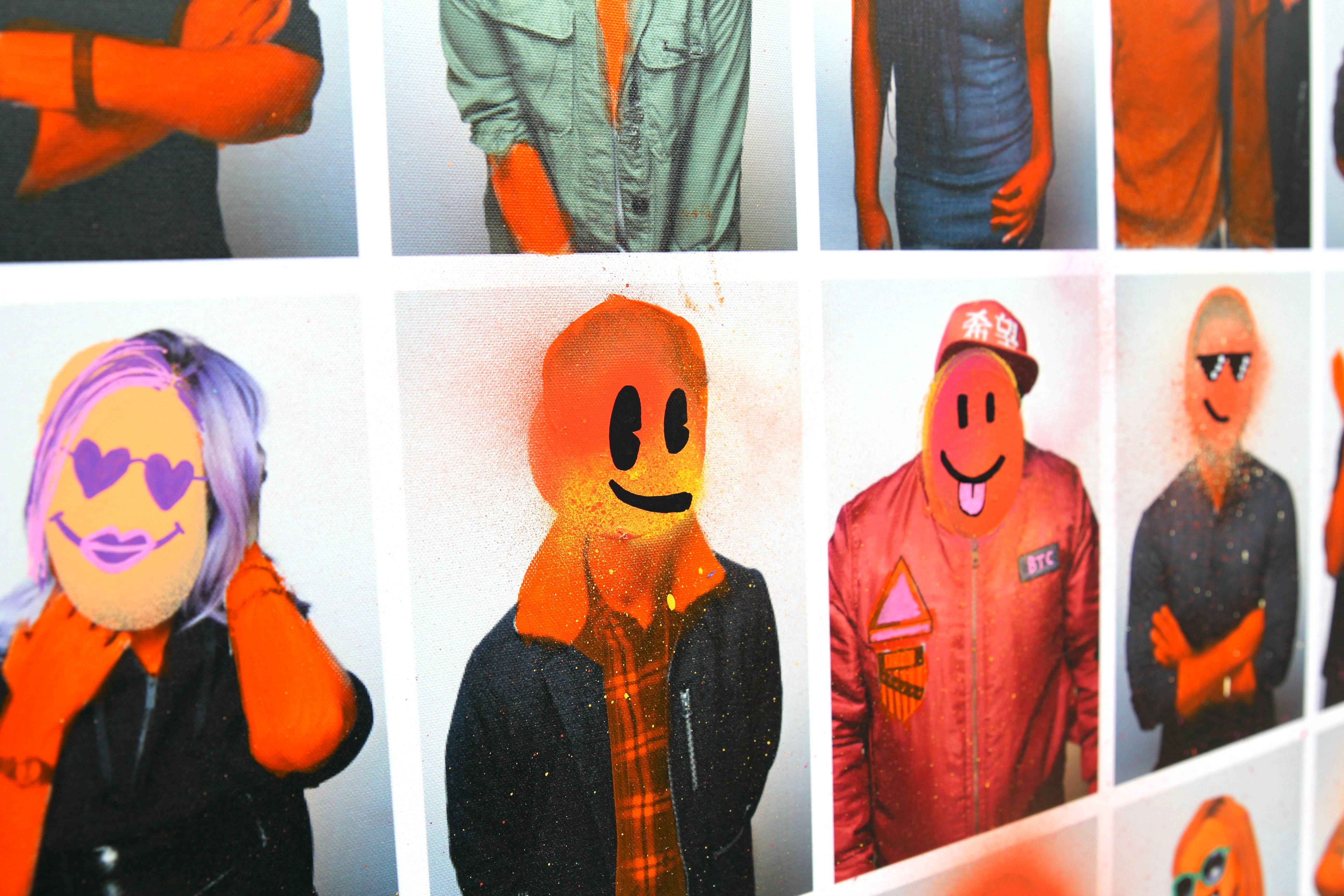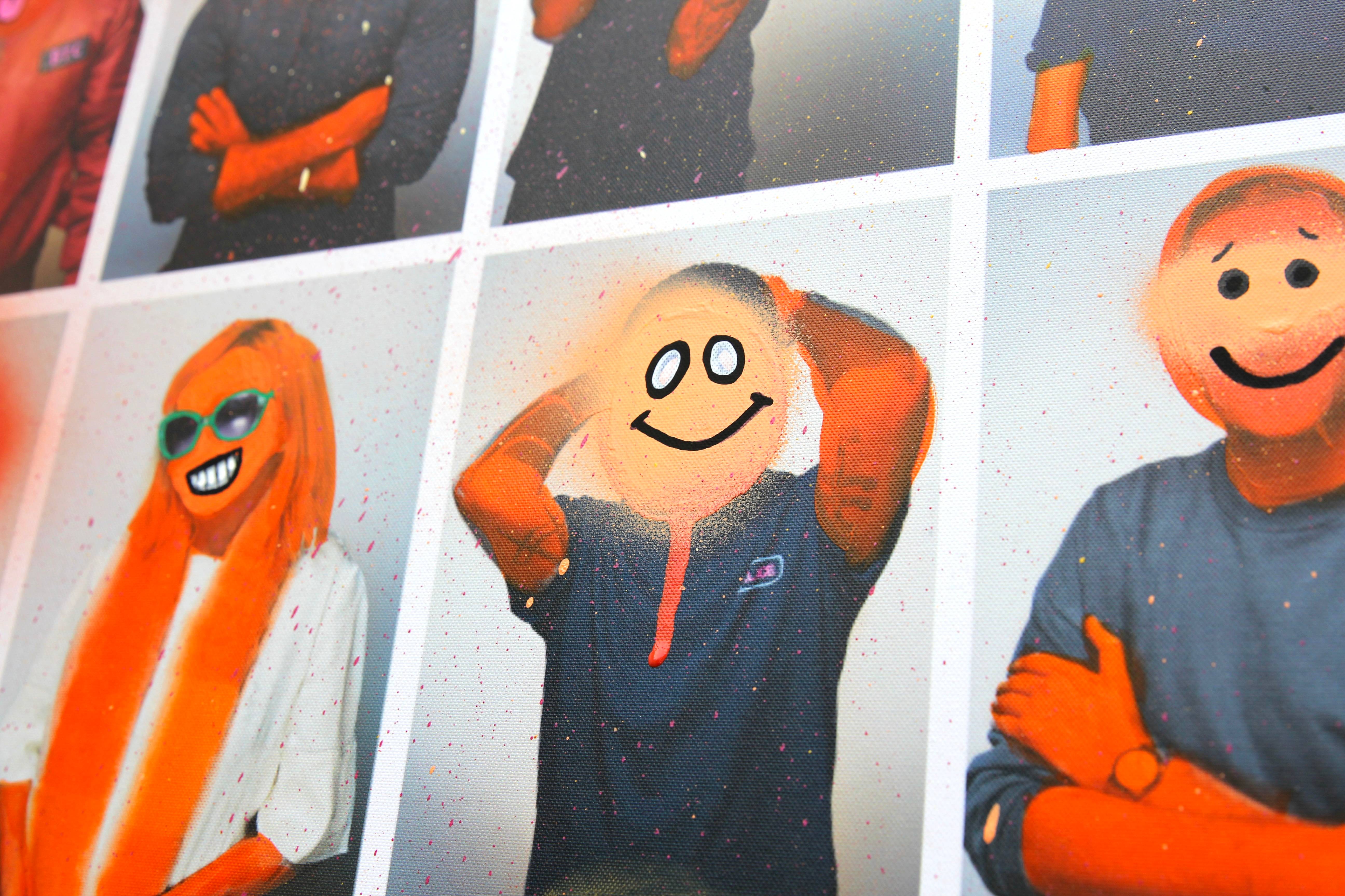 This artwork takes the style of a school yearbook, with everyday people posing for their annual photo