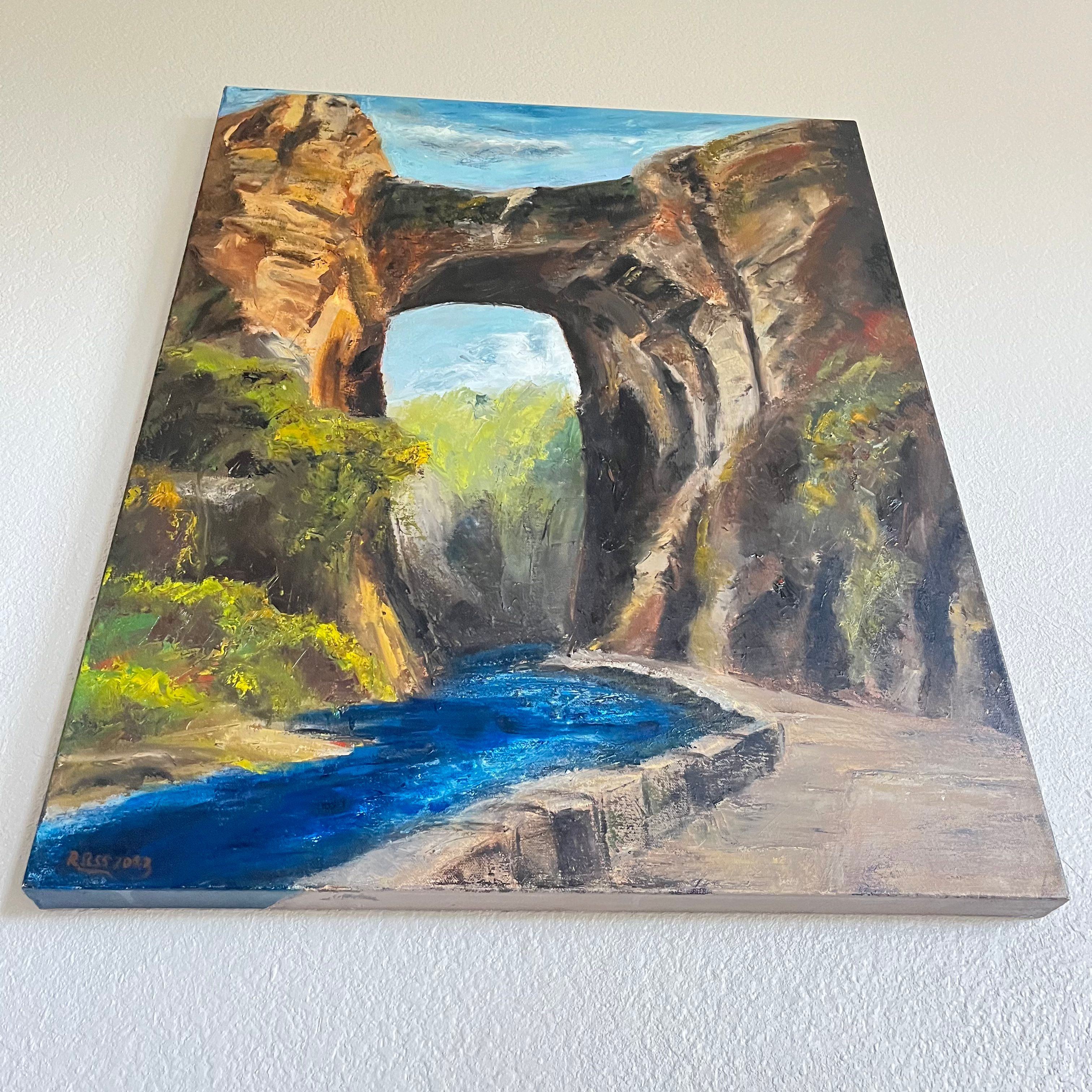 "Archway" is an oil painting created by Ross Ulbricht in collaboration with another prisoner while at USP Tucson. The front of the painting is signed as RΩSS to represent the collaboration with his fellow prisoner, who goes by Omega and who taught Ross oil painting techniques.