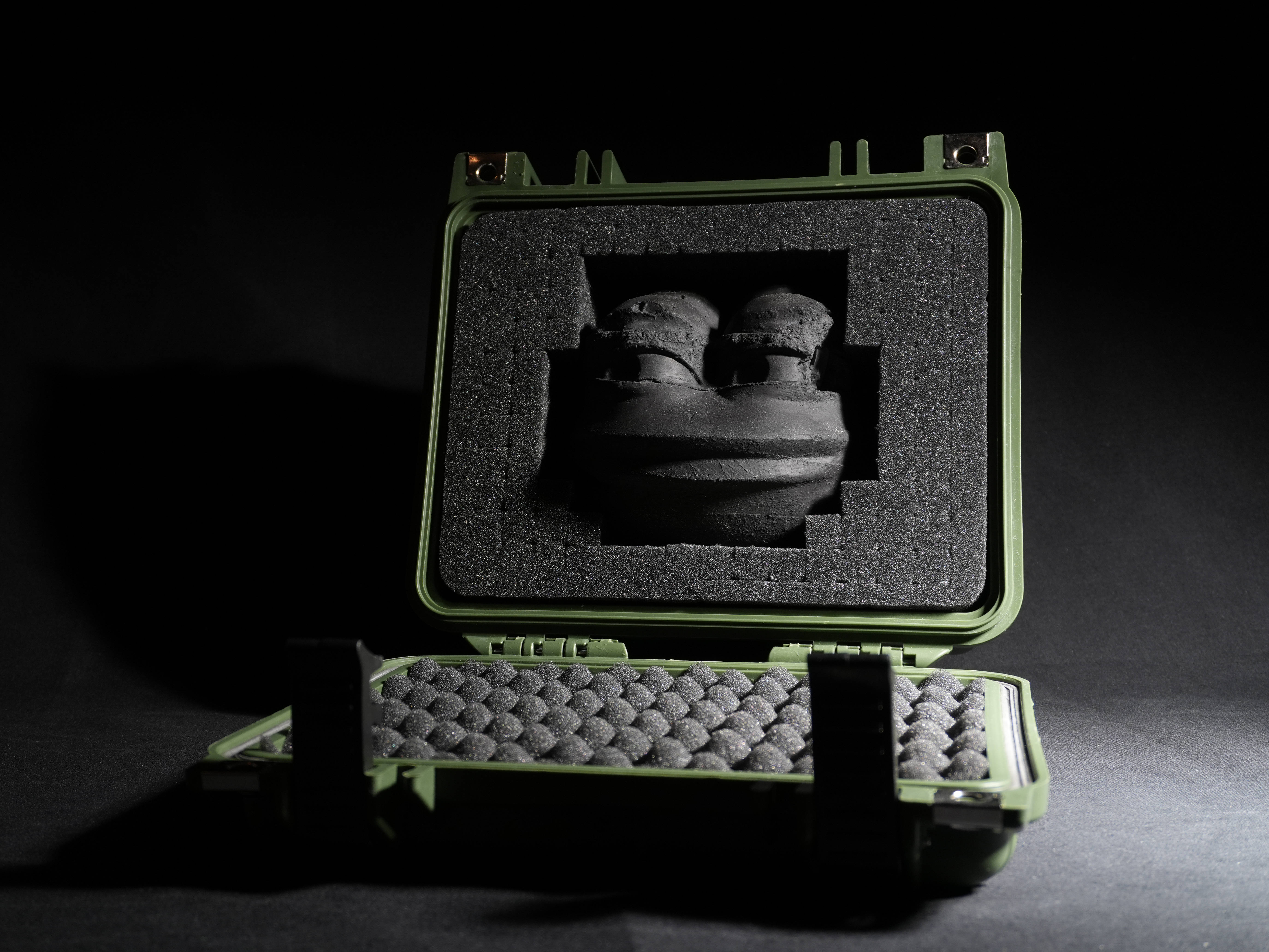 An archaeologist wipes the surface.