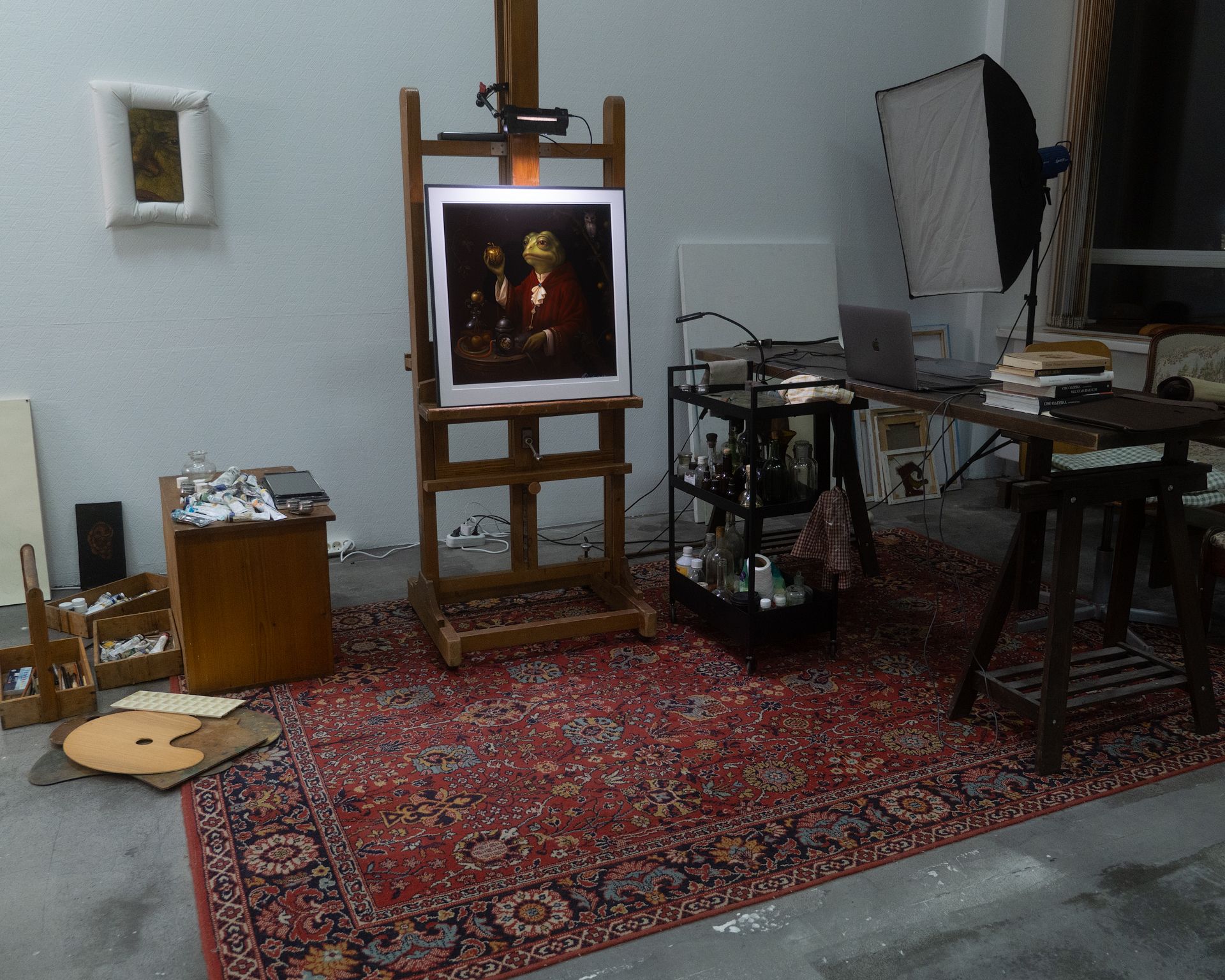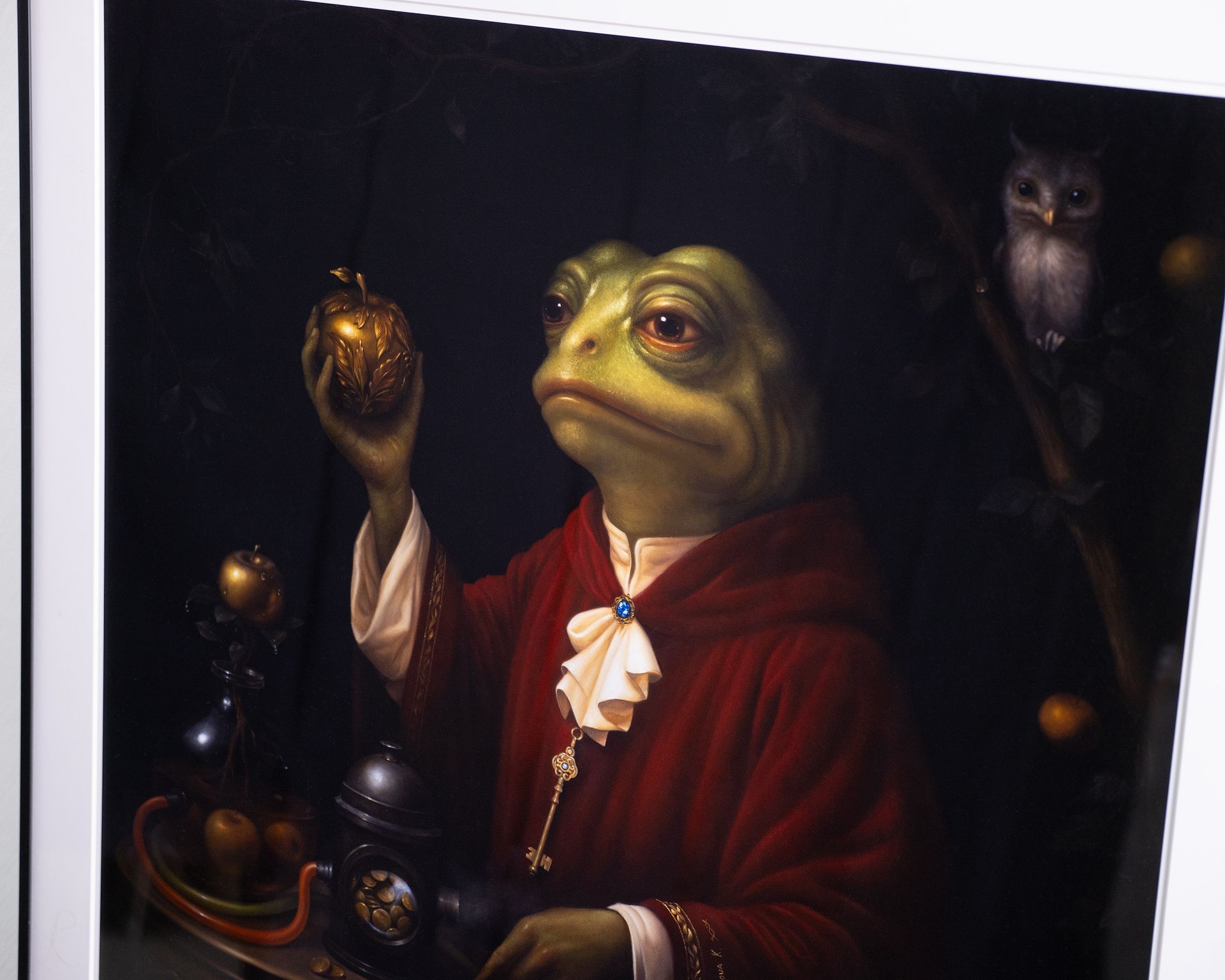 This auction features the first print of 'Pepeordinatus', which is now available as a 1/1 artist proof aside from the main edition of 30 and serves as the reference for all future prints in terms of color reproduction. The piece is signed and comes in a black aluminium frame with 3mm protective plexiglass. Both the printing process and paper quality meet museum standards.