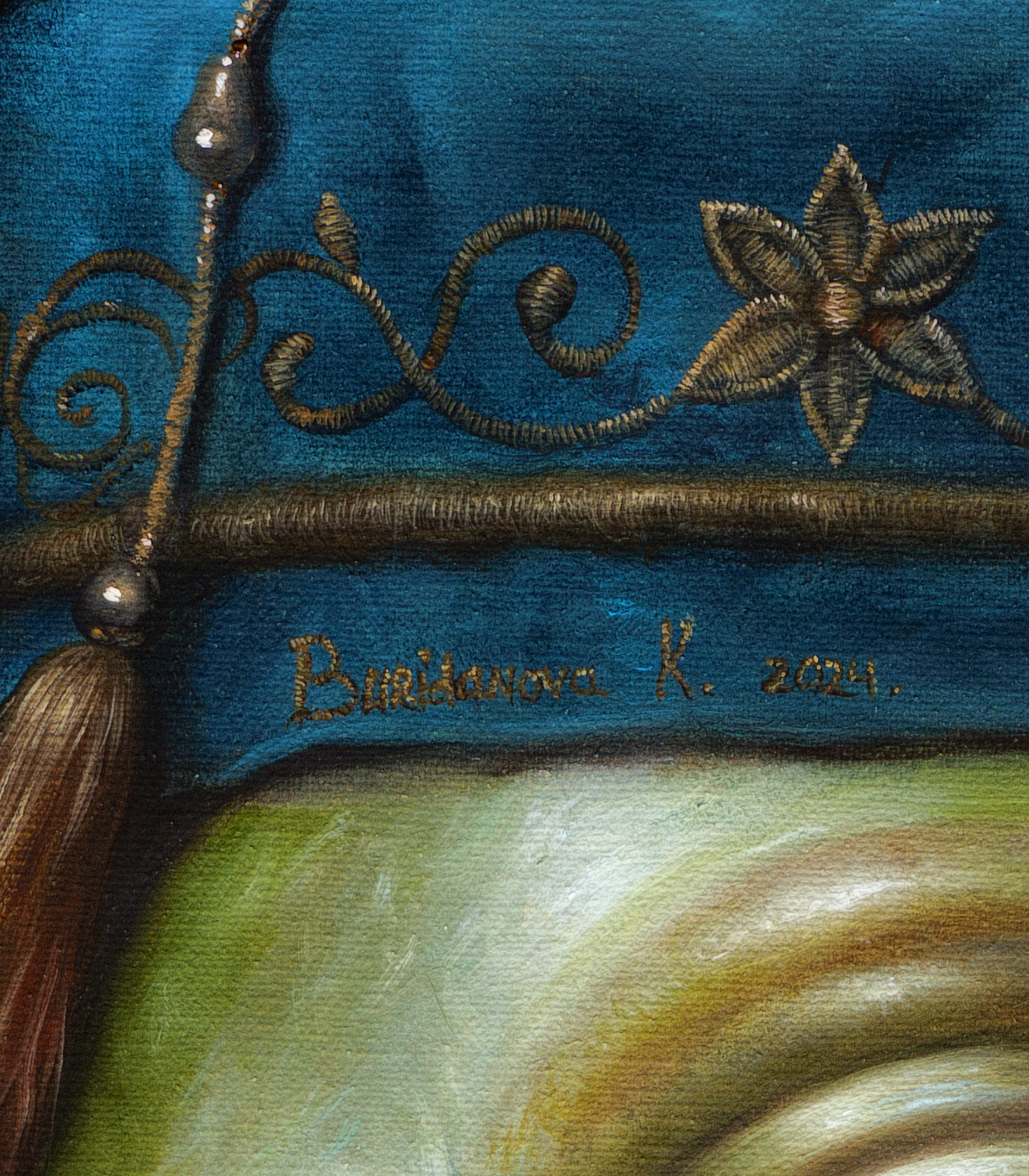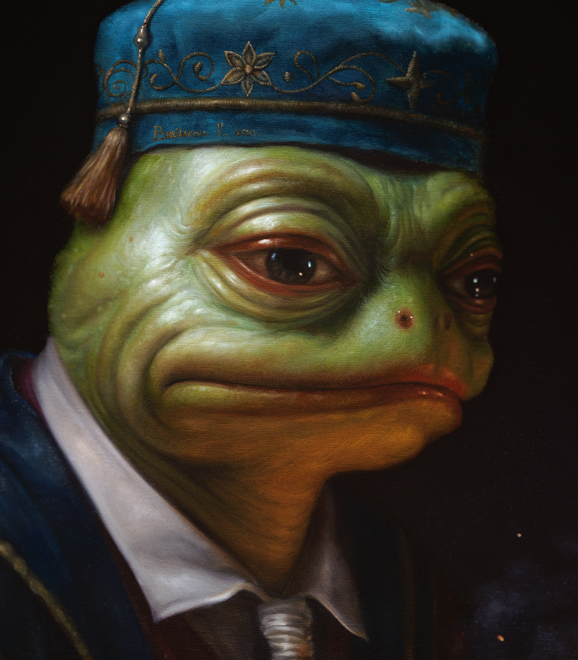Created in 2025 with oil paints on a gallery-wrapped linen canvas, the piece is set in an oak frame and ready for hanging. Inscribed as a 1/1 ordinal.