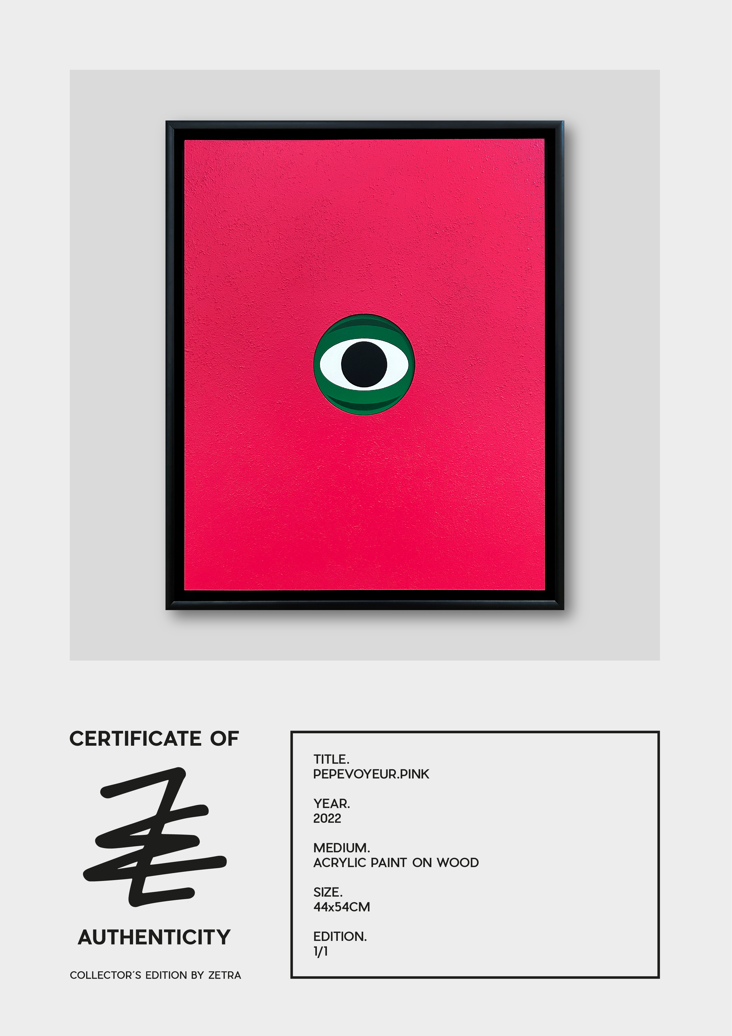 PEPEVOYEUR will be watching you all day. Not spooky at all…it's only a frog standing behind your wall :) The embossed eye makes it look pretty realistic. Minimal and clean Pepe Art by ZETRA.