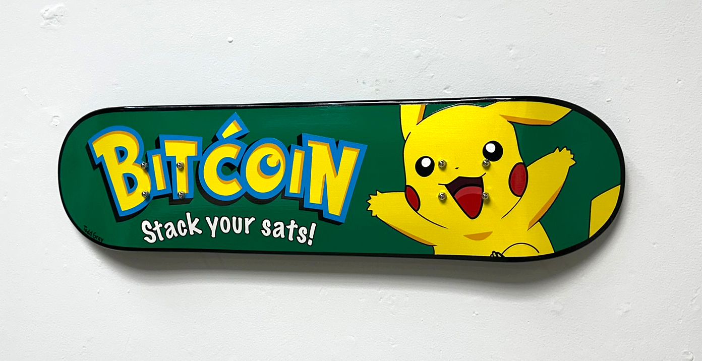 than life Pikachu…imploring you to Stack Your Sats!. I love this board