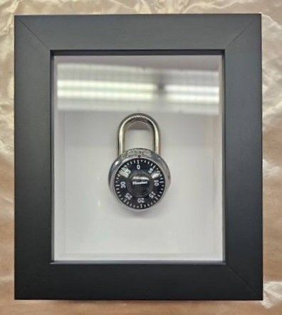 This is the combination lock Ross Ulbricht used to secure the small locker each inmate had in their prison cell. Locks were eventually banned at USP Tucson in 2021 because they could be used as weapons during a fight, so Ross mailed his lock to his wife for safekeeping. The lock comes with the paper bag Ross used to protect it during shipping.