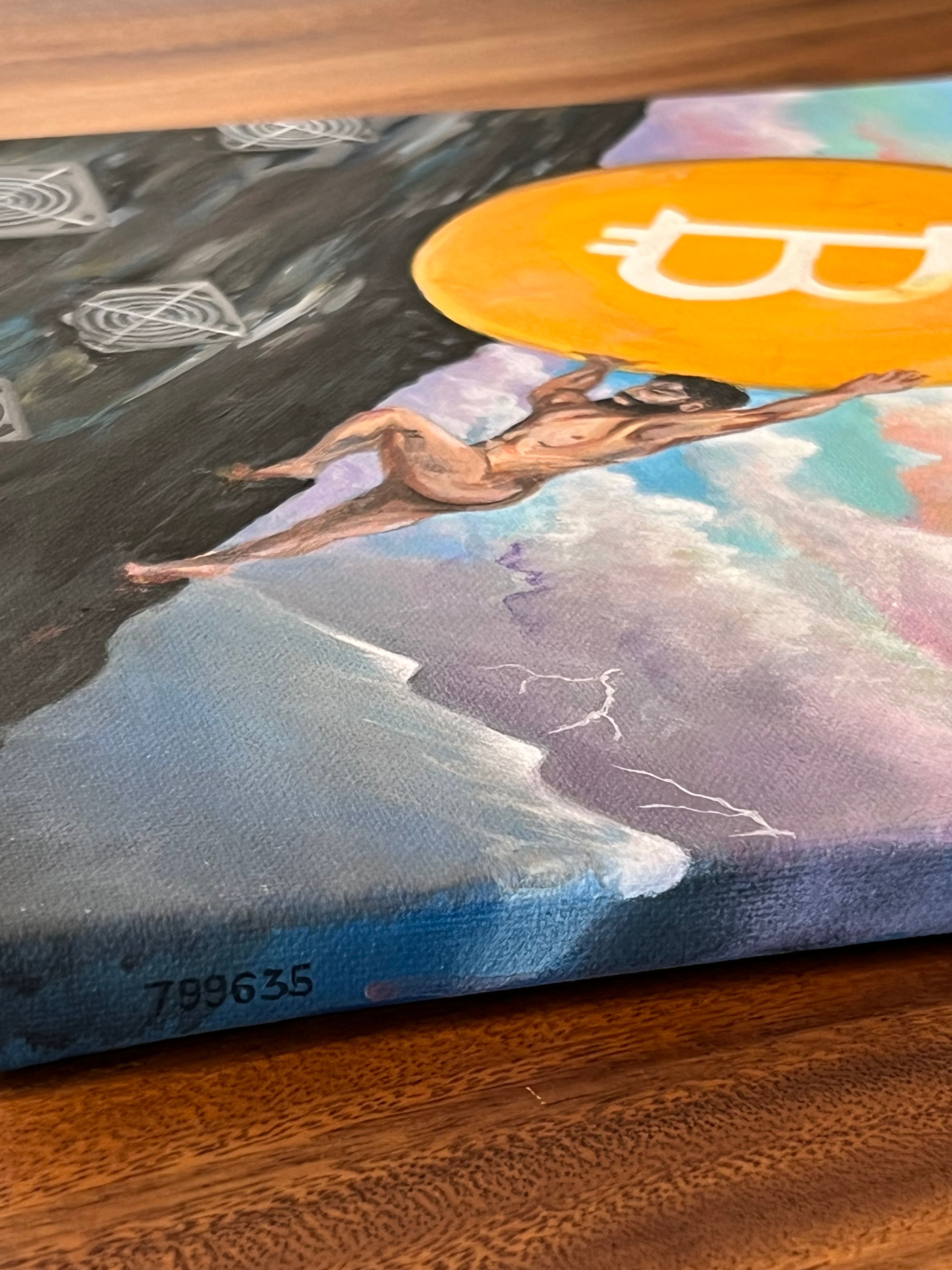 This is a 1/1 limited edition original piece. It was hand-painted on canvas using acrylic paint and finished during block height of 799635.