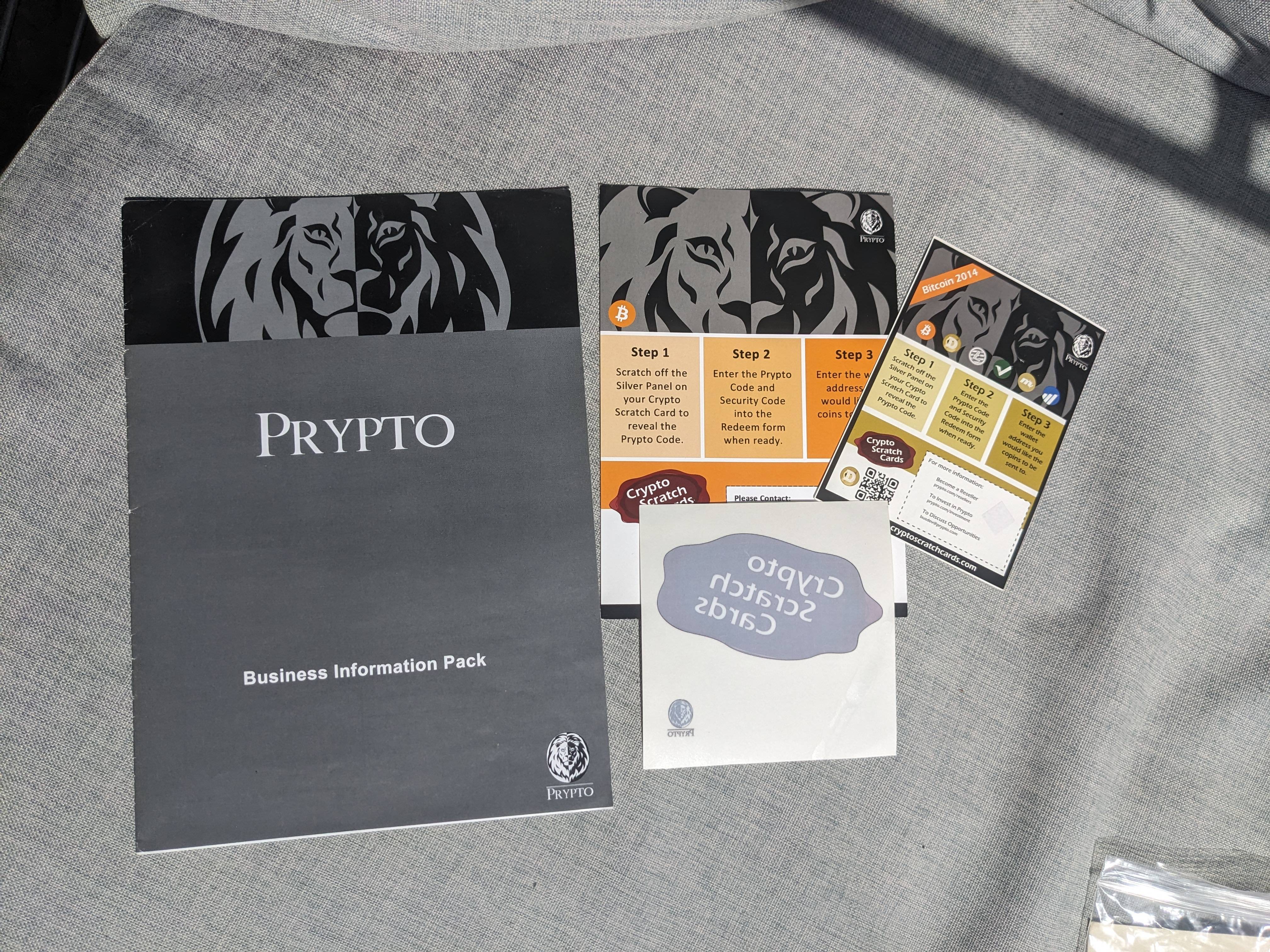 Pack includes:Tip Card, Wallets, Redeemed Cards x 2 also Prypto Business Info sheet (A4), window sticker and Flyers x2