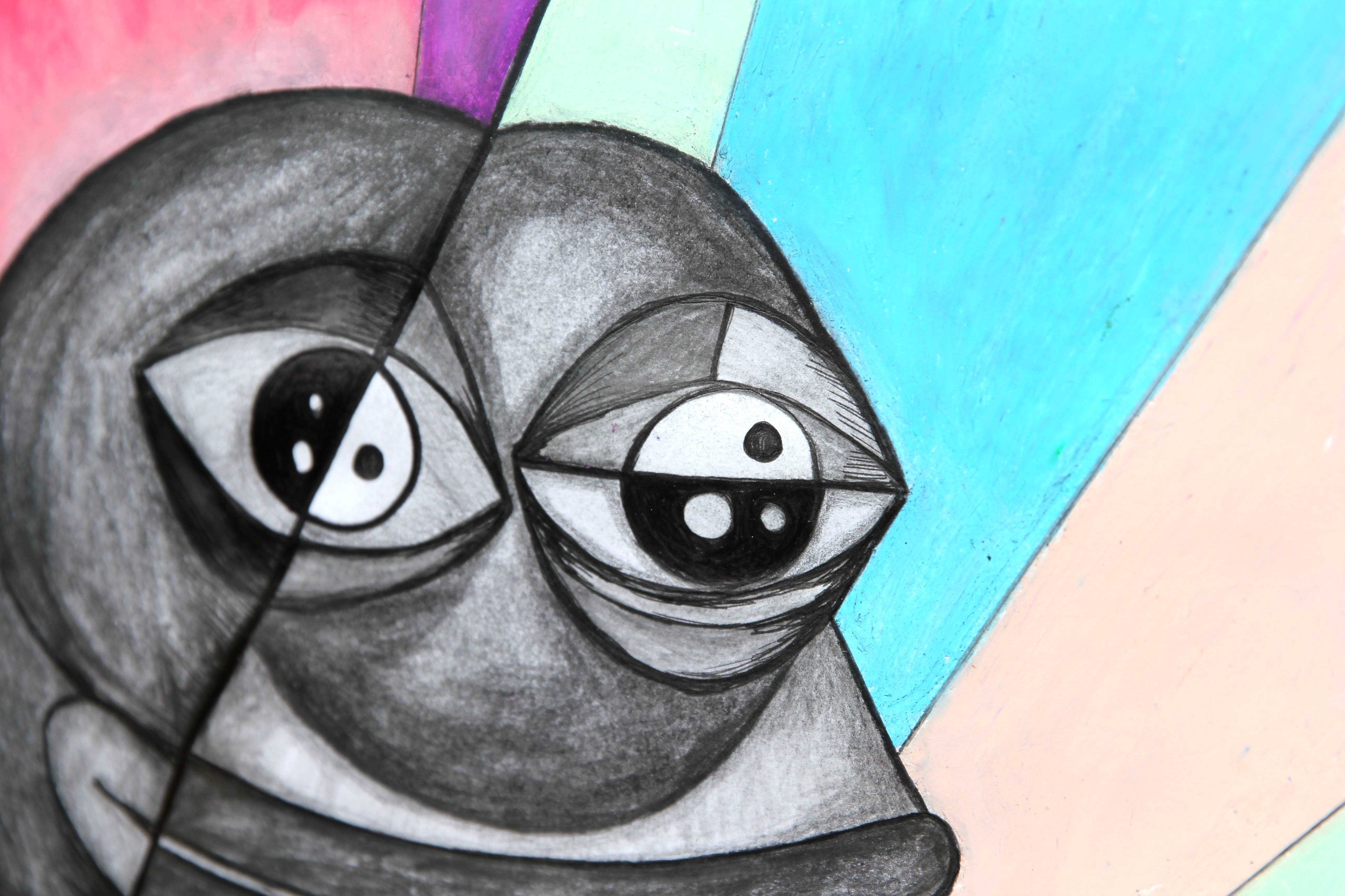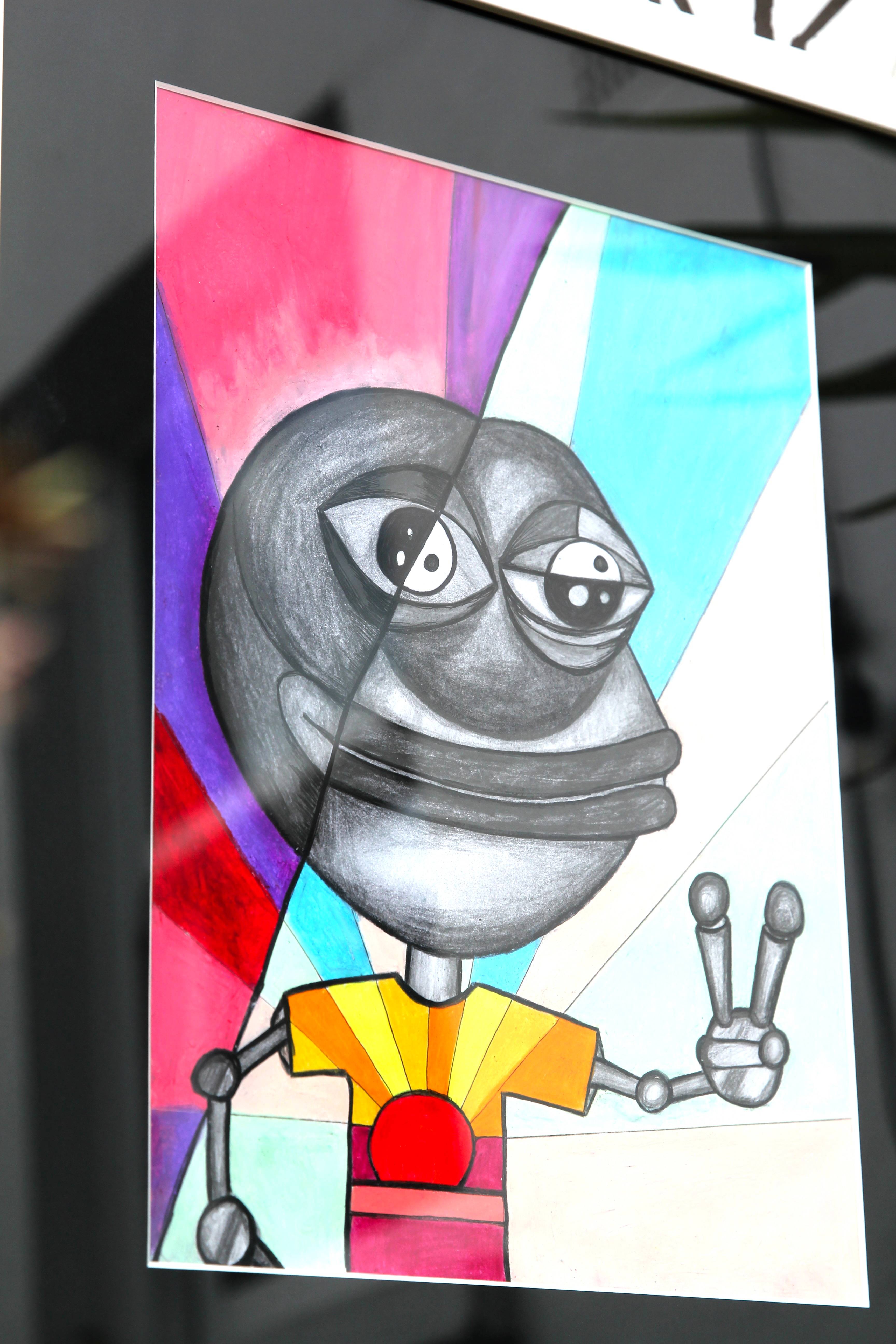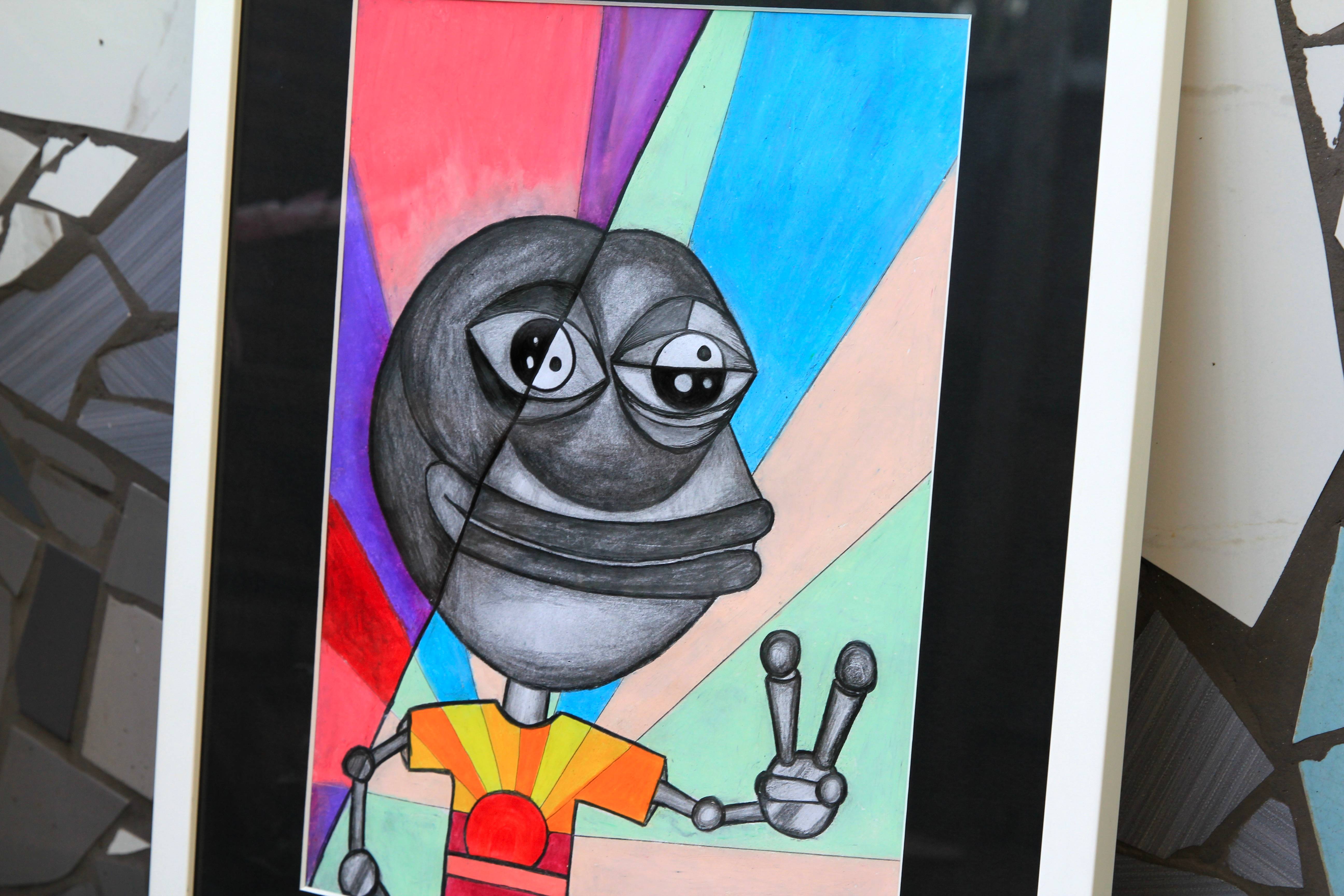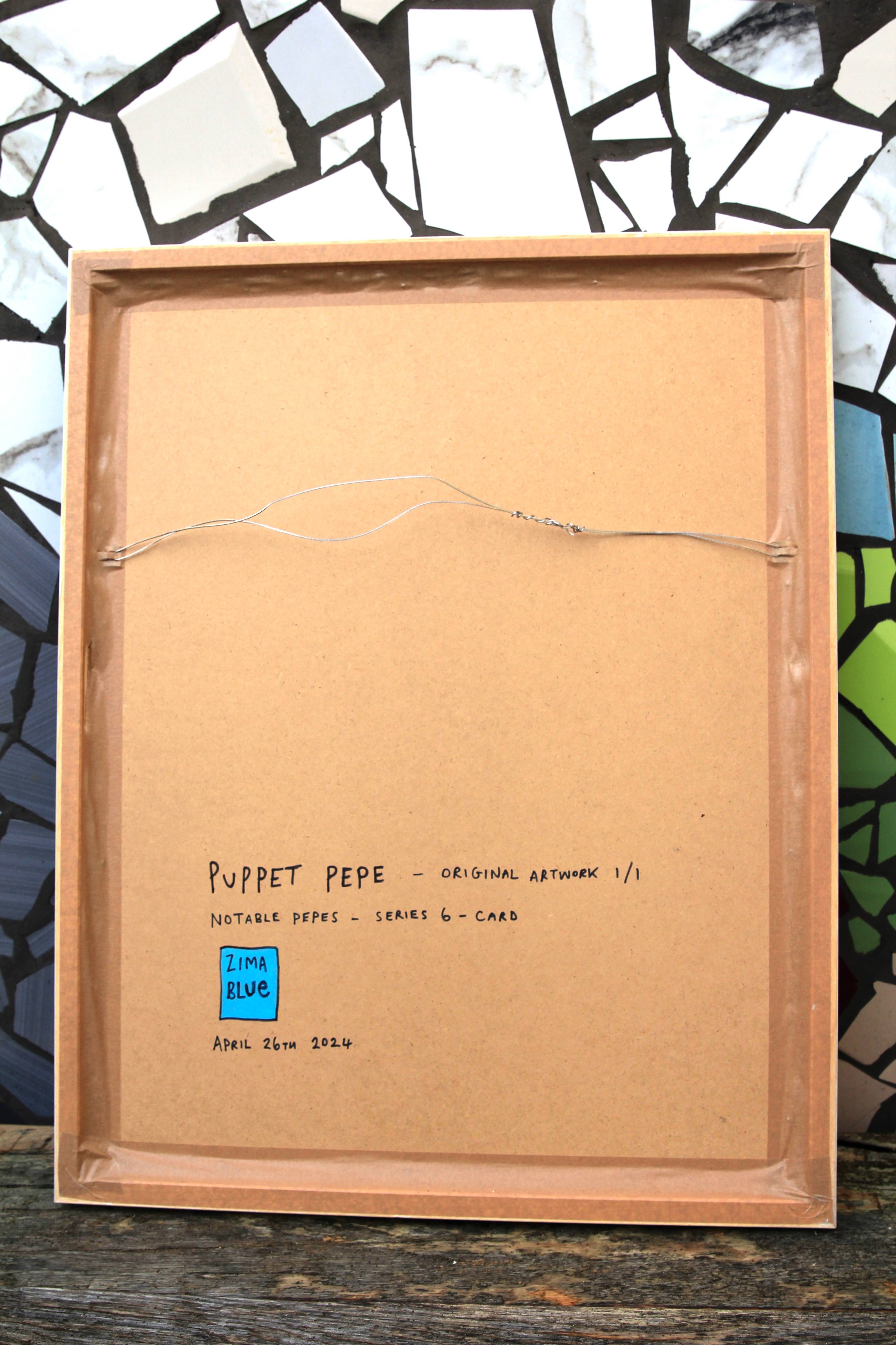 Puppet Pepe original hand drawn artwork. Oil Pastel, charcoal & ink on card