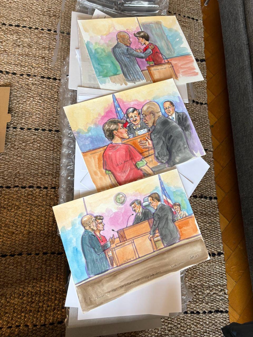 Please note: the fifth sketch of Ross Ulbricht alone is not included in this sale, nor are the postcard reproductions, shown in one image.