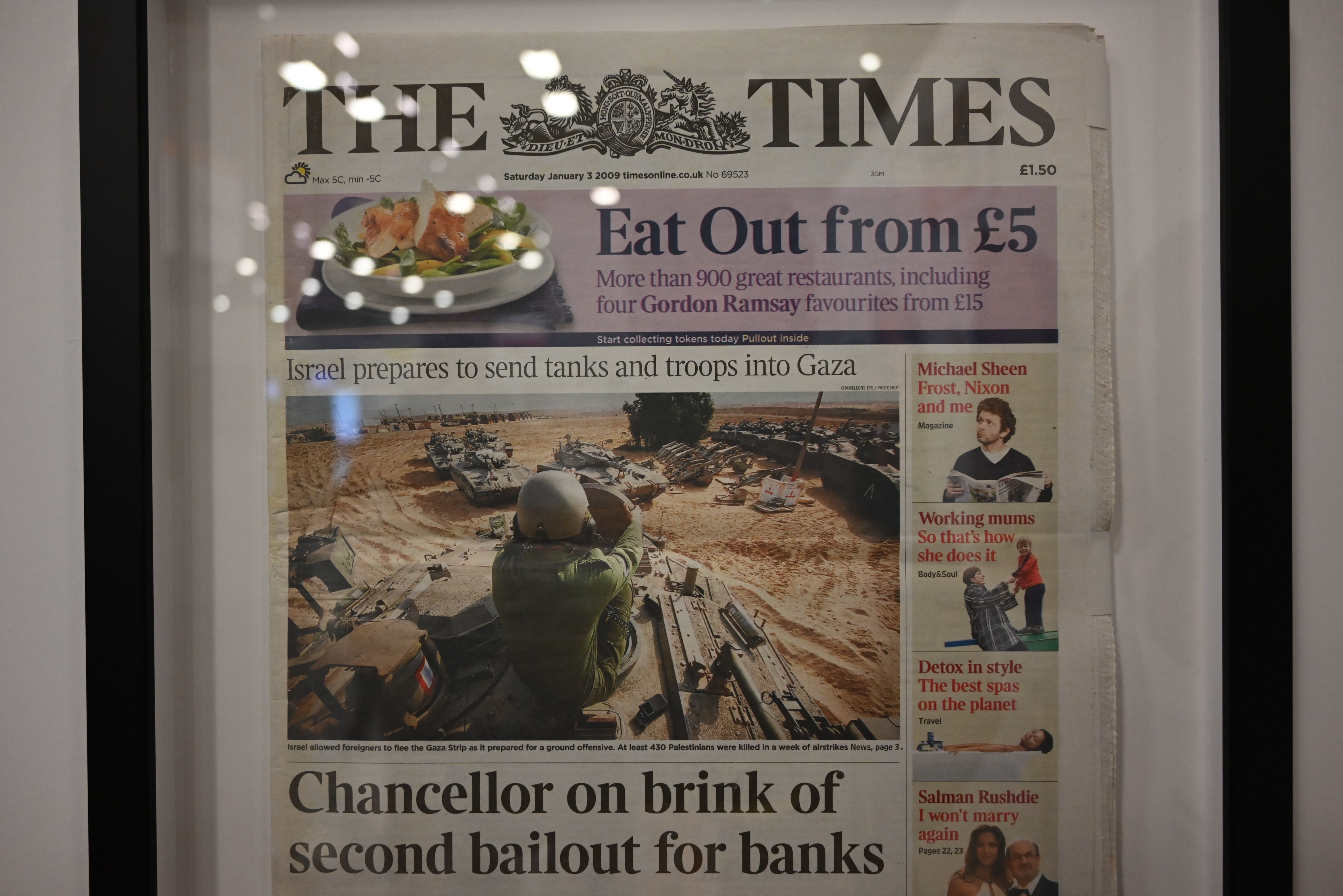 - The headline on the front page of this paper is the one referenced in Bitcoin's genesis block, proving Satoshi created the block on or after 3rd January 2009 (i.e. Bitcoin is not a pre-mine).