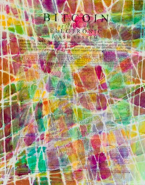 My work since 2017 is inspired by Bitcoin and the brilliant Satoshi Nakamoto’s White Paper discovery of Bitcoin. Bitcoin is a non-state, immutable, digital, decentralized, borderless, permissionless, peer-to-peer, censorship resistant, worldwide, sound money and store of value. Since 2017, my art has been devoted to the Satoshi White Paper.
