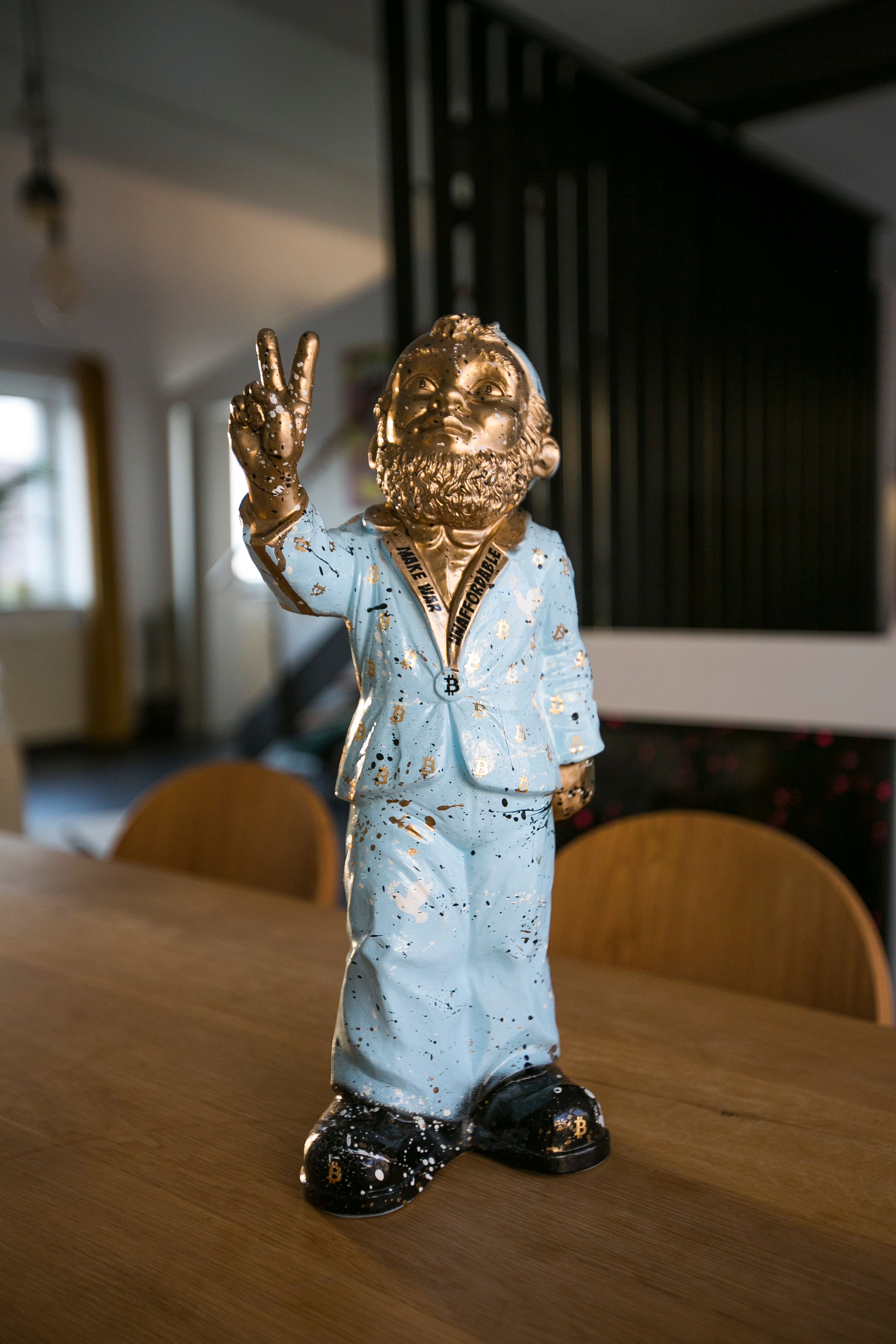 *UNIQUE: Shipping takes 15-20 BUSINESS DAYS. Please note that there are 5 artworks in the "Satoshi's Peace" series. The one shown here is for illustrative purposes and is artwork 1 of 5. Artwork 2-5 differ in the color splashes & gradients as well as with minimal deviation in the symbolism (BTC logos, dove of peace, inscriptions). The artworks have the exact style base as the one shown here. Each one gets its unique character through the production process.