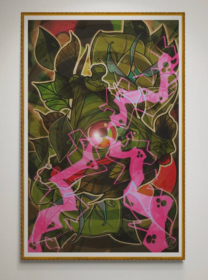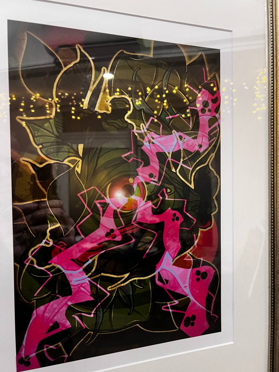 Original acrylic on Giclèe framed in gold antique frame including the Fake Rares digital asset