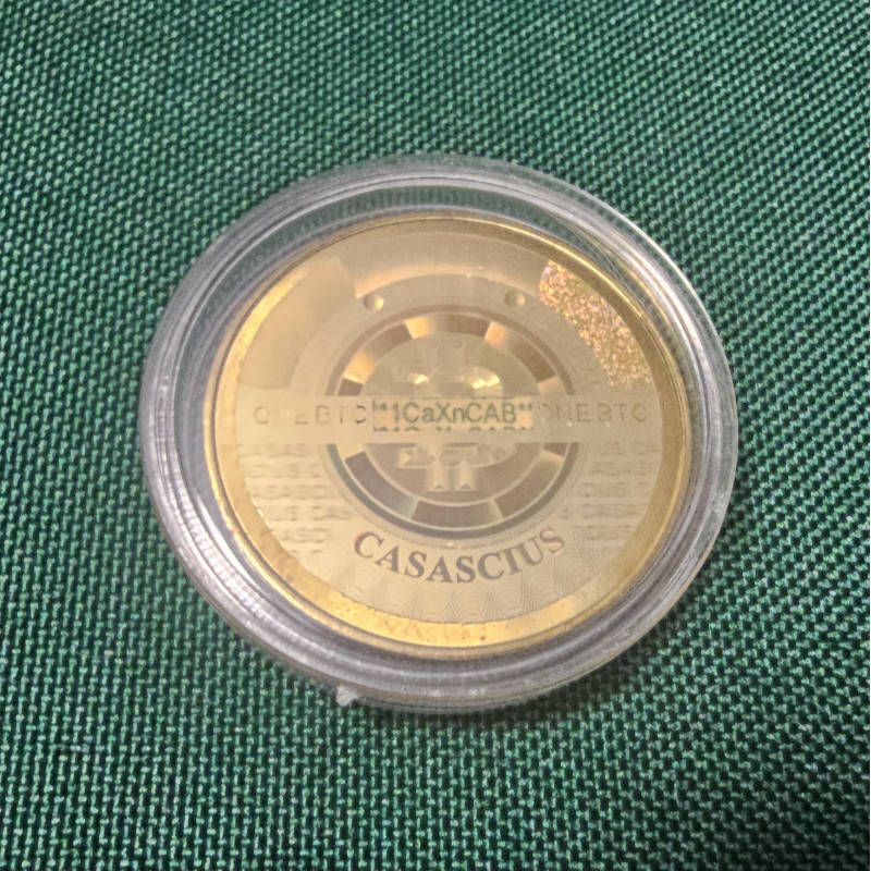 One uncirculated Series 2 Casascius 1 BTC physical bitcoin (S2-COIN-1-2012) with public address 1CaXnCABK8rg7Wi9yEdZSmtrMNJUU3pp8P.