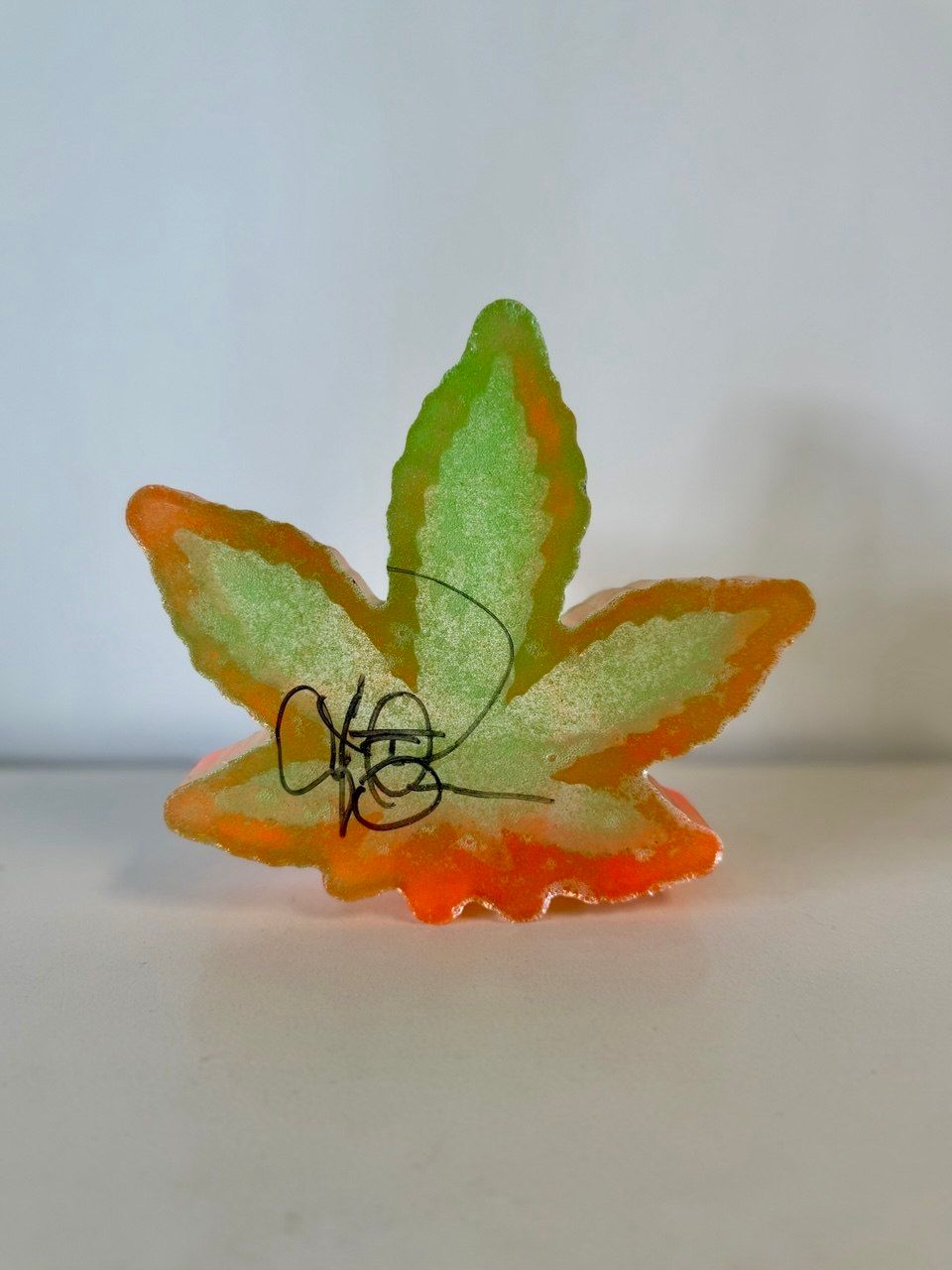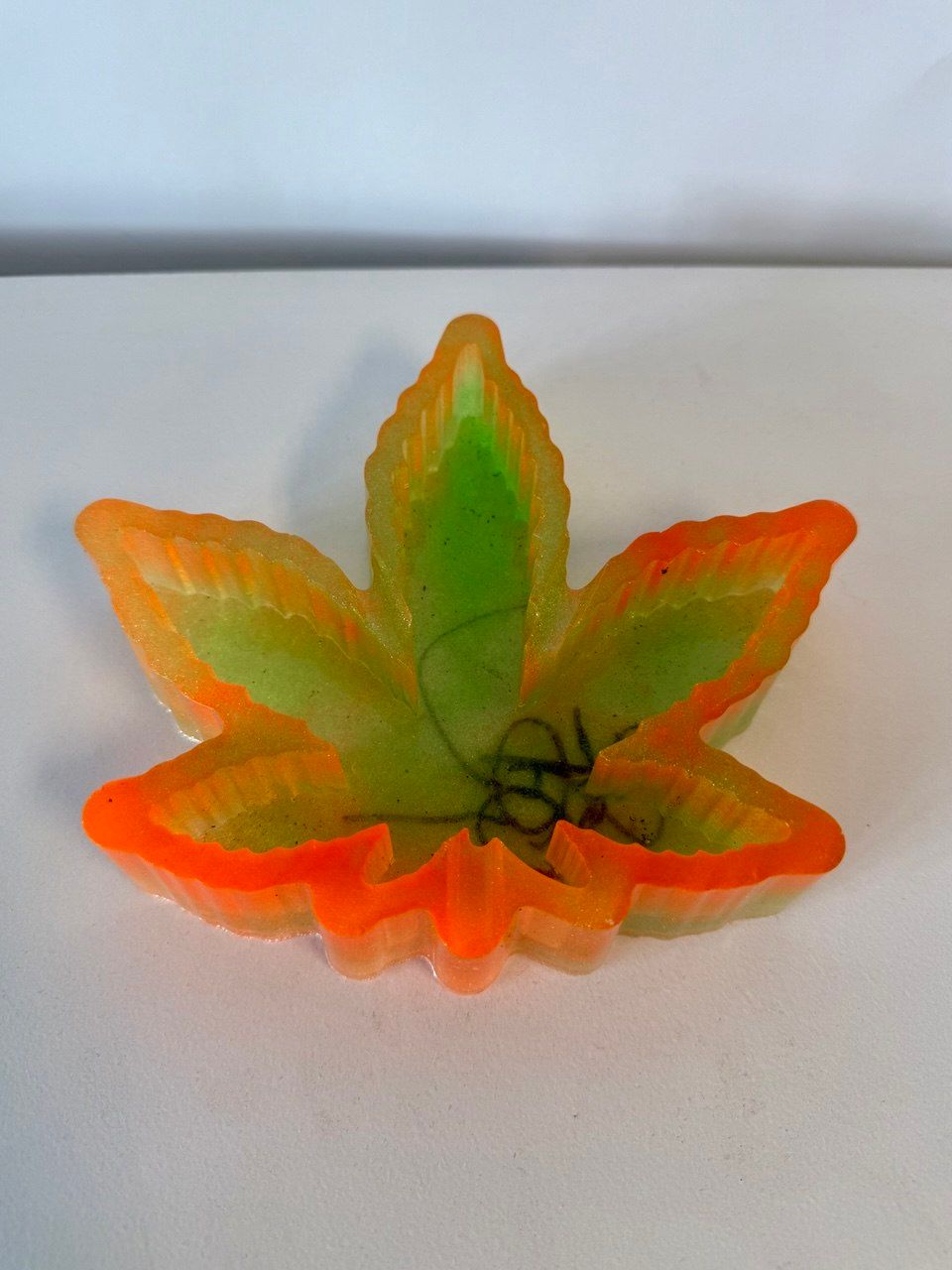 This custom resin ashtray is shaped in the silhouette of a cannabis leaf and has been personally signed and used by Afroman.